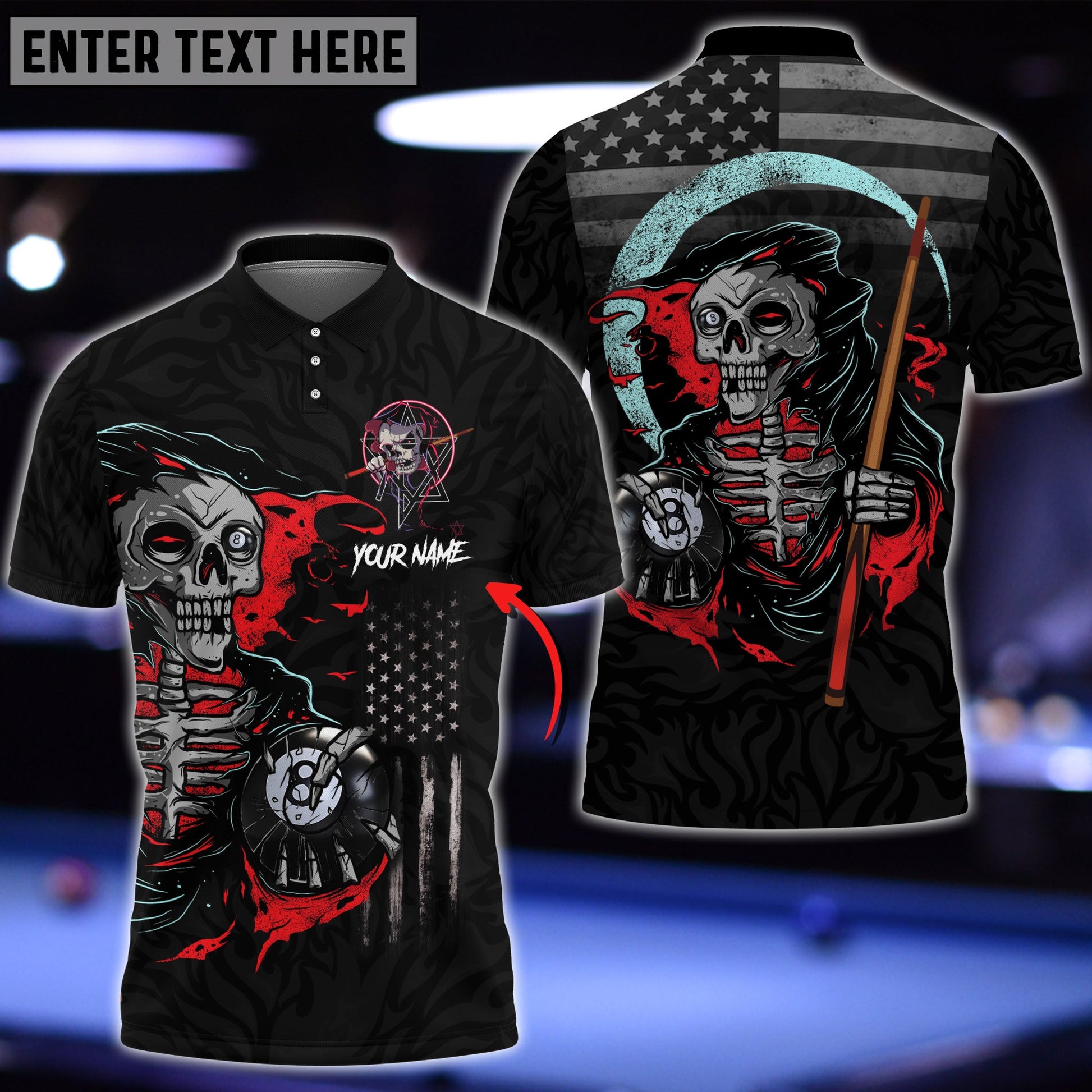 BlueJose Personalized Name Billiard Ball 8 Skull Polo Shirt