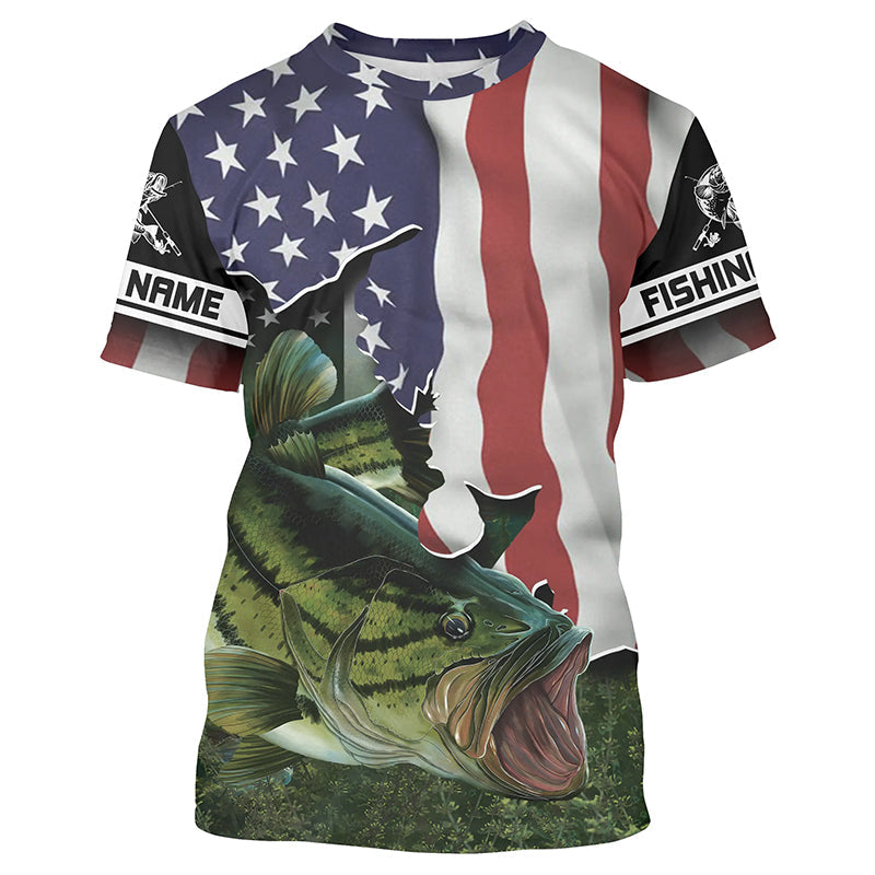 Bluejose Bass Fishing Crew 3D Flying American Flag Patriot Customize Name 3D Shirts