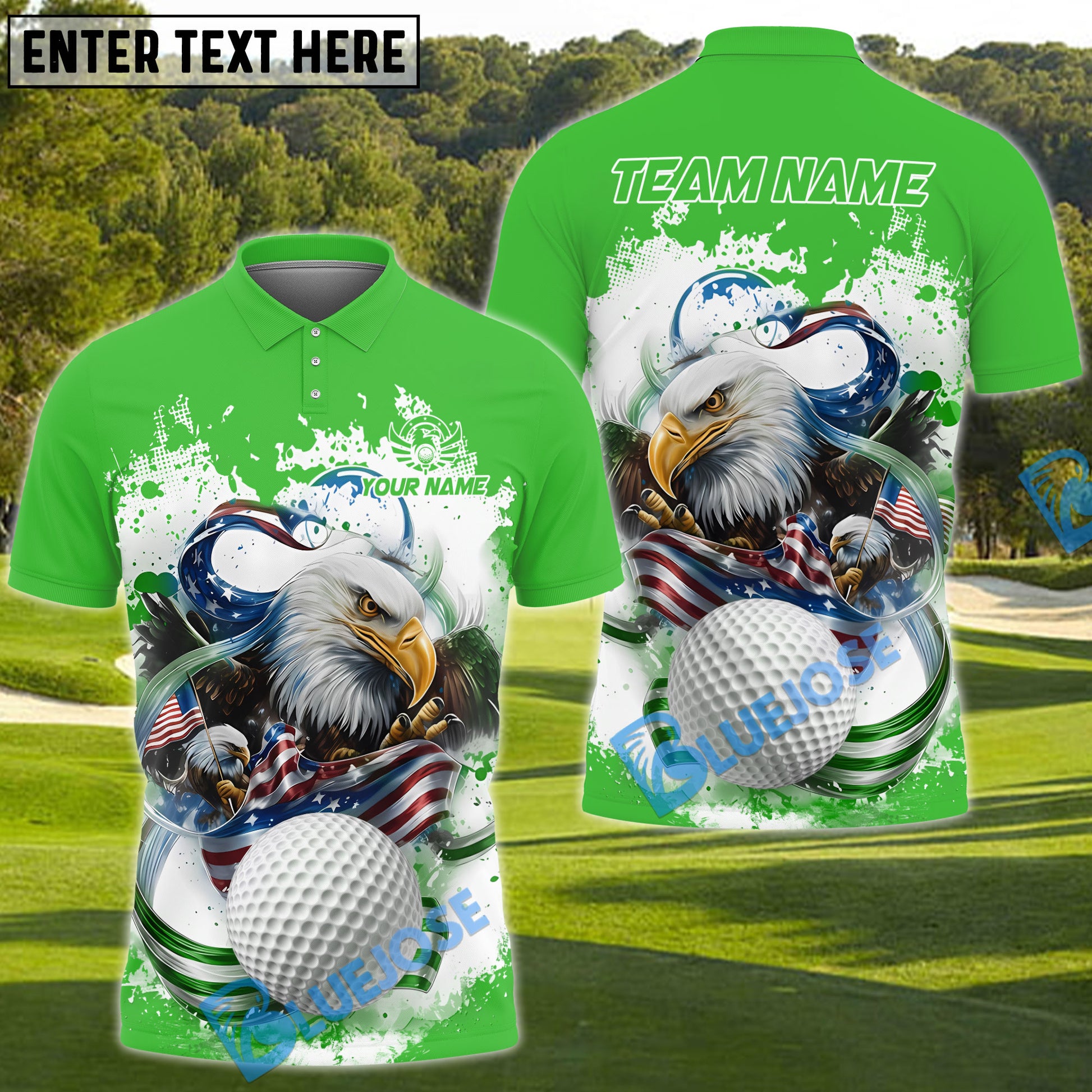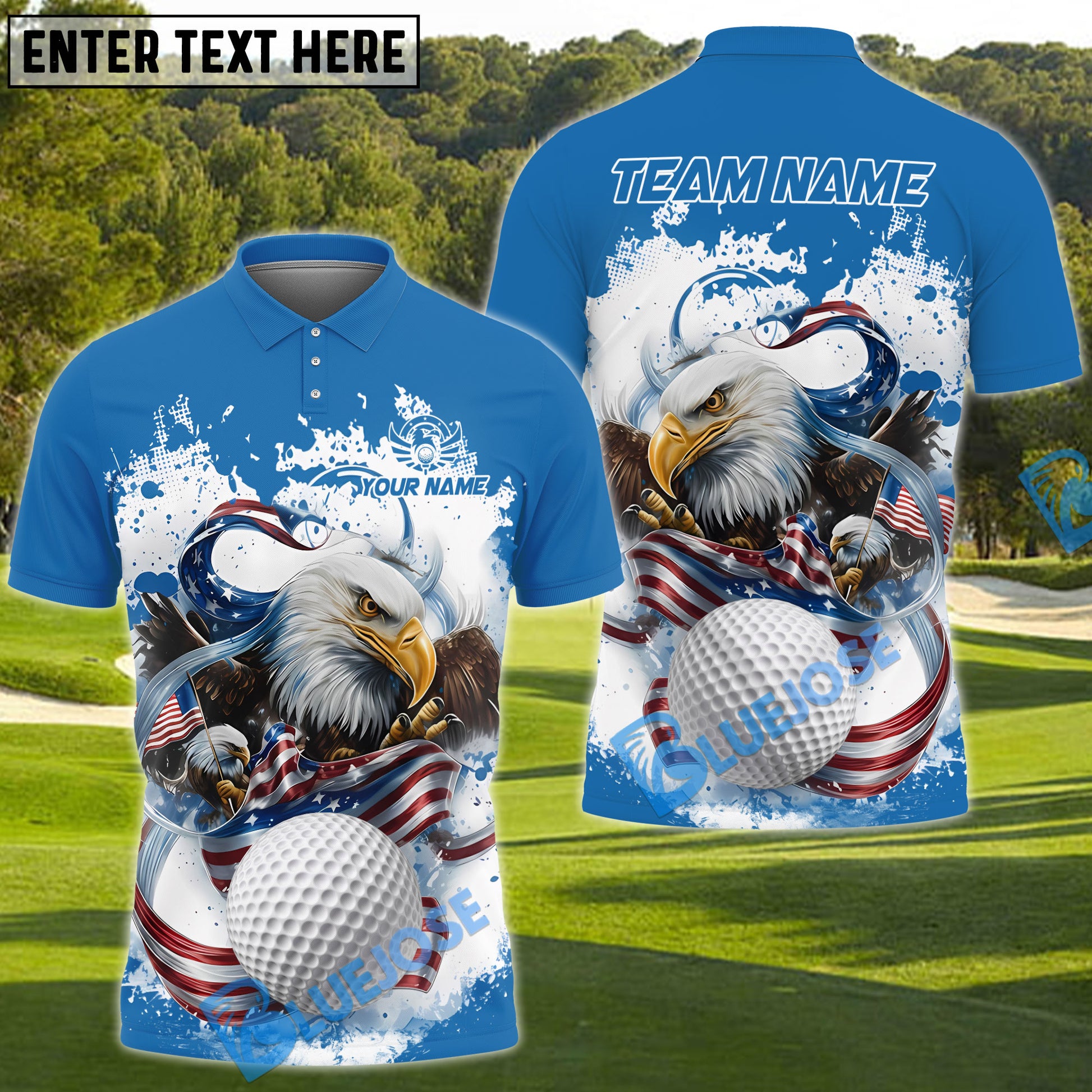 BlueJose American Eagle Power Golf Polo Customized Name, Team Name 3D Shirts (4 Colors)