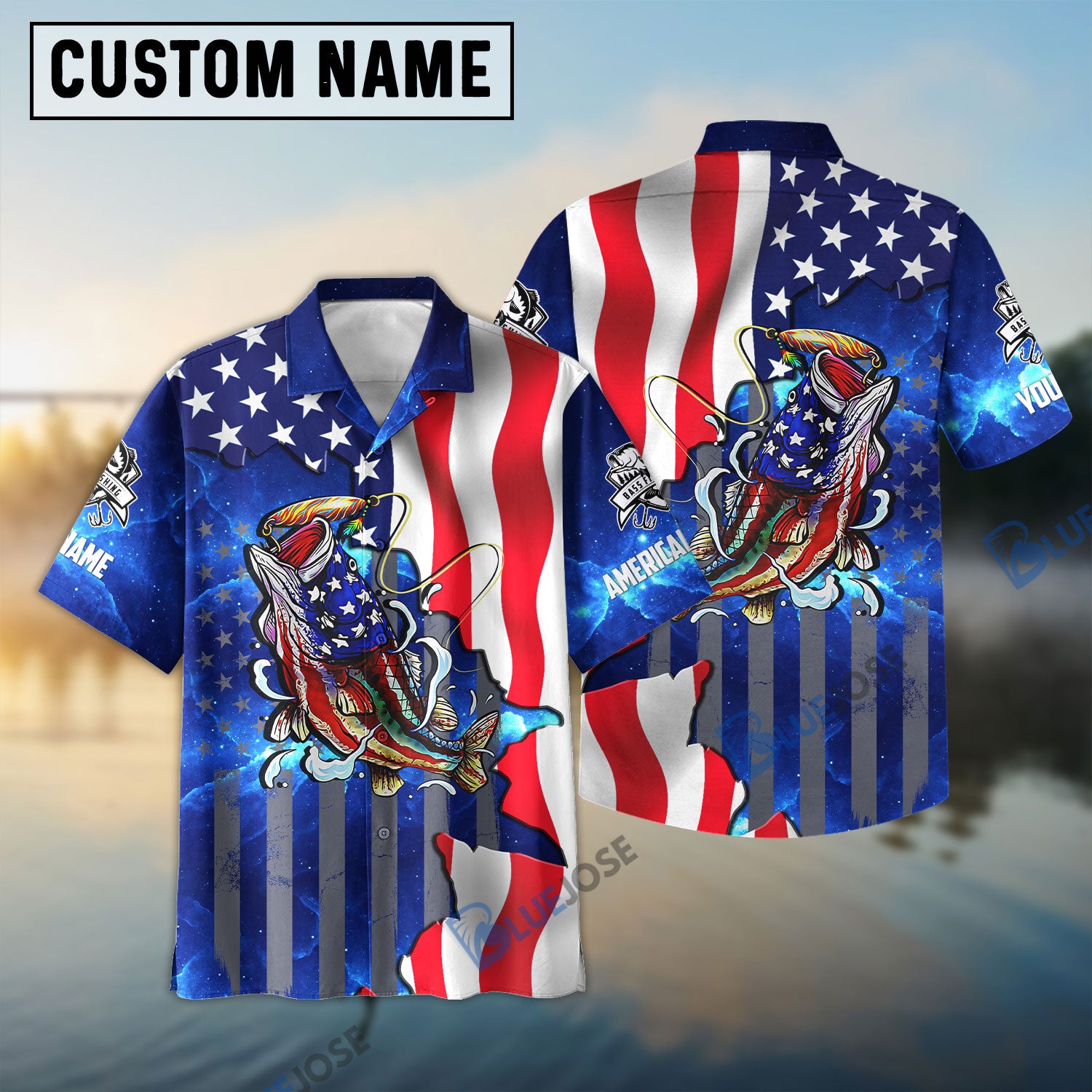 Bluejose Bass Fishing American Flag Patriotic Custom Name 3D Shirt