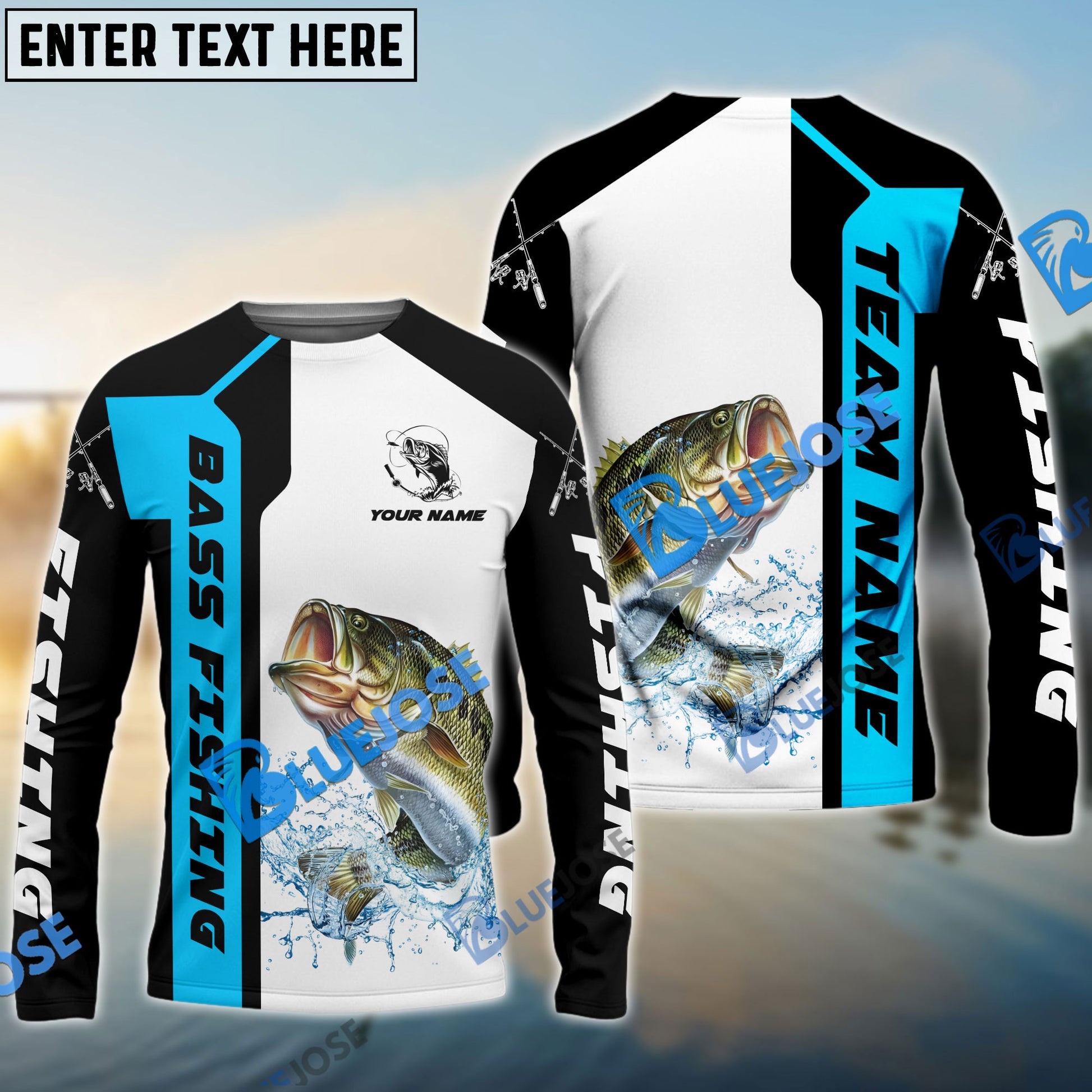 Bluejose Bass Fishing Blue Line Sport Custom Name & Team Name 3D Shirts