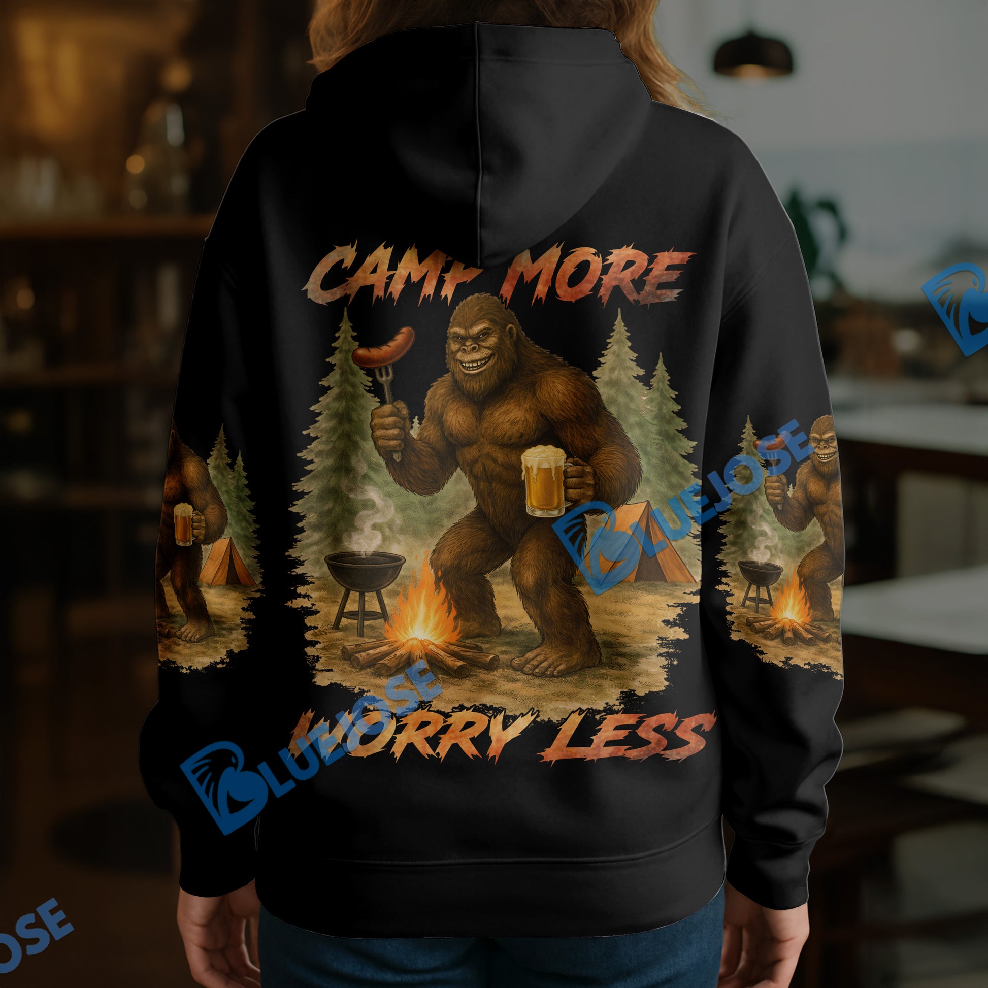 BlueJose Bigfoot Camping Camp More, Worry Less 3D Shirts