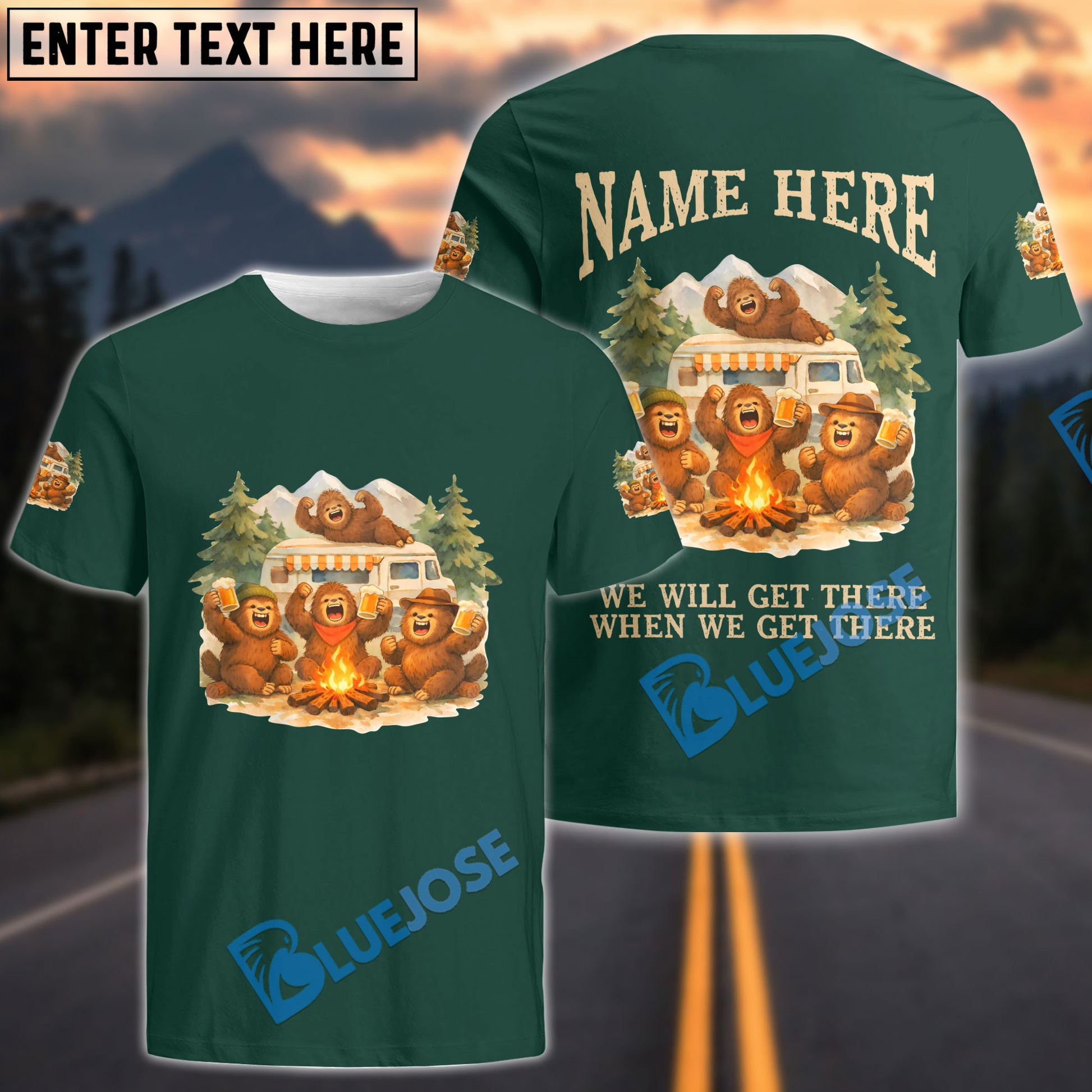 BlueJose Bigfoot Camping We Will Get There When We Get There Personalized Name Shirts