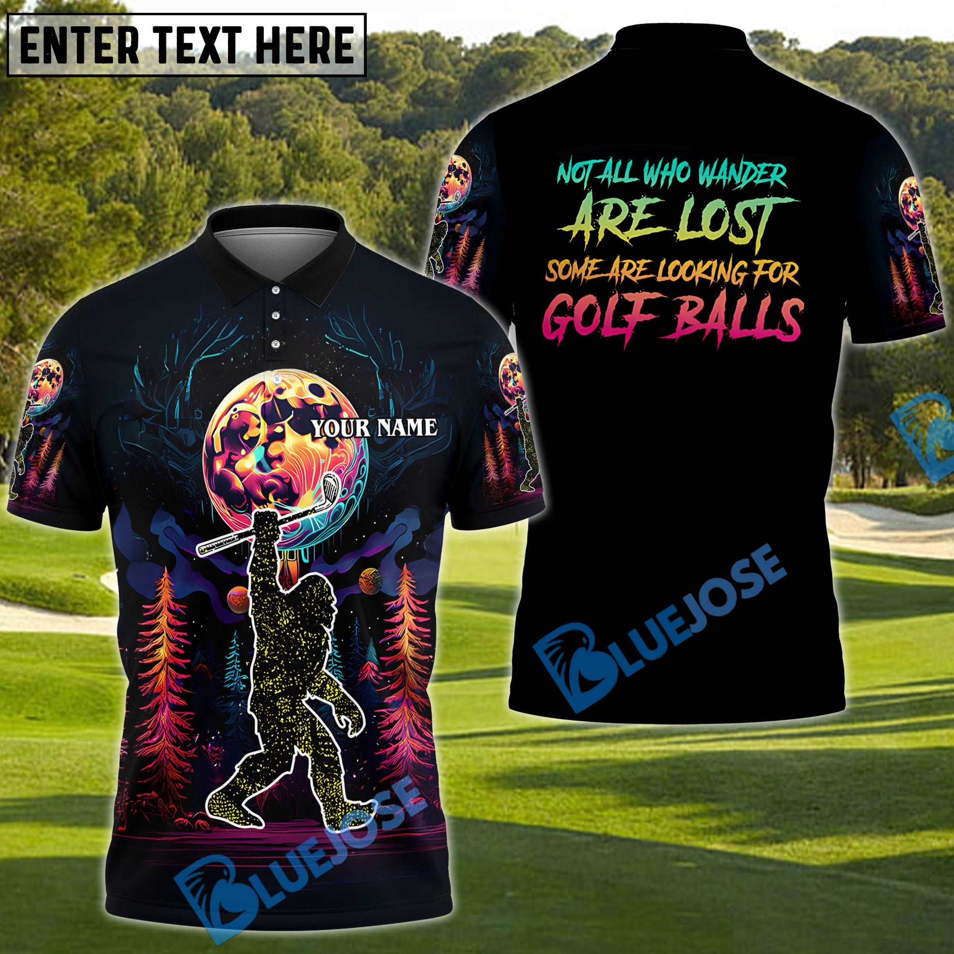 BlueJose Bigfoot Funny Golf Polo Shirt Custom Name, Team Name 3D Shirts
