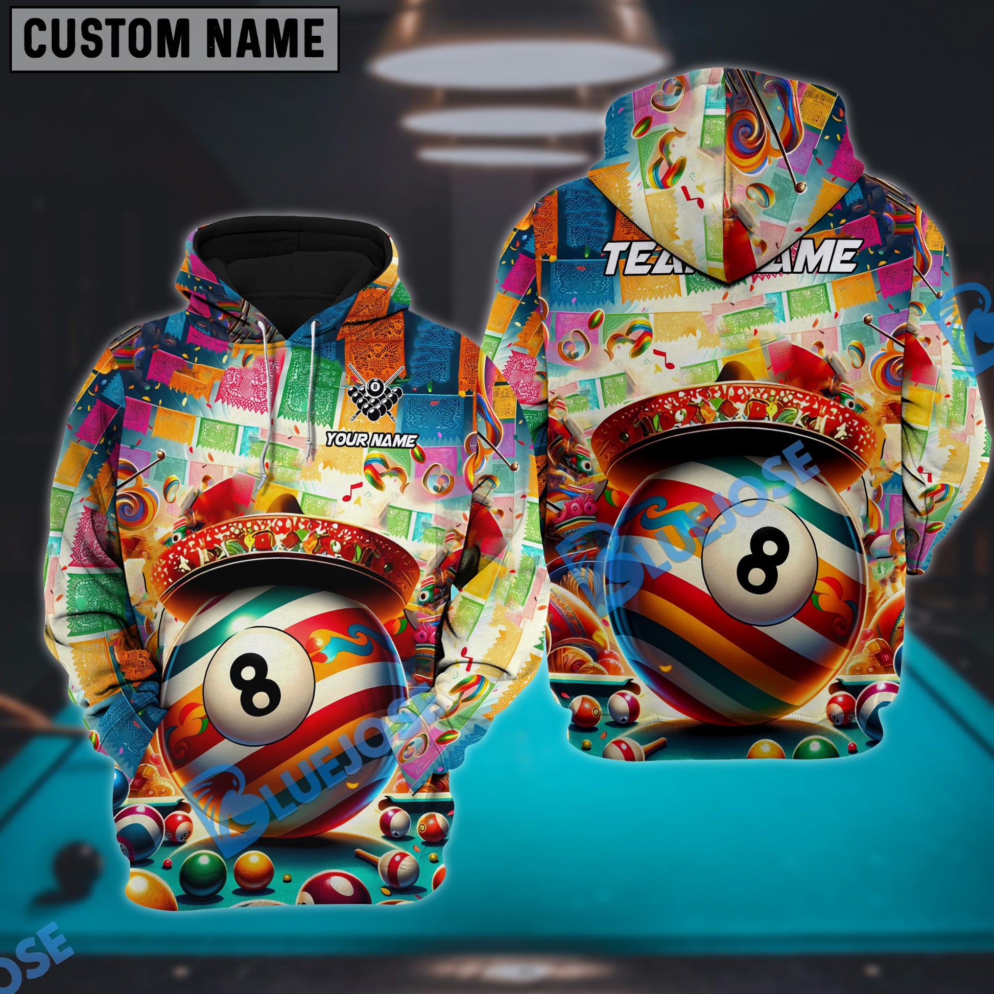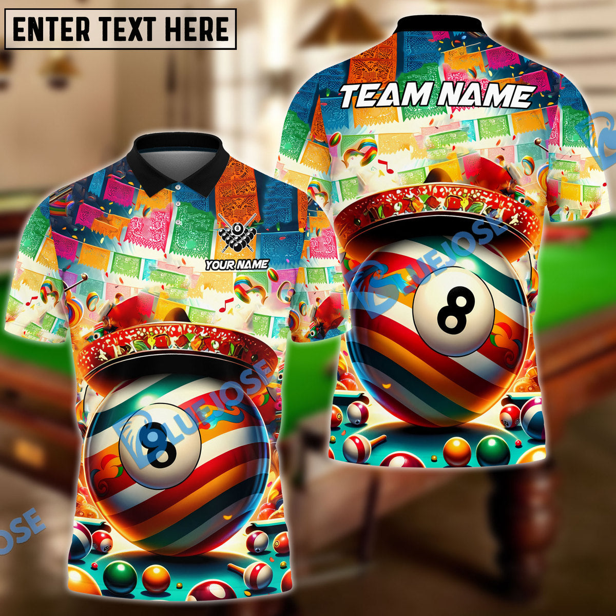 BlueJose Billiard Ball 8 Cinco De Mayo Personalized Name, Team Name Unisex Shirt