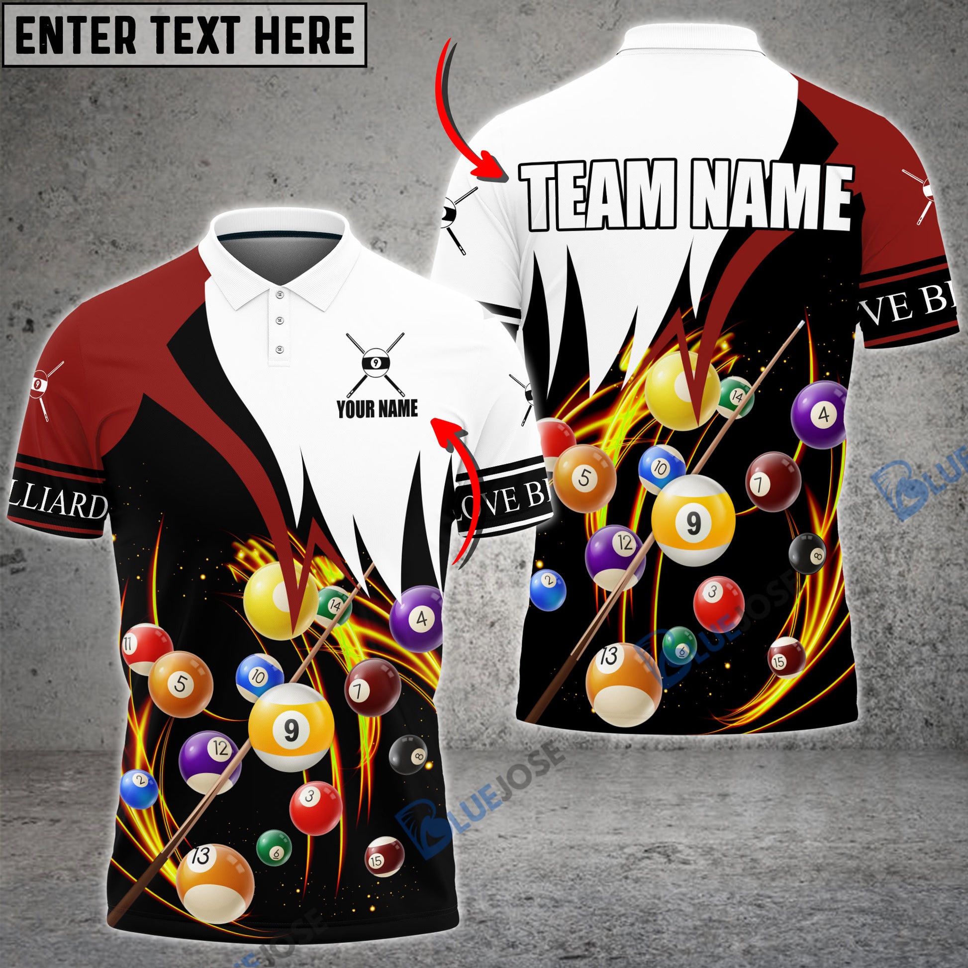 BlueJose Billiard Red & White 9-Ball Personalized Name, Team Name Shirt