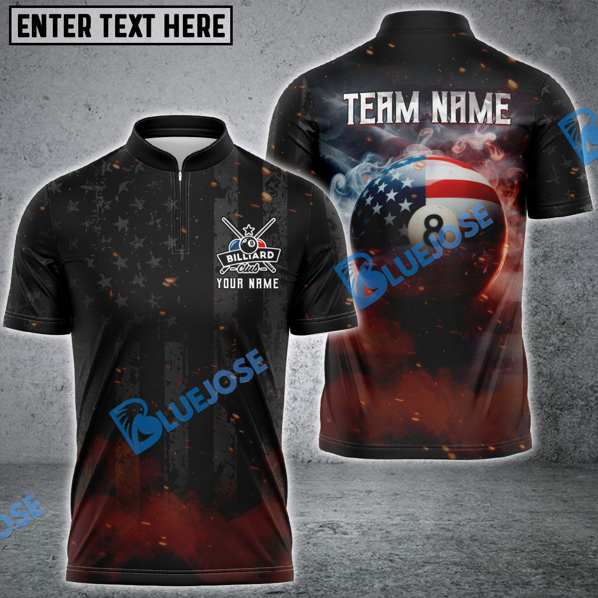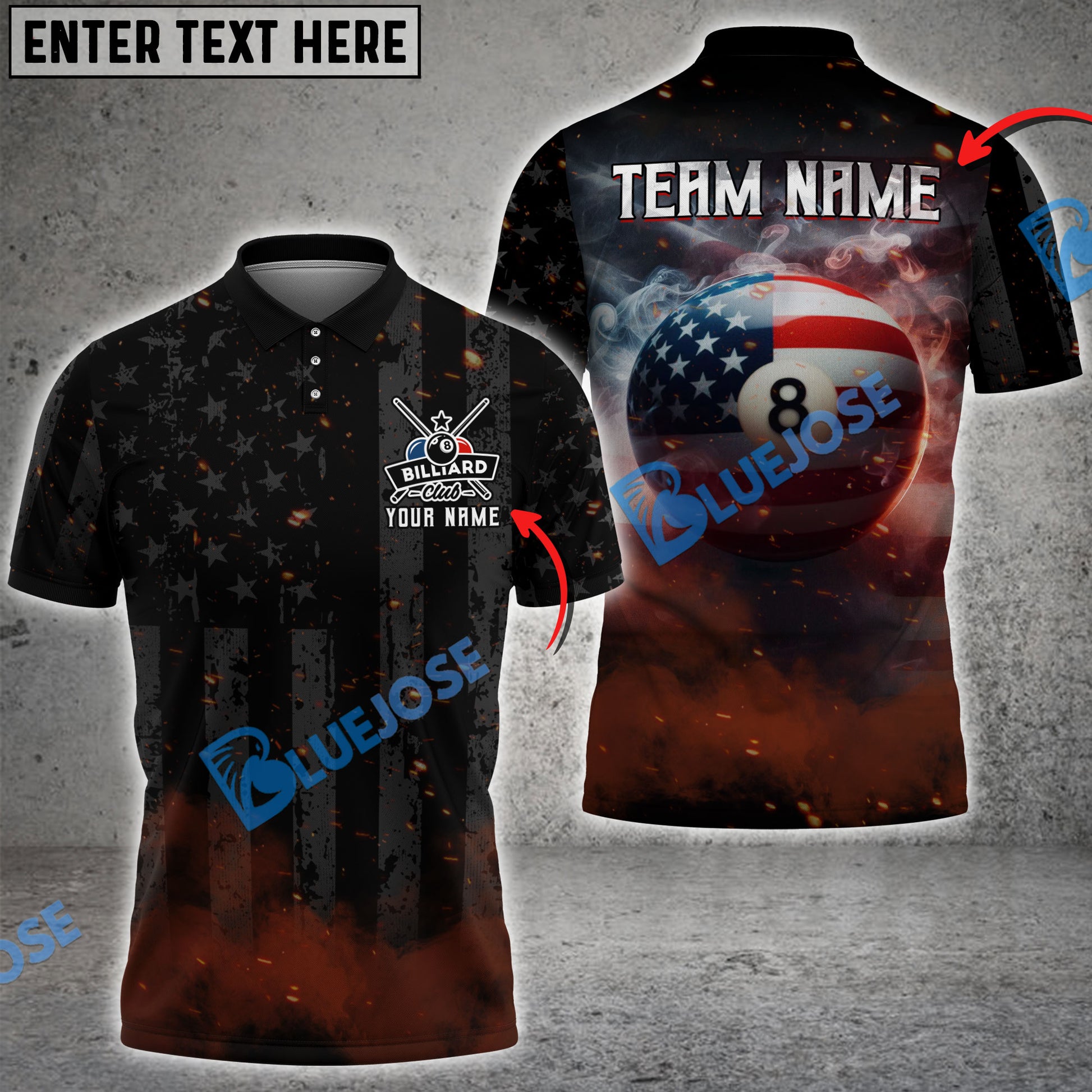 BlueJose Billiards 8 Ball Smoke American Flag Personalized Name, Team Name Shirt