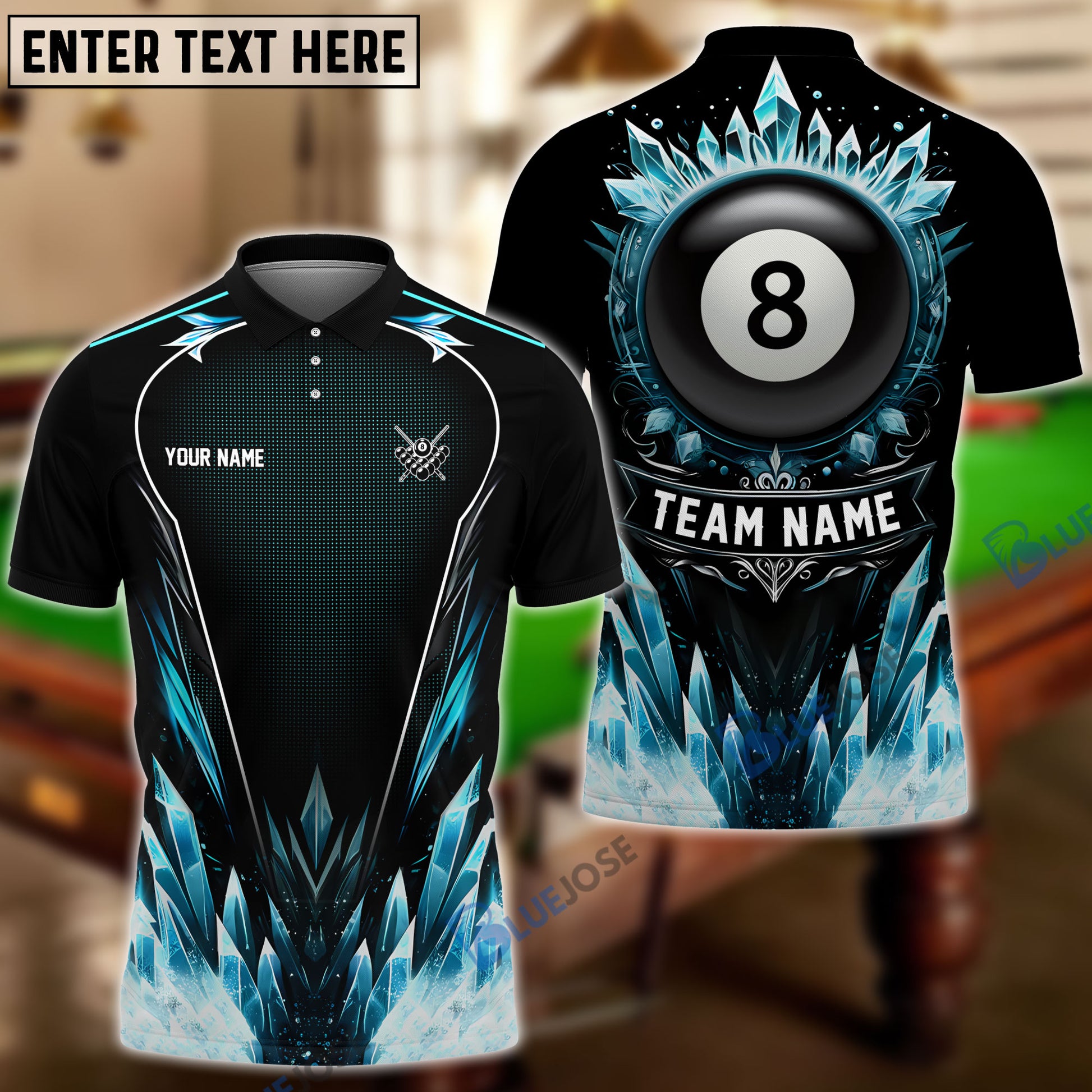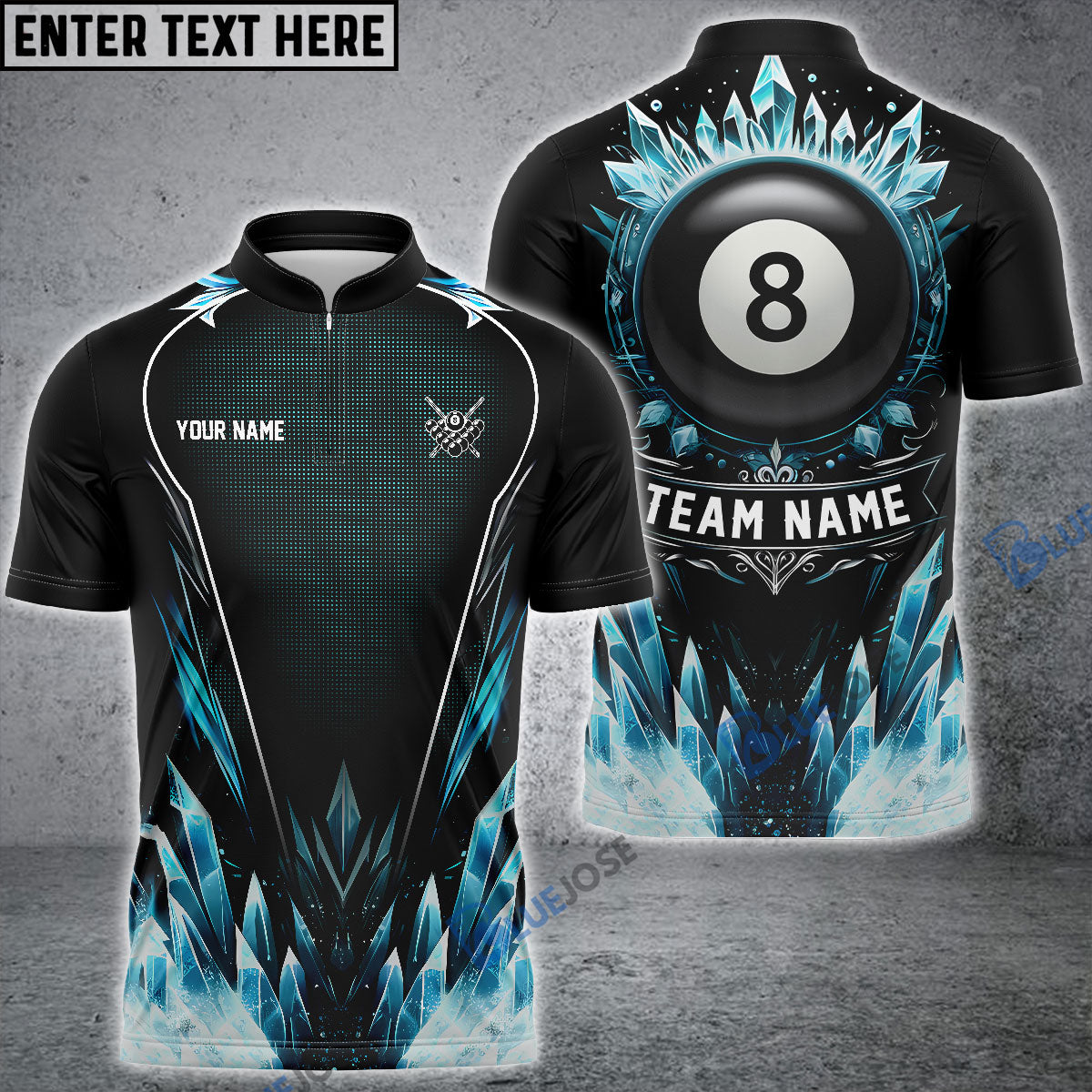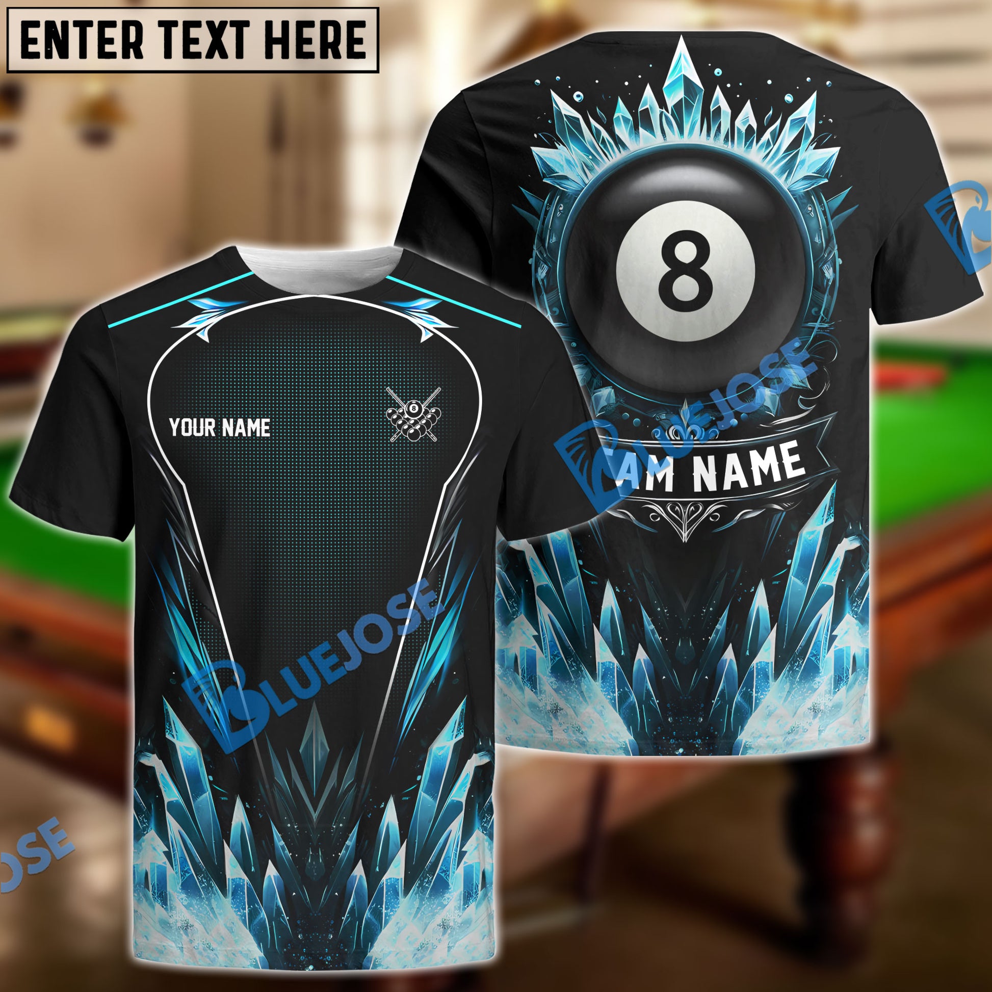 BlueJose Billiards 8-Ball Stone Personalized Name, Team Name Shirt