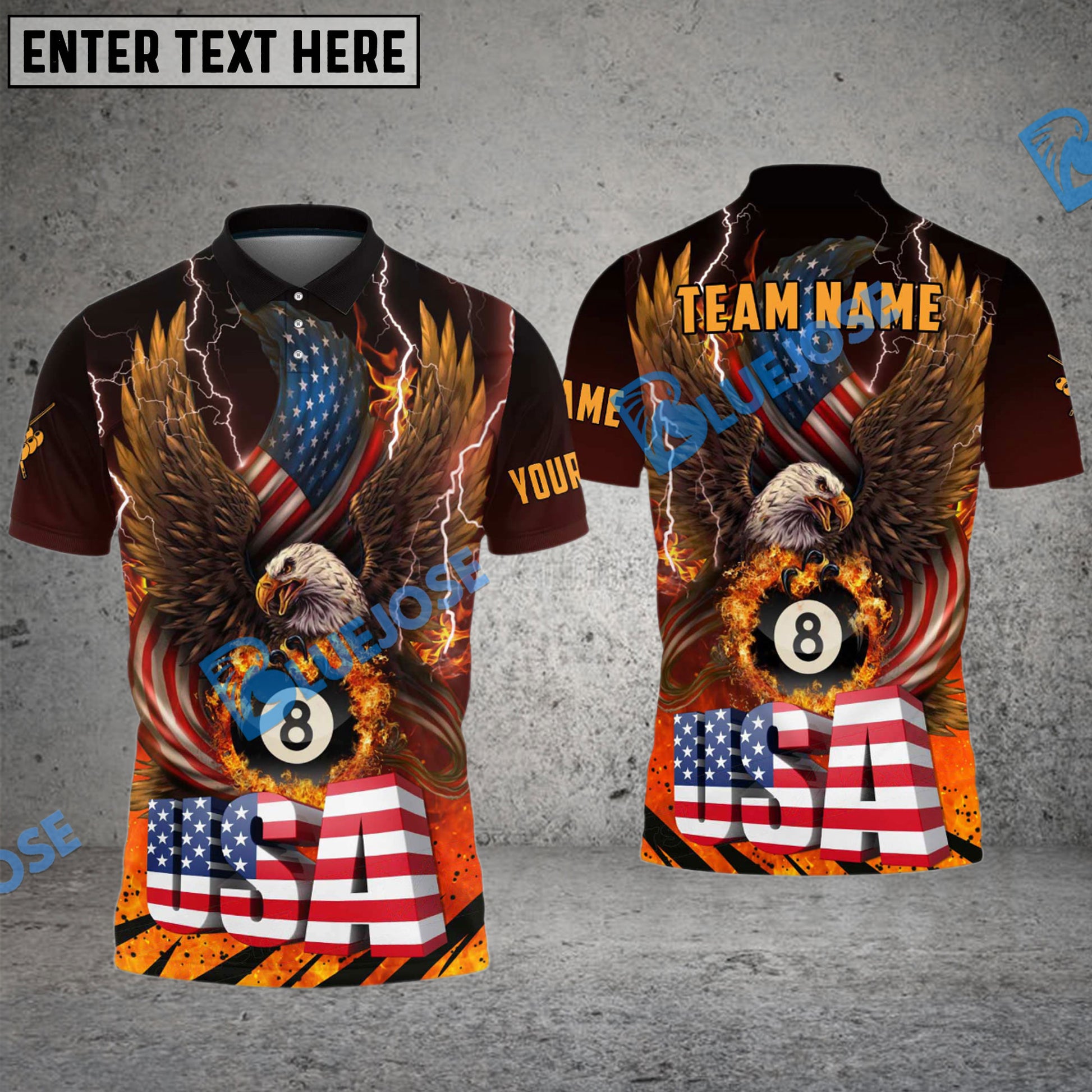 BlueJose Billiards Ball 8 American Eagle Fire And Thunder Personalized Name, Team Name Unisex Shirt ( 4 Colors )
