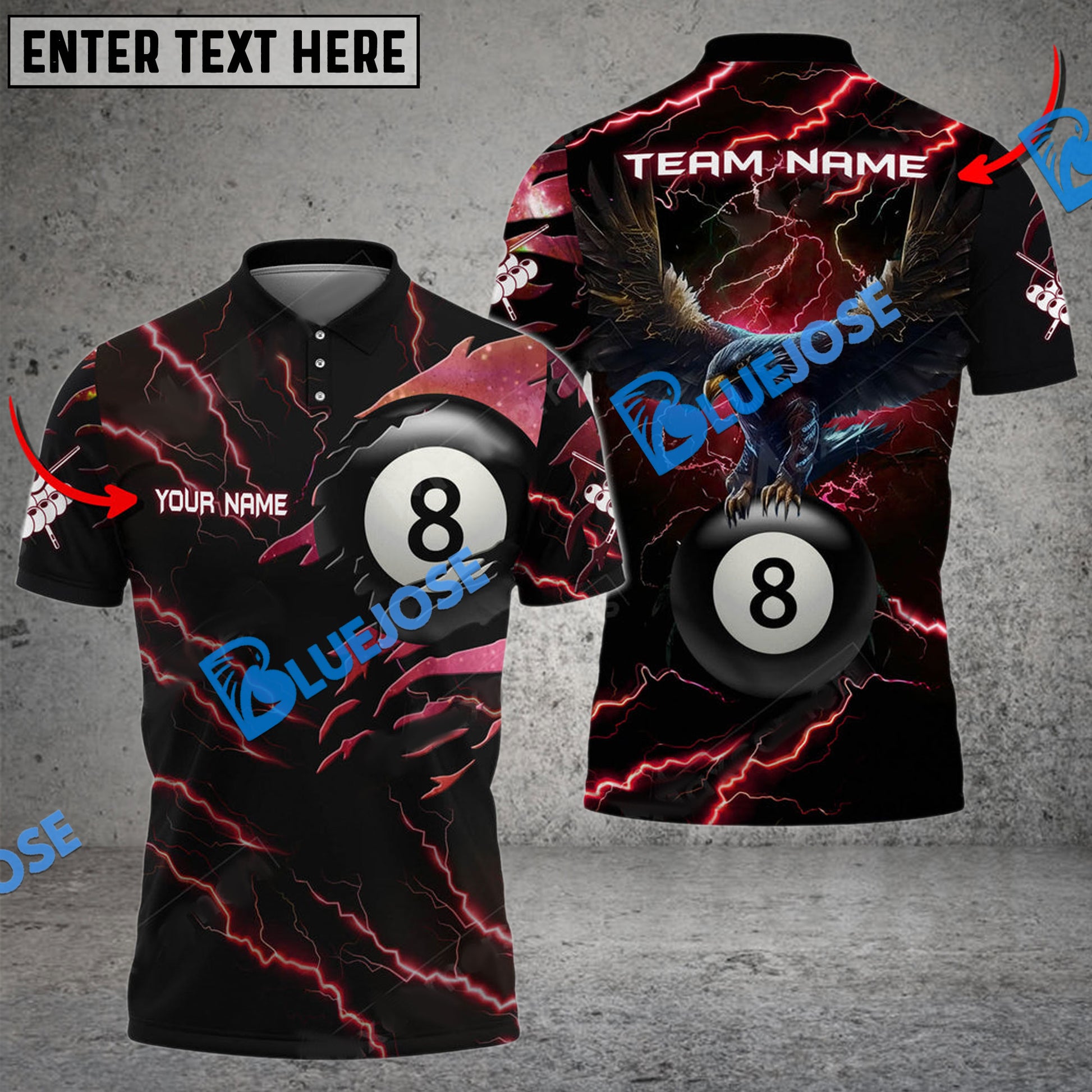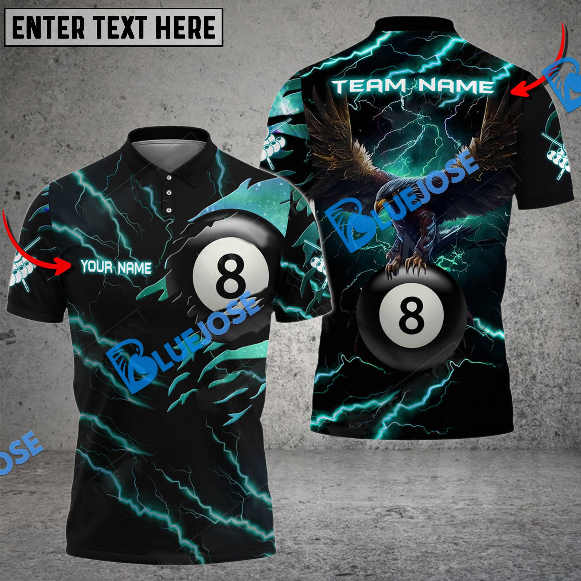 BlueJose Billiards Ball 8 Ball Eagle Thunder Personalized Name, Team Name Unisex Shirt ( 6 Colors )