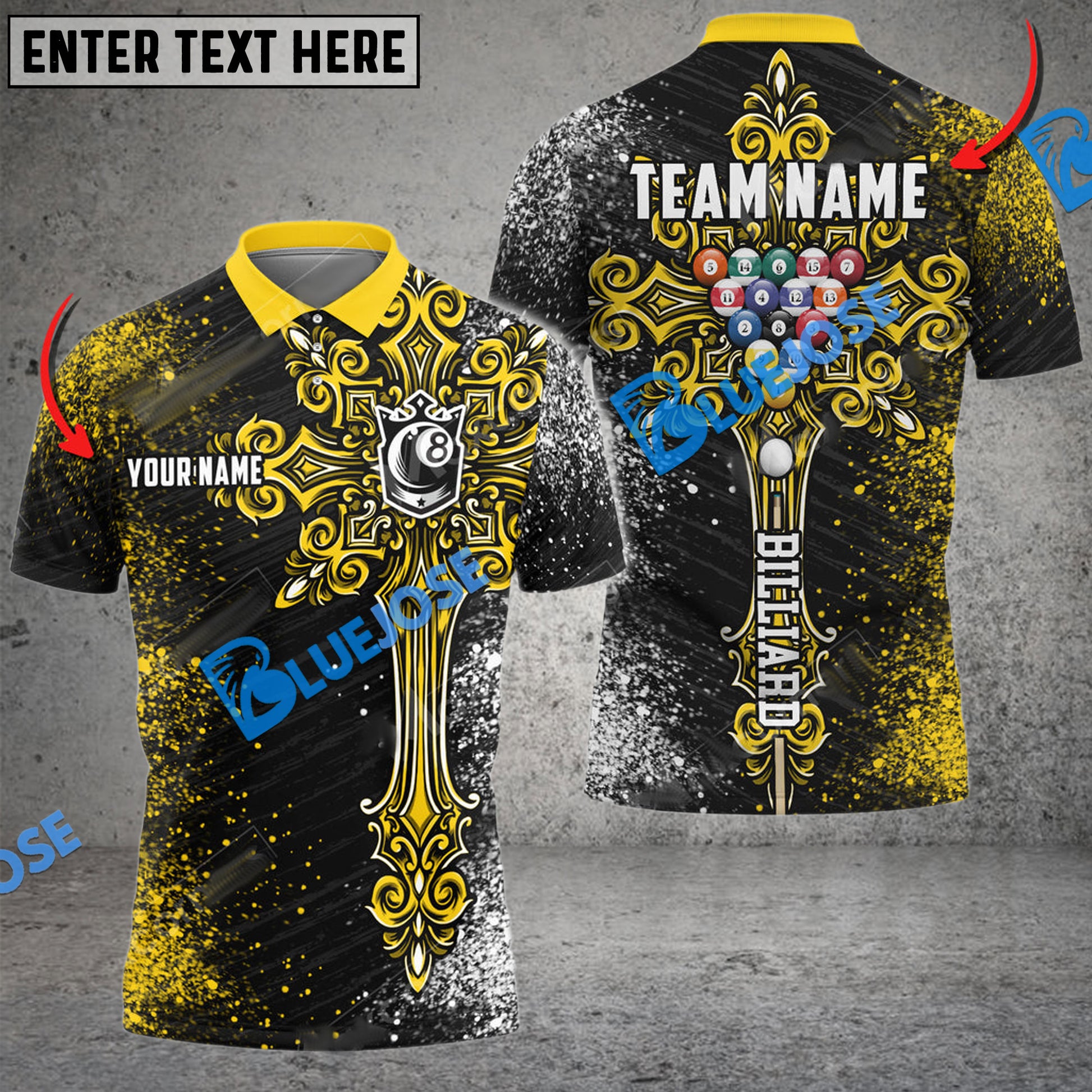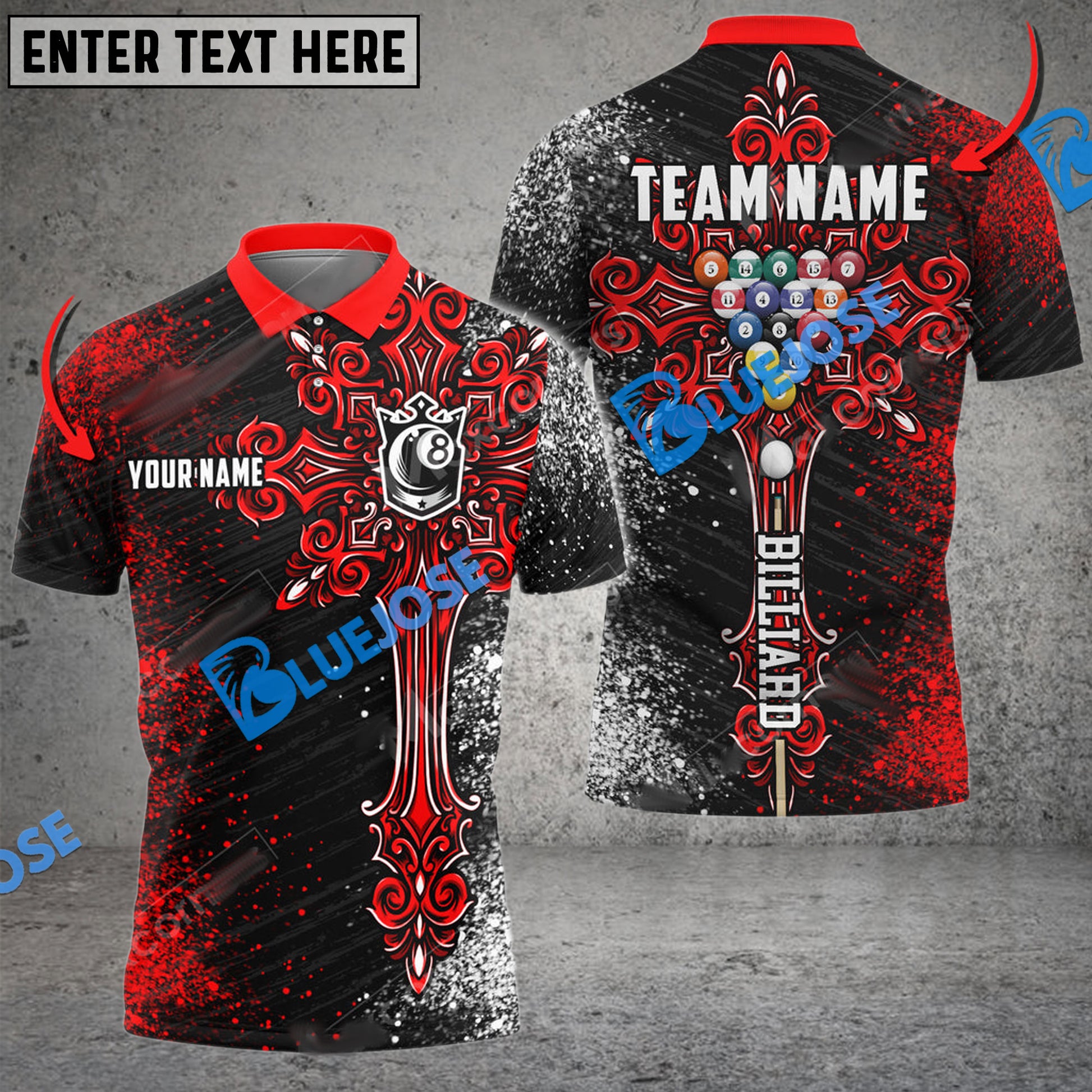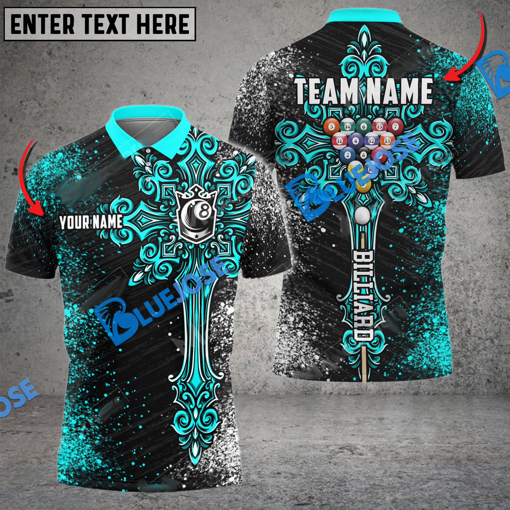 BlueJose Billiards Ball 8 Cross Personalized Name, Team Name Unisex Shirt ( 4 Colors )
