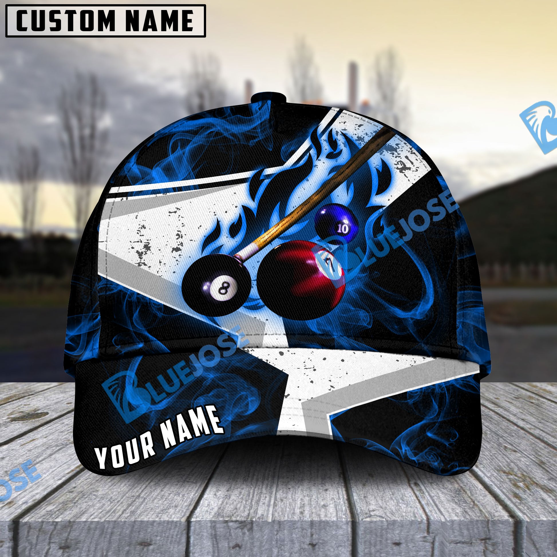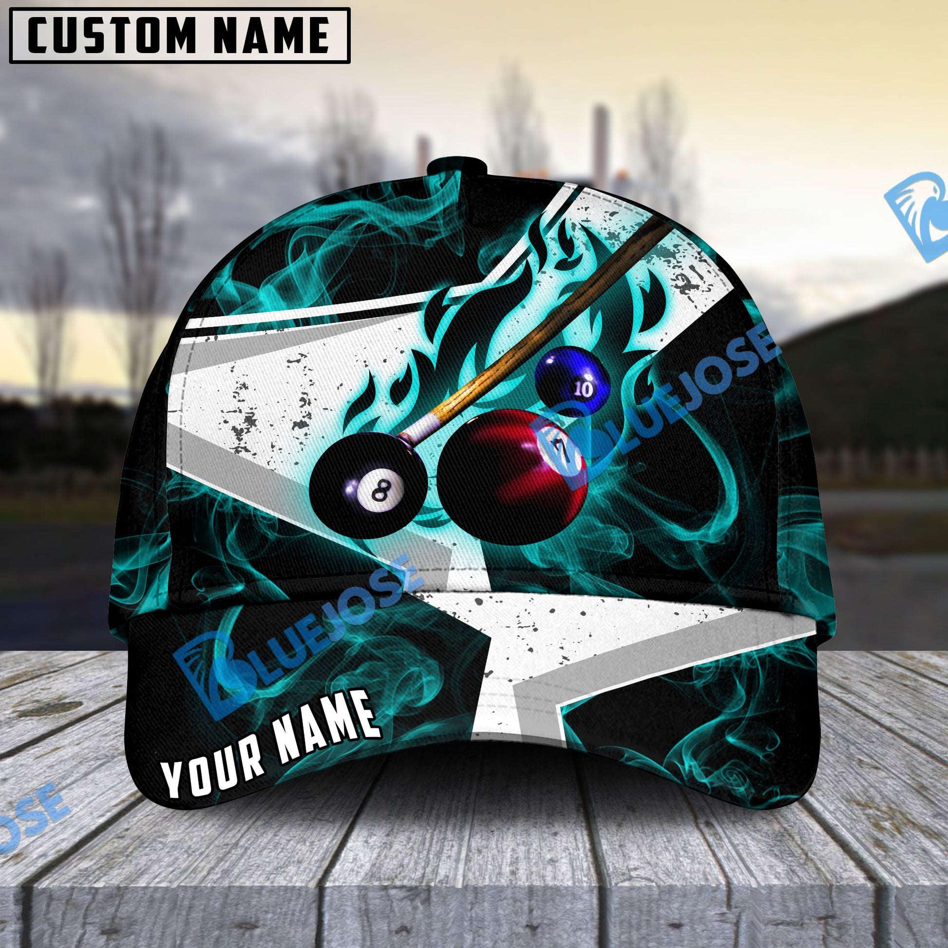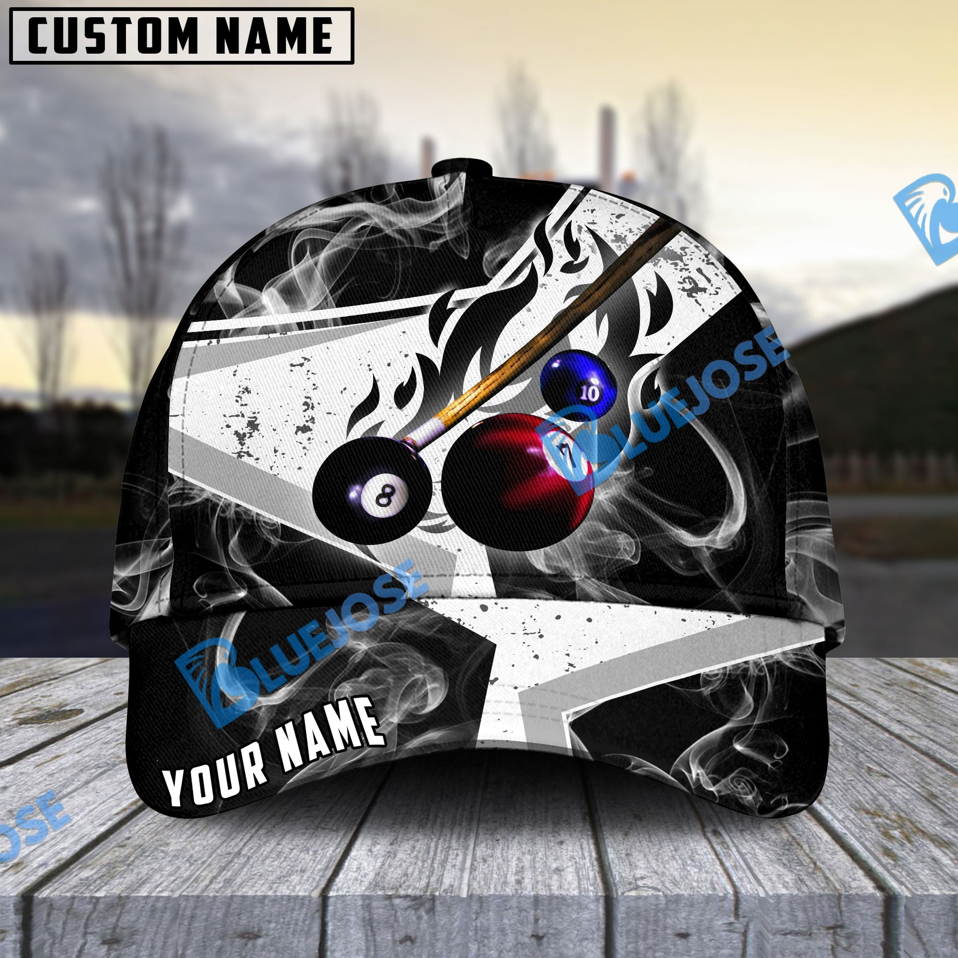 BlueJose Billiards Ball 8 Dark Flame Stroke Personalized Name Cap (6 Colors)