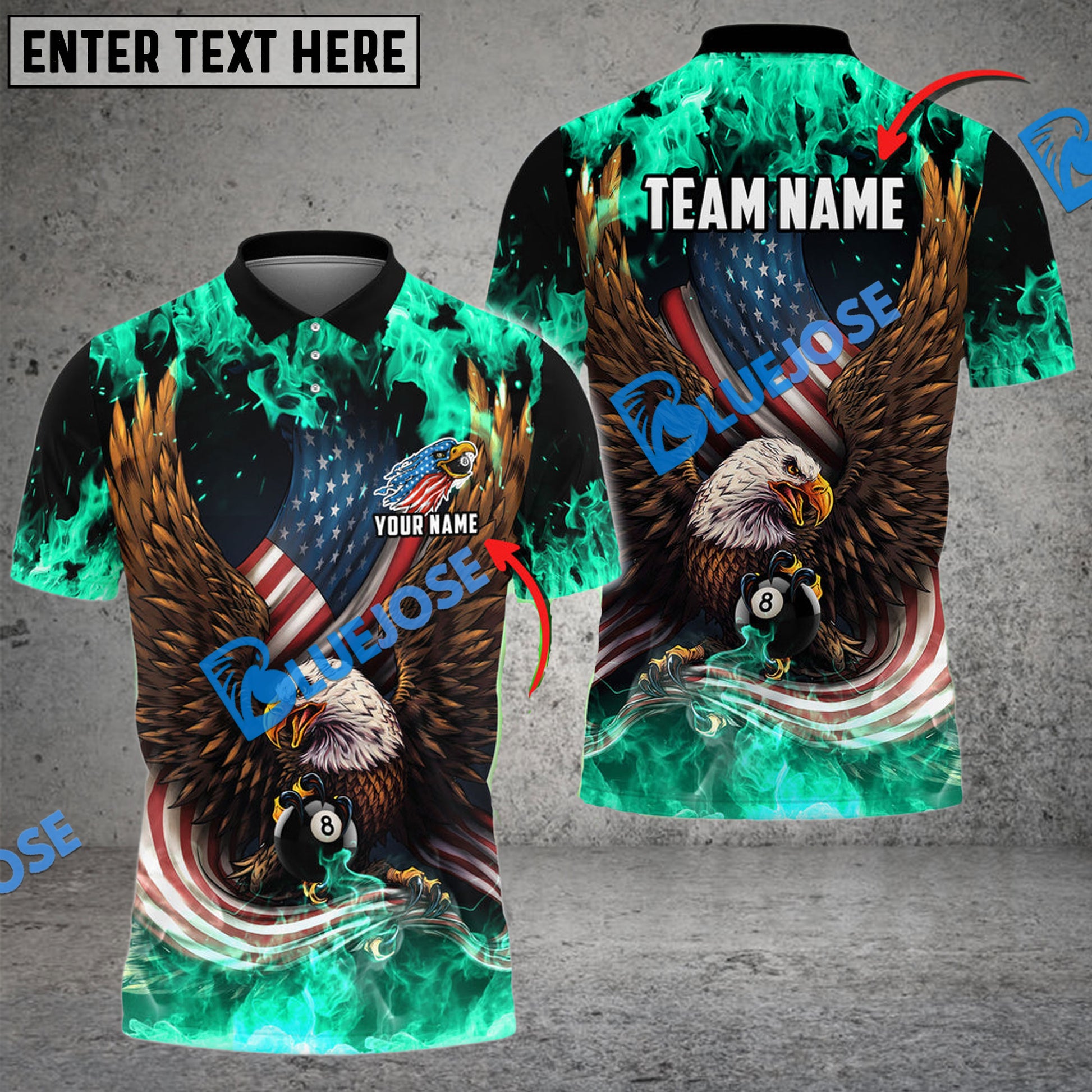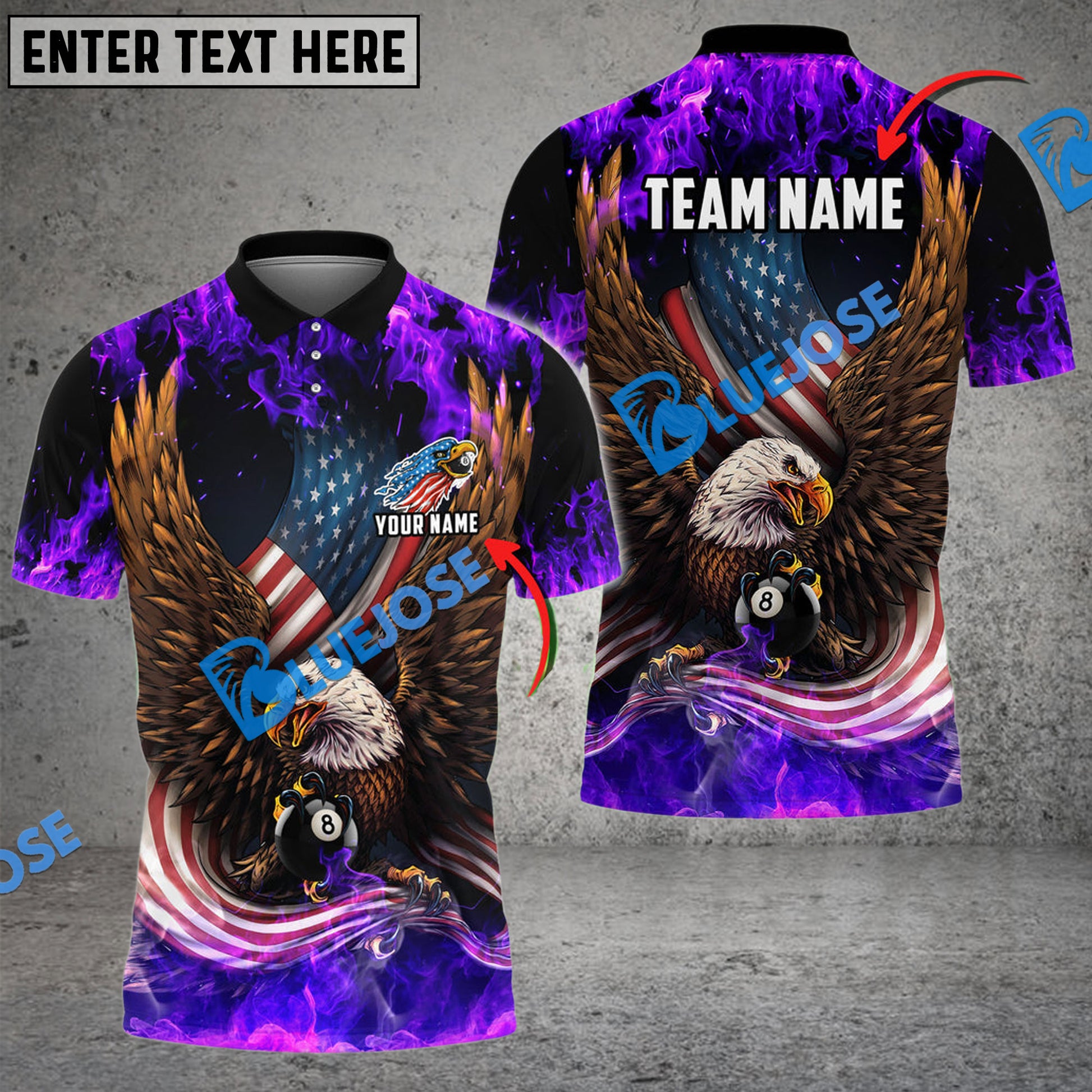 BlueJose Billiards Ball 8 Eagle US Flag Pattern Personalized Name, Team Name Unisex Shirt ( 6 Colors )