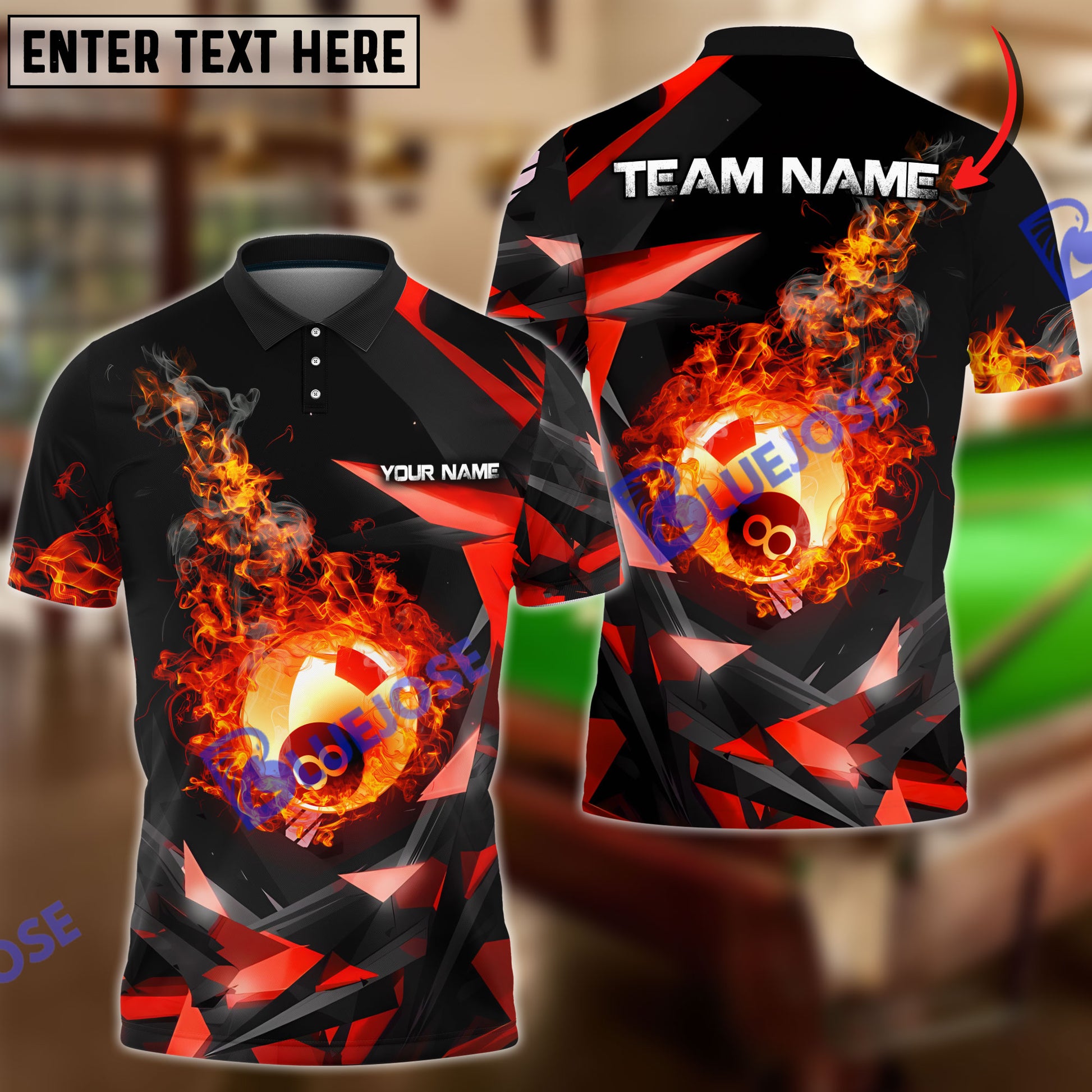 BlueJose Billiards Ball 8 Falling Fireball Personalized Name, Team Name Unisex Shirt ( 4 Colors )