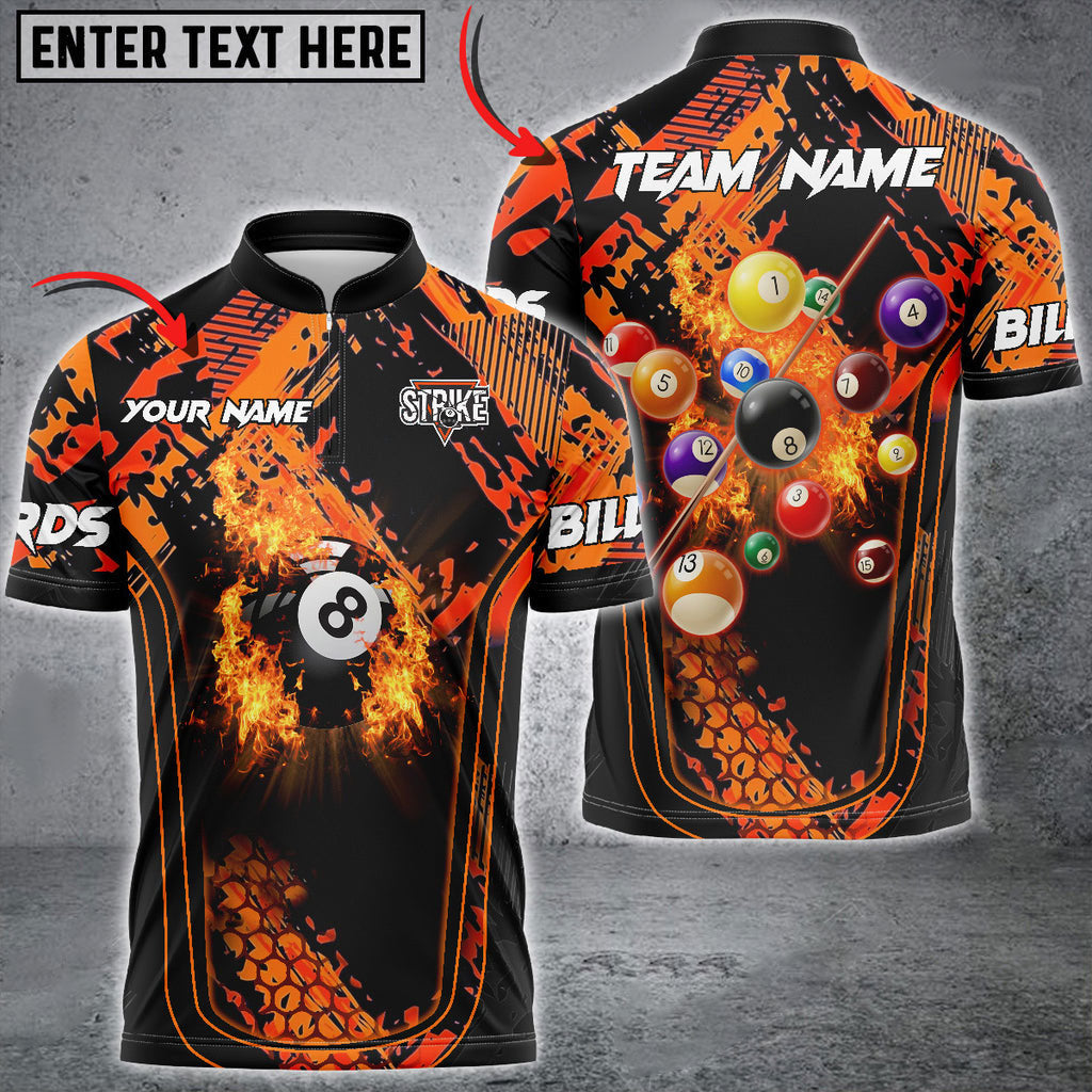 BlueJose Billiards Ball 8 Fire Grunge Texture Personalized Name, Team Name Unisex Shirt ( 6 Colors )