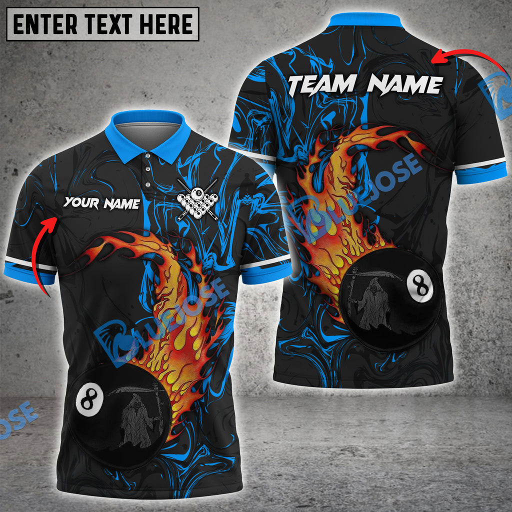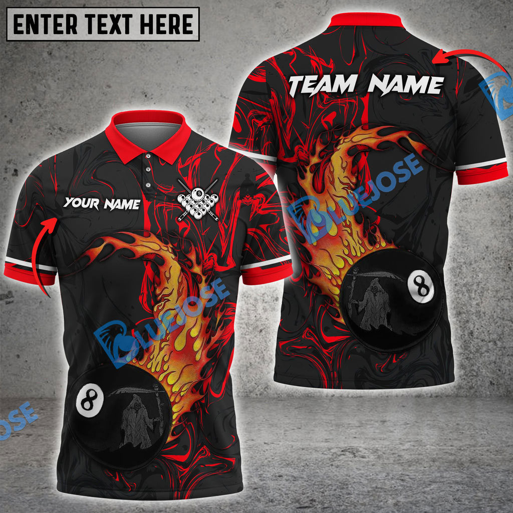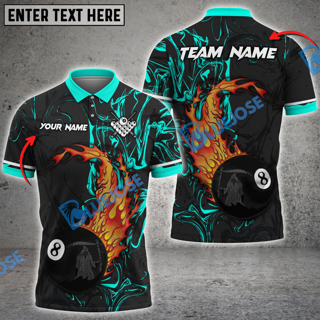 BlueJose Billiards Ball 8 Fire Skull Personalized Name, Team Name Unisex Shirt ( 4 Colors )