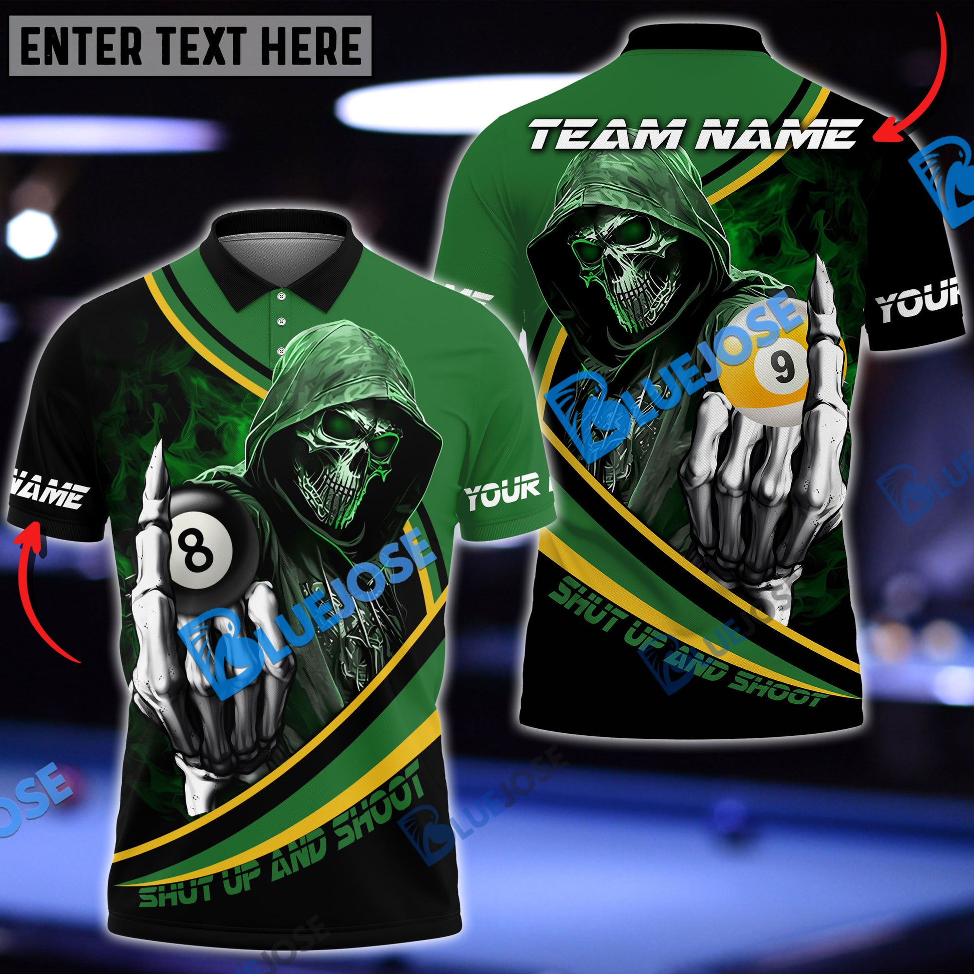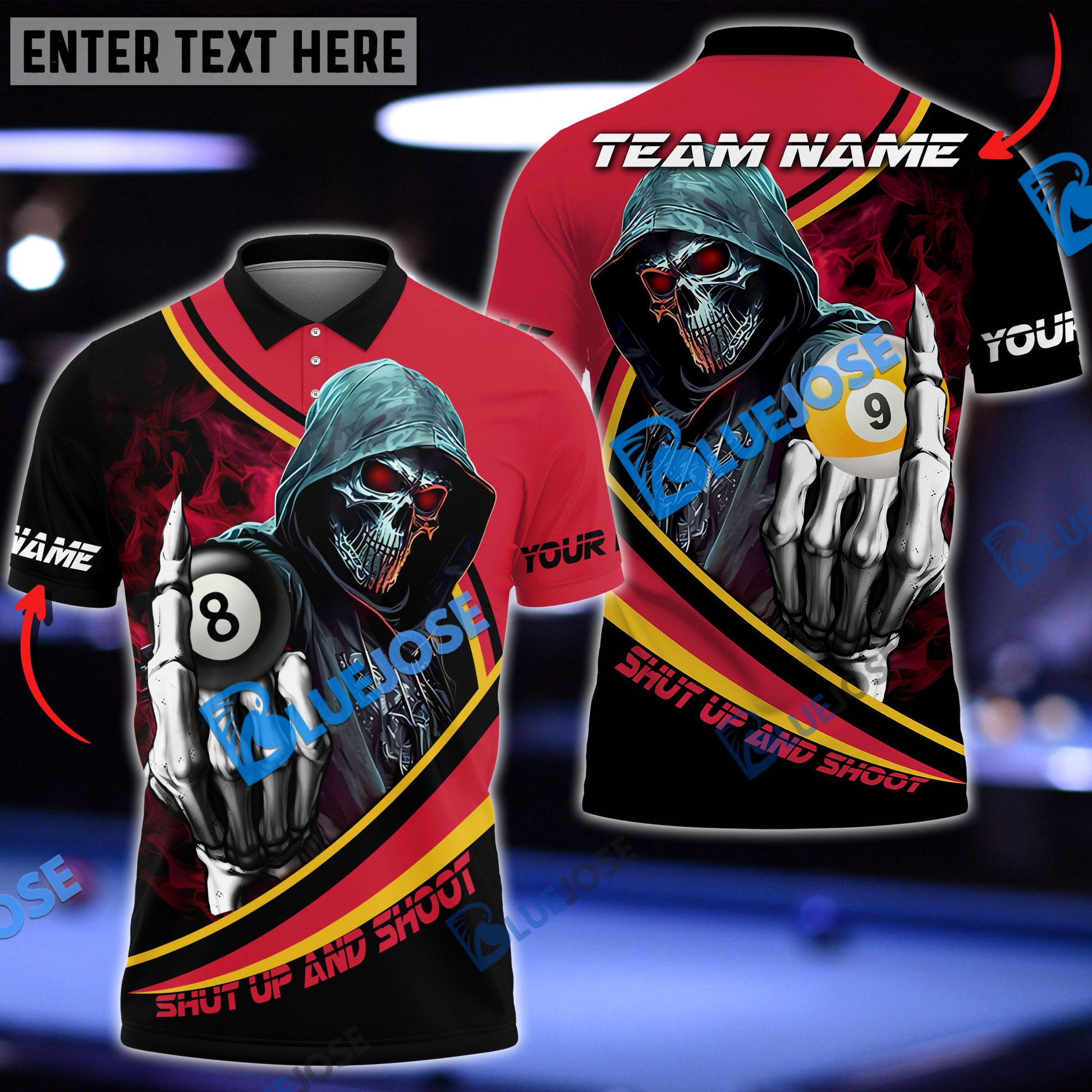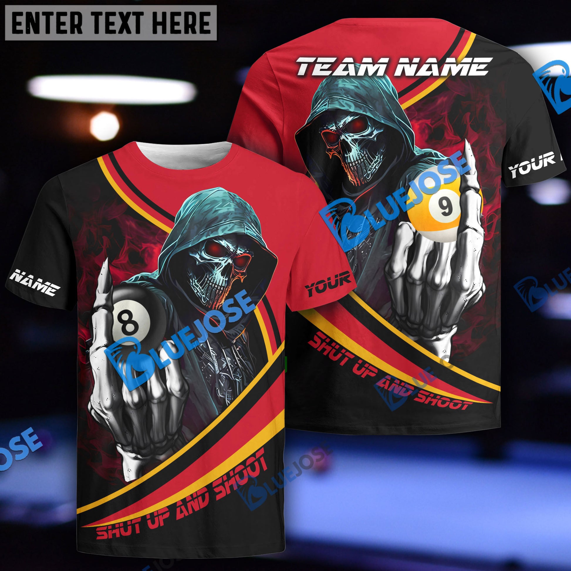 BlueJose Billiards Ball 8 And 9 Hooded Skull Personalized Name, Team Name Unisex Shirt ( 4 Colors )