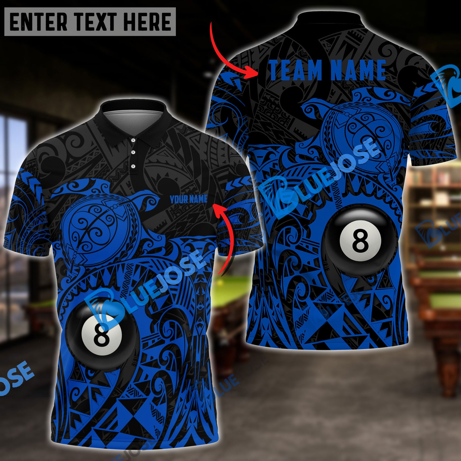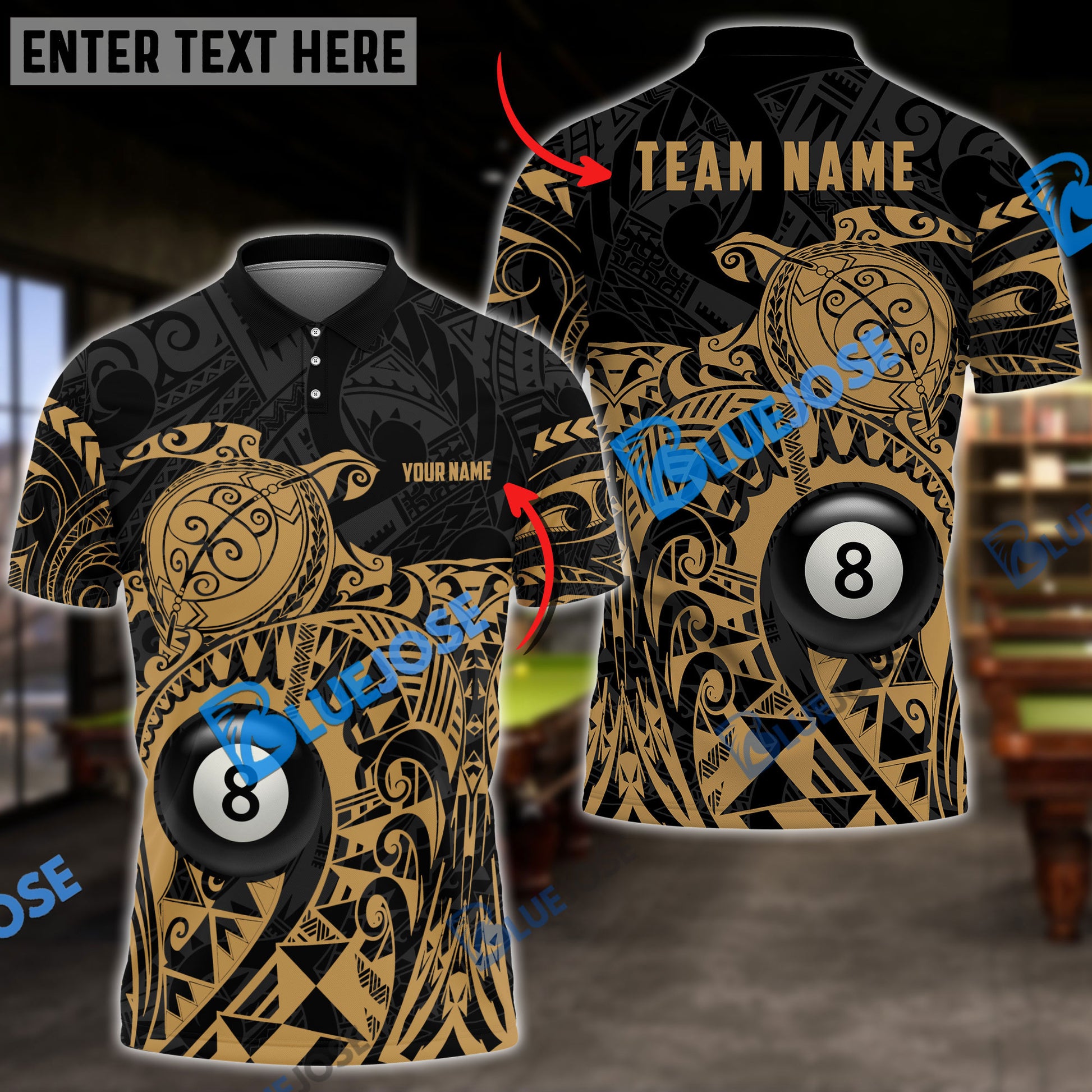 BlueJose Billiards Ball 8 Maori Turtle Personalized Name, Team Name Unisex Shirt ( 4 Colors )