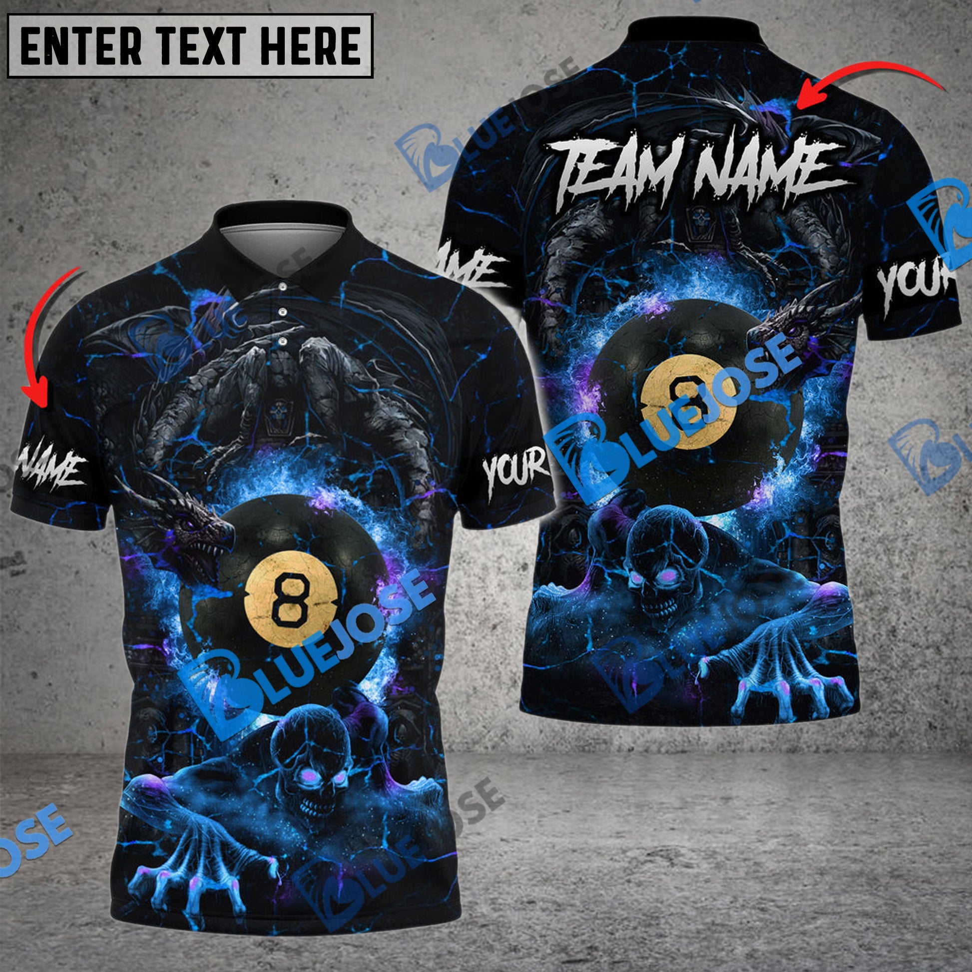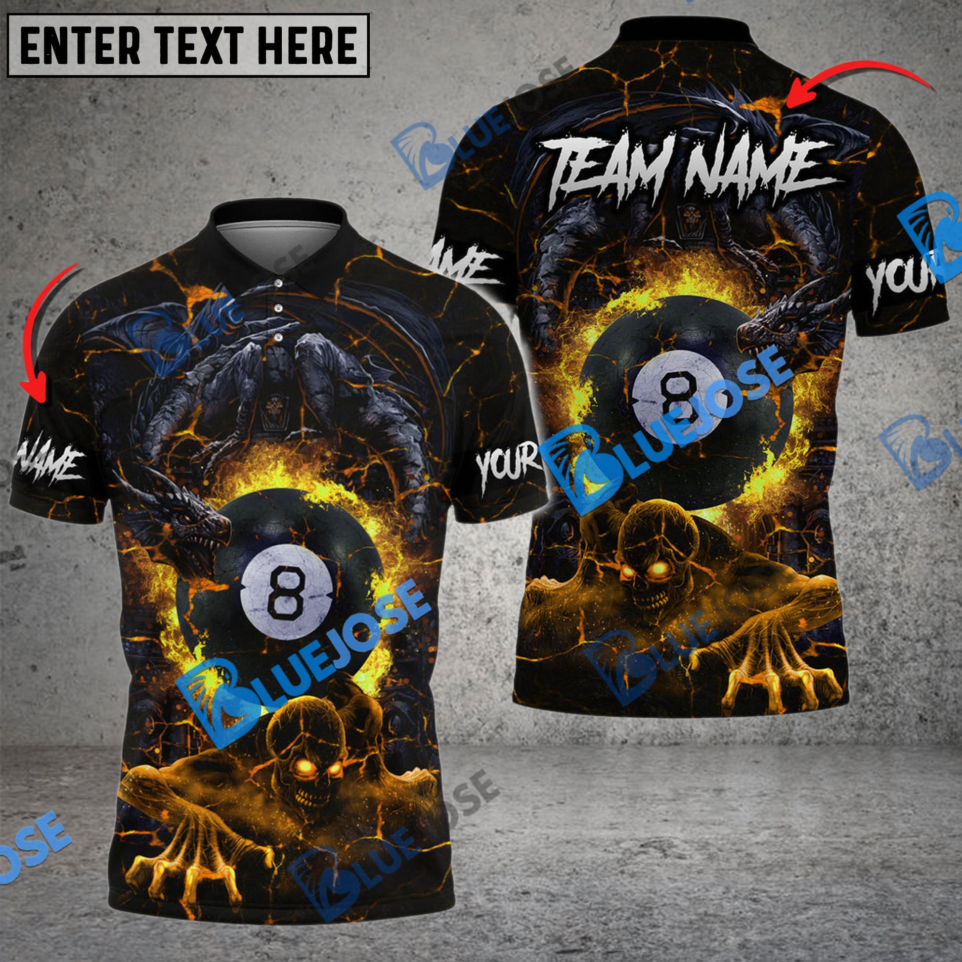 BlueJose Billiards Ball 8 Skull & Dragon Fight Personalized Name, Team Name Unisex Shirt ( 4 Colors )