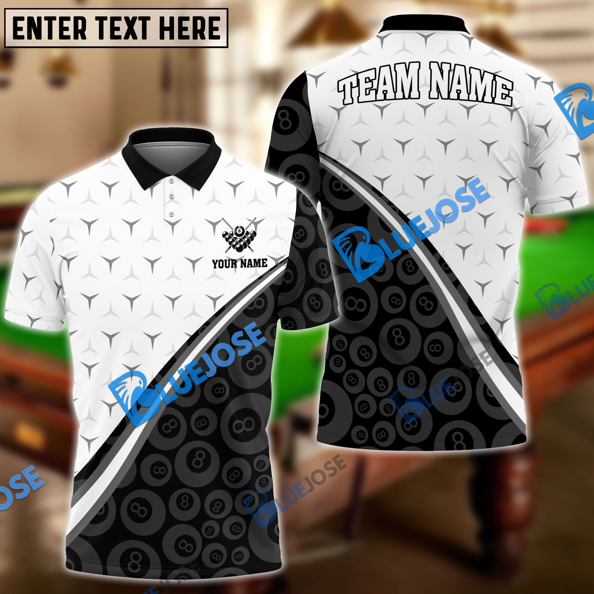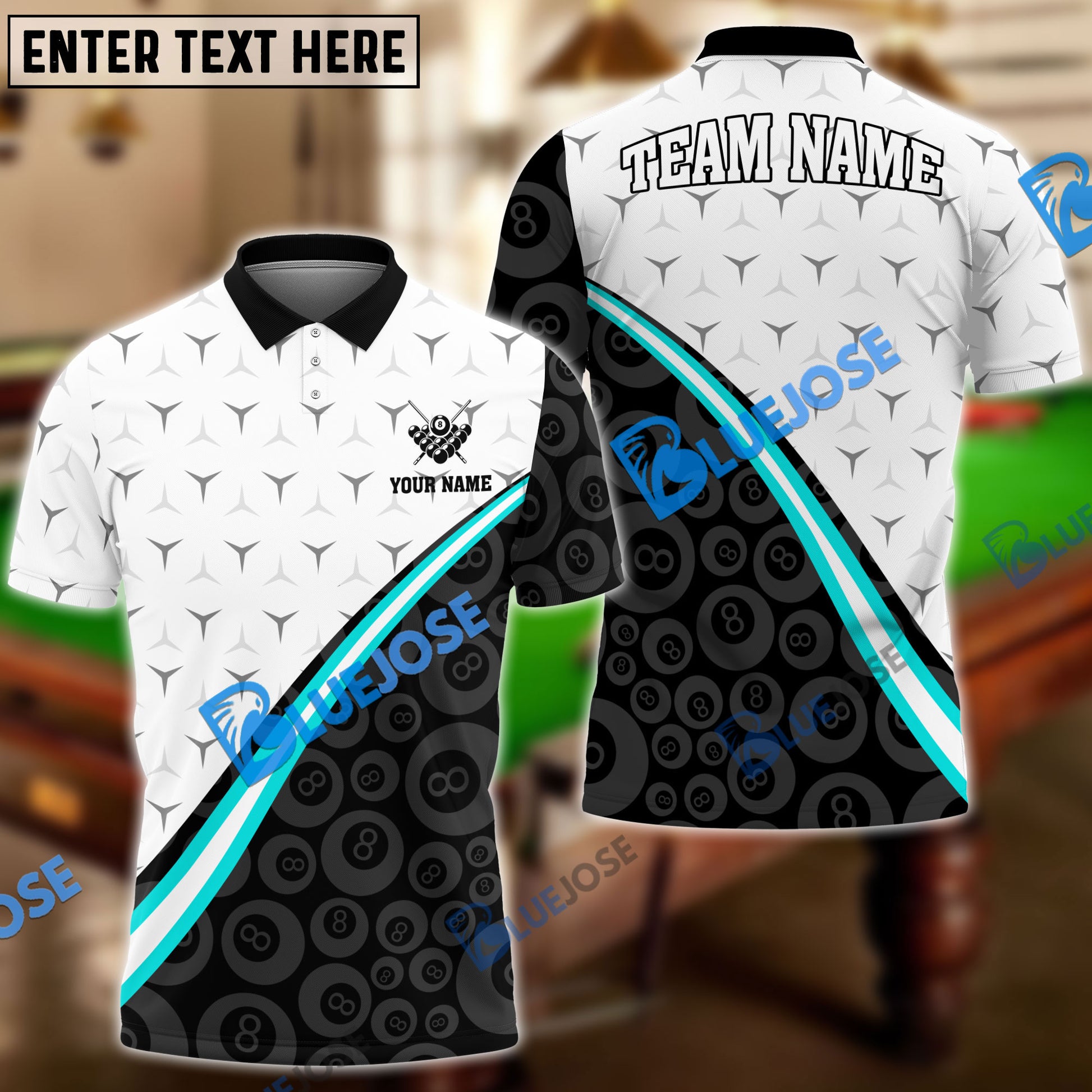 BlueJose Billiards Ball 8 Spike Personalized Name, Team Name Unisex Shirt ( 4 Colors )