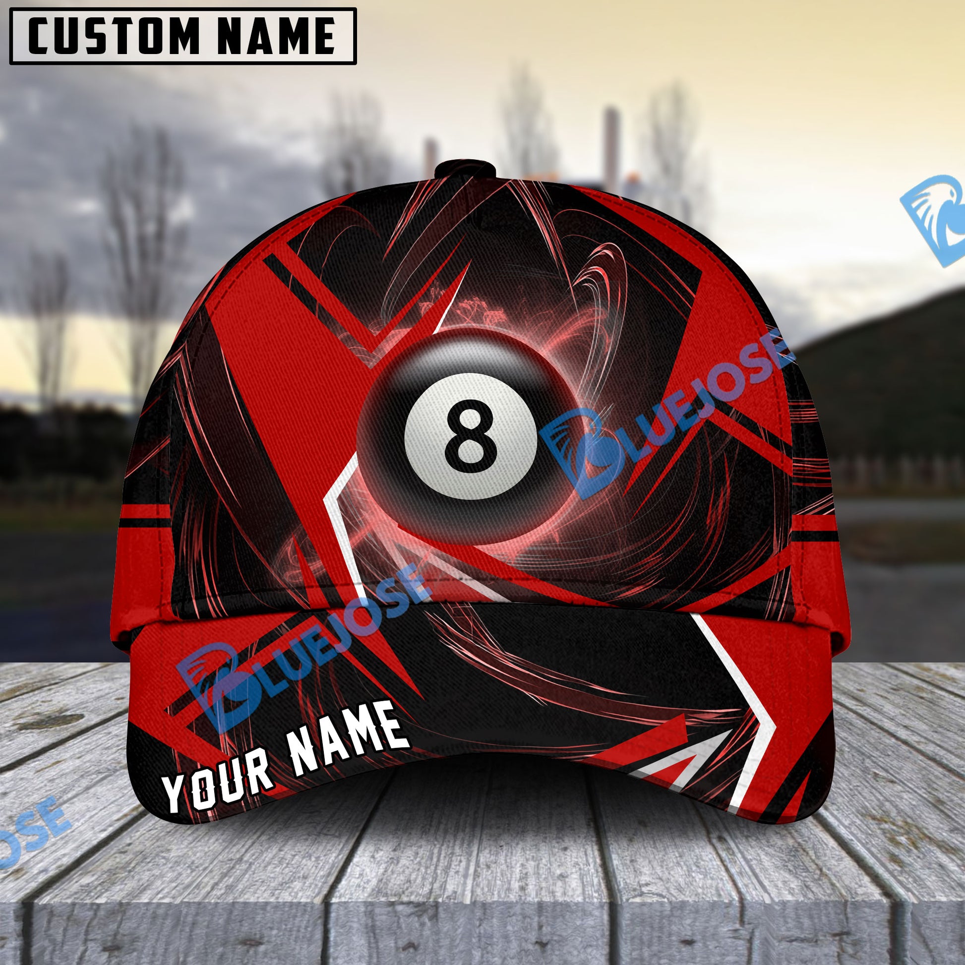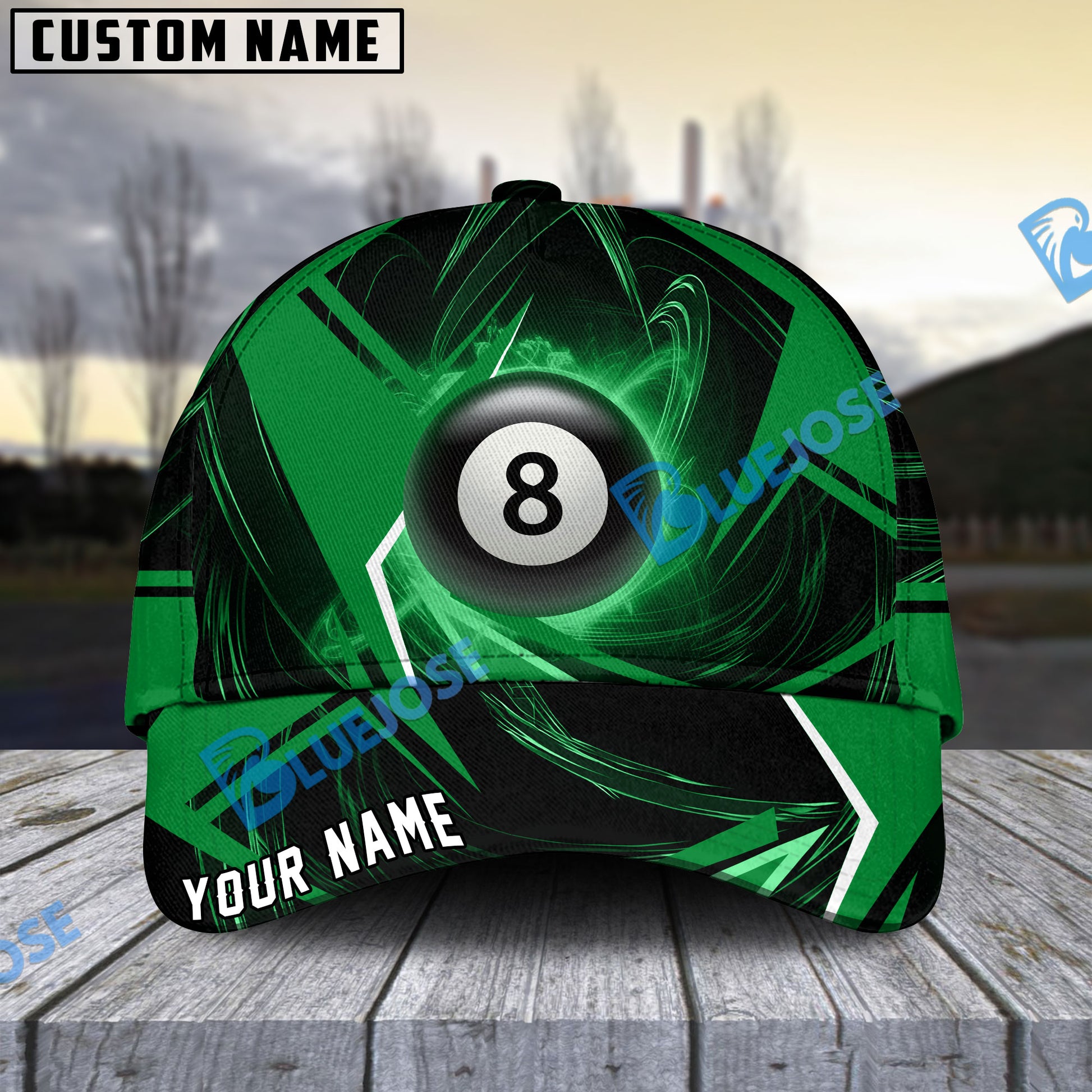 BlueJose Billiards Ball 8 Stormeye Personalized Name Cap (6 Colors)