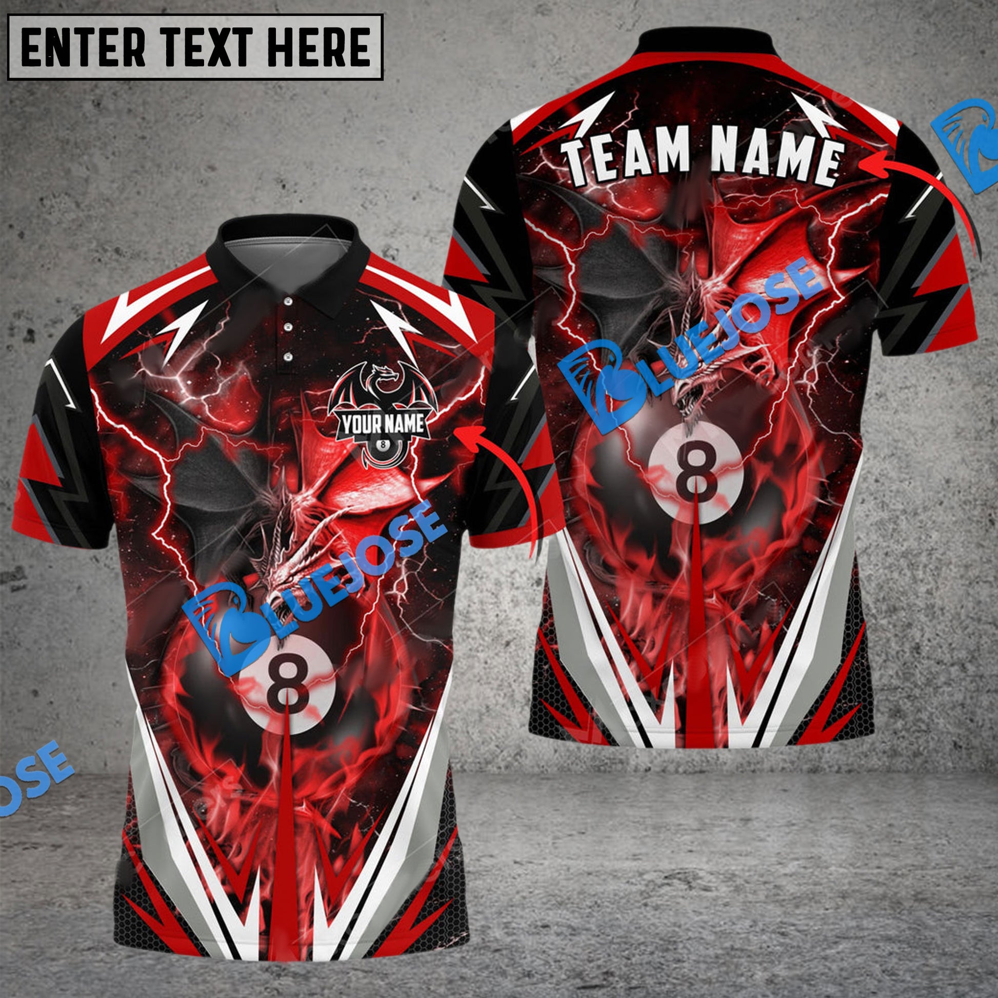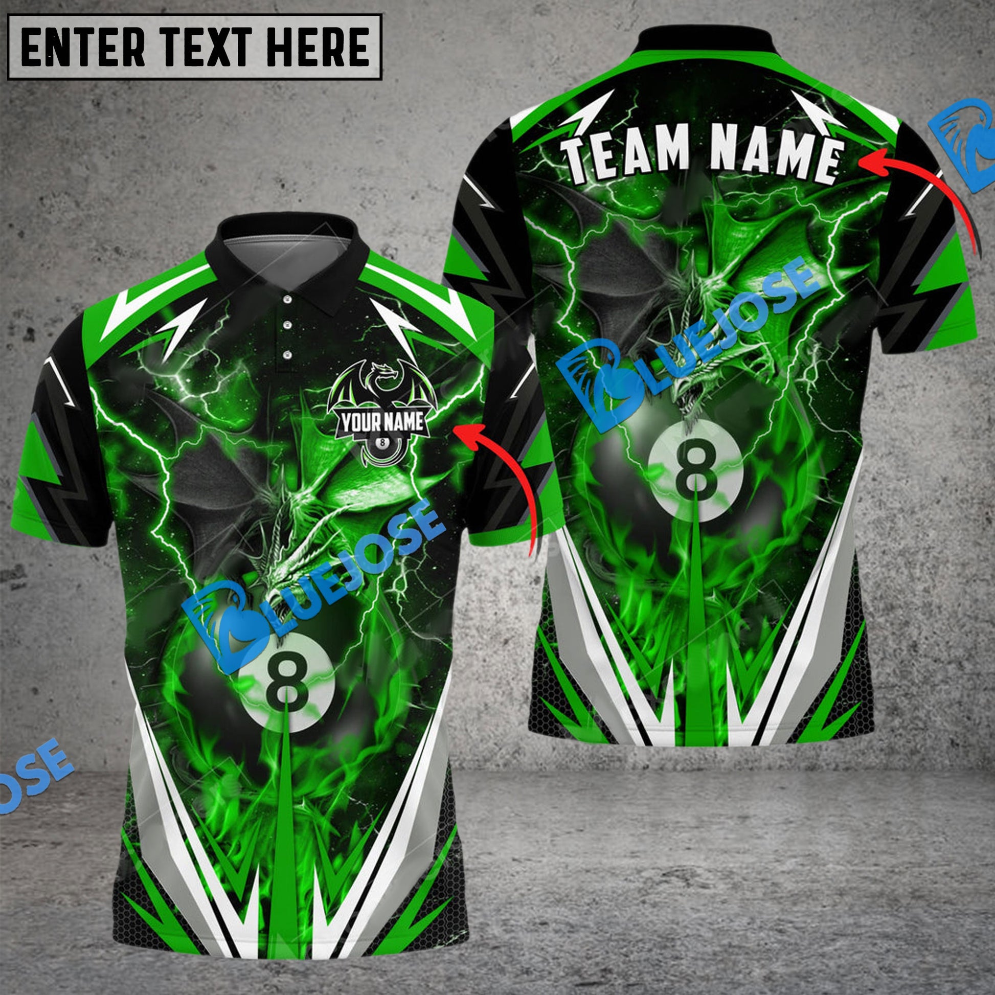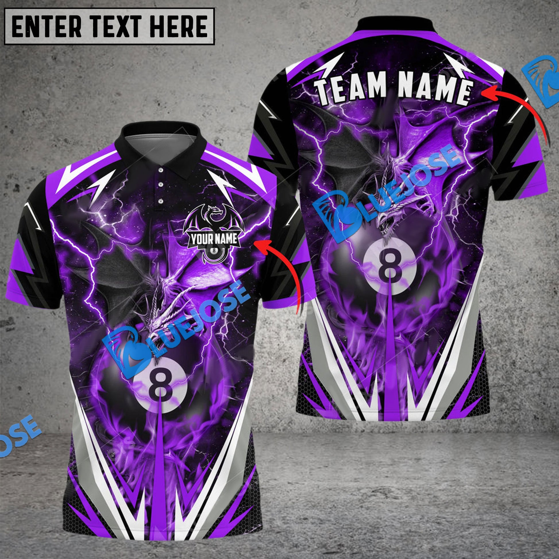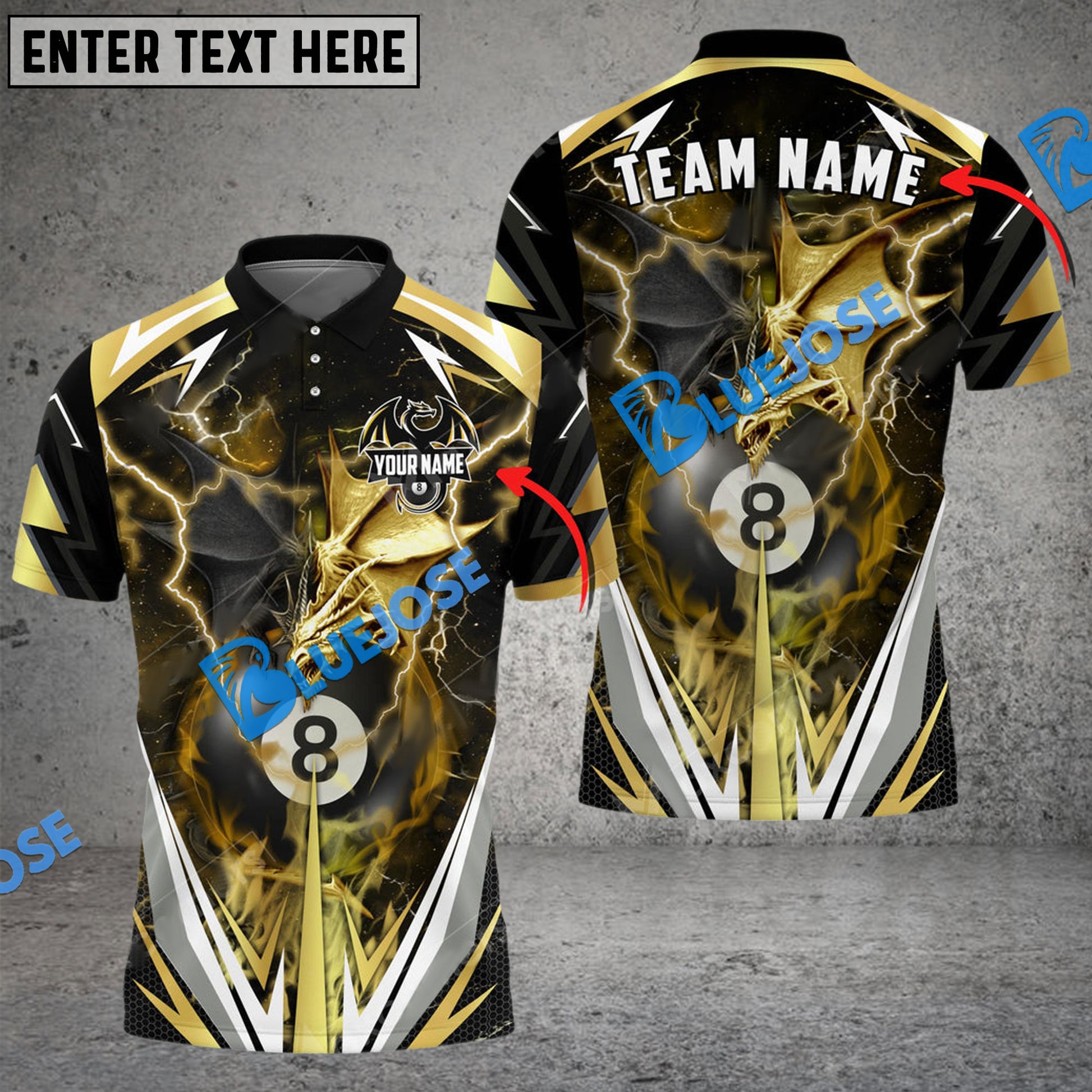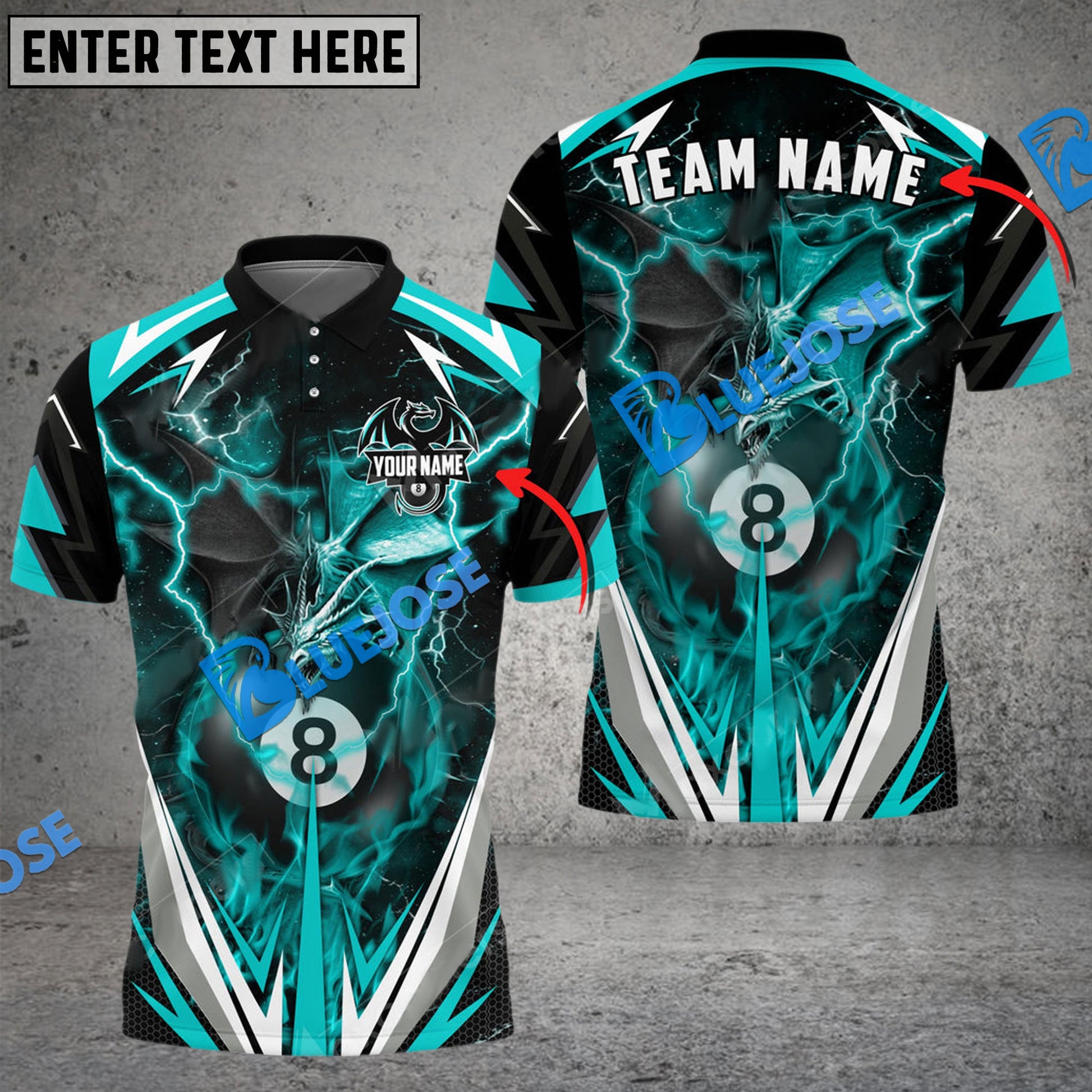 BlueJose Billiards Ball 8 Thunder Space Dragon Personalized Name, Team Name Unisex Shirt ( 6 Colors )