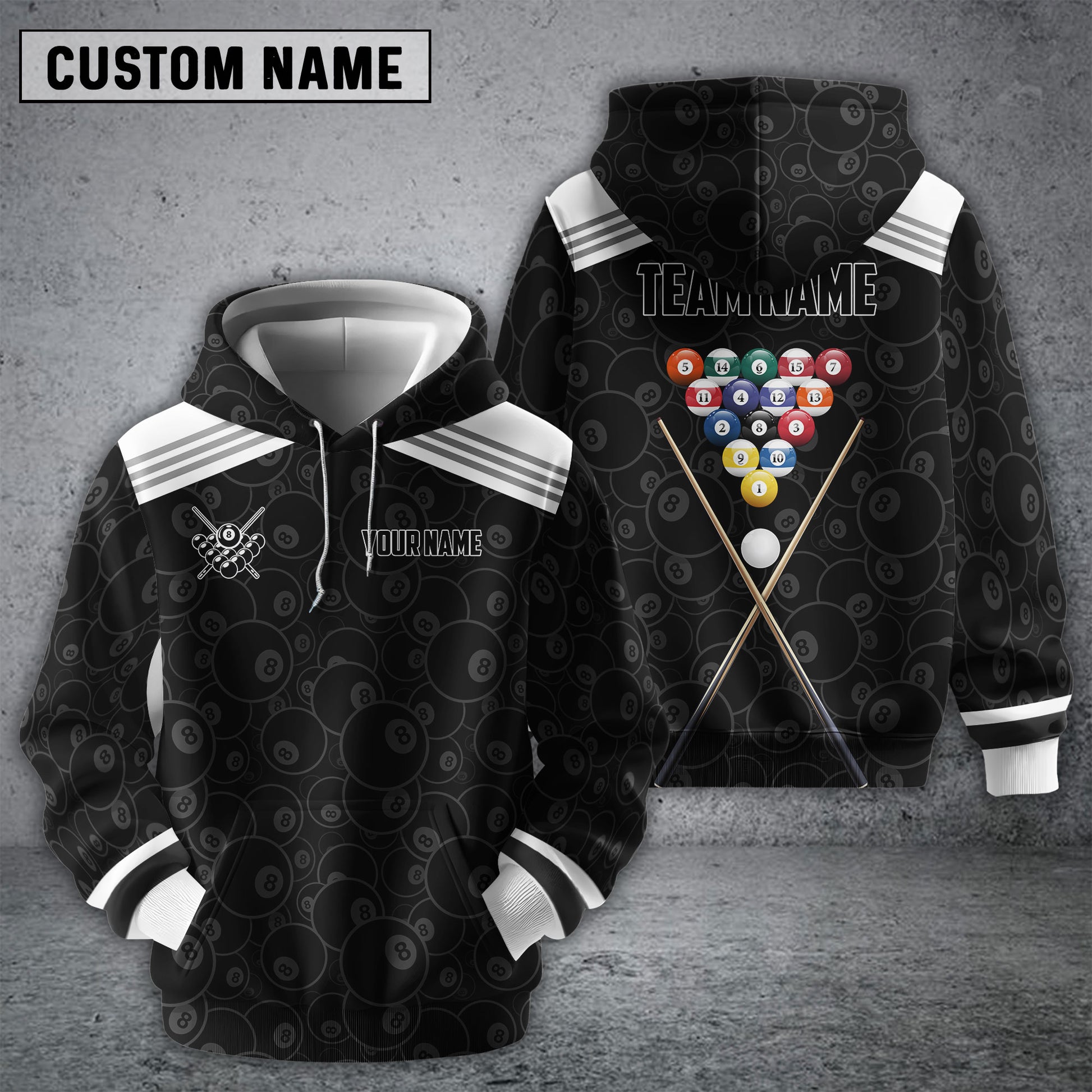 BlueJose Billiards Black & White Personalized Name Shirt