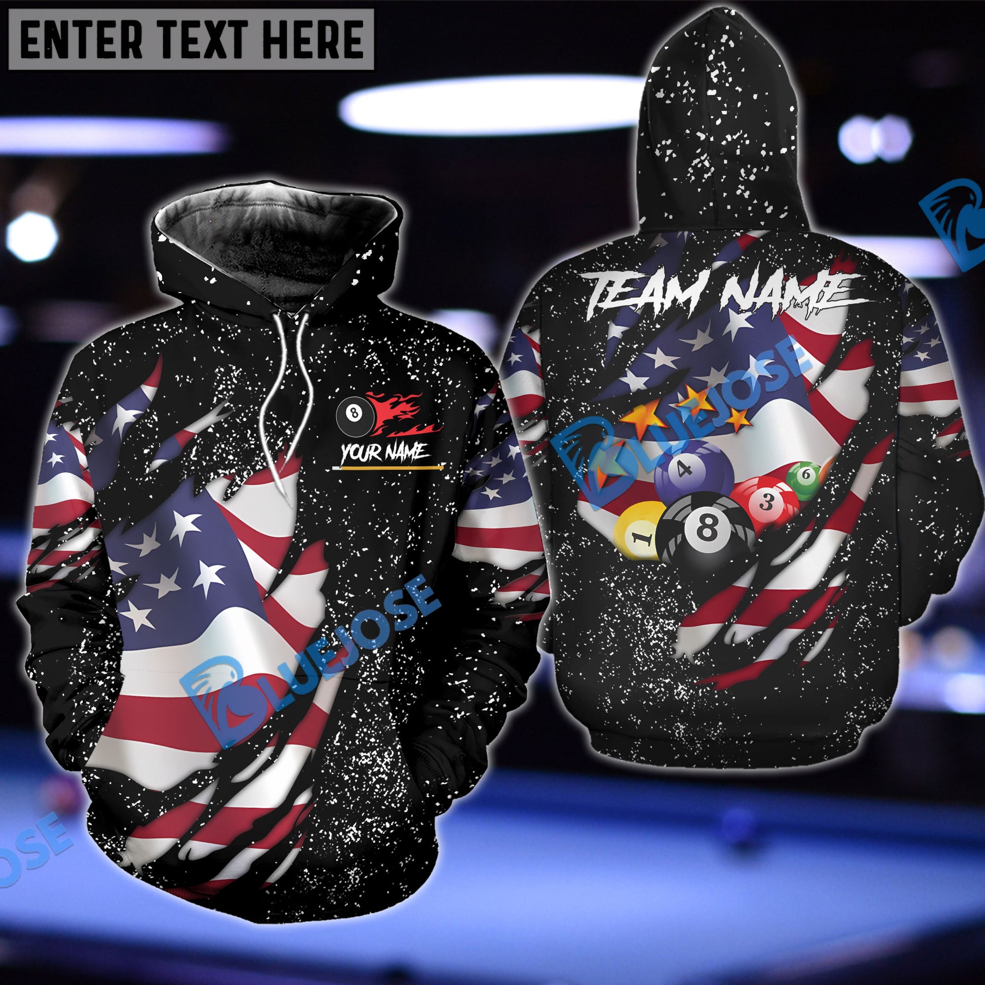 BlueJose Billiards Flag Black Personalized Name, Team Name 3D Shirt
