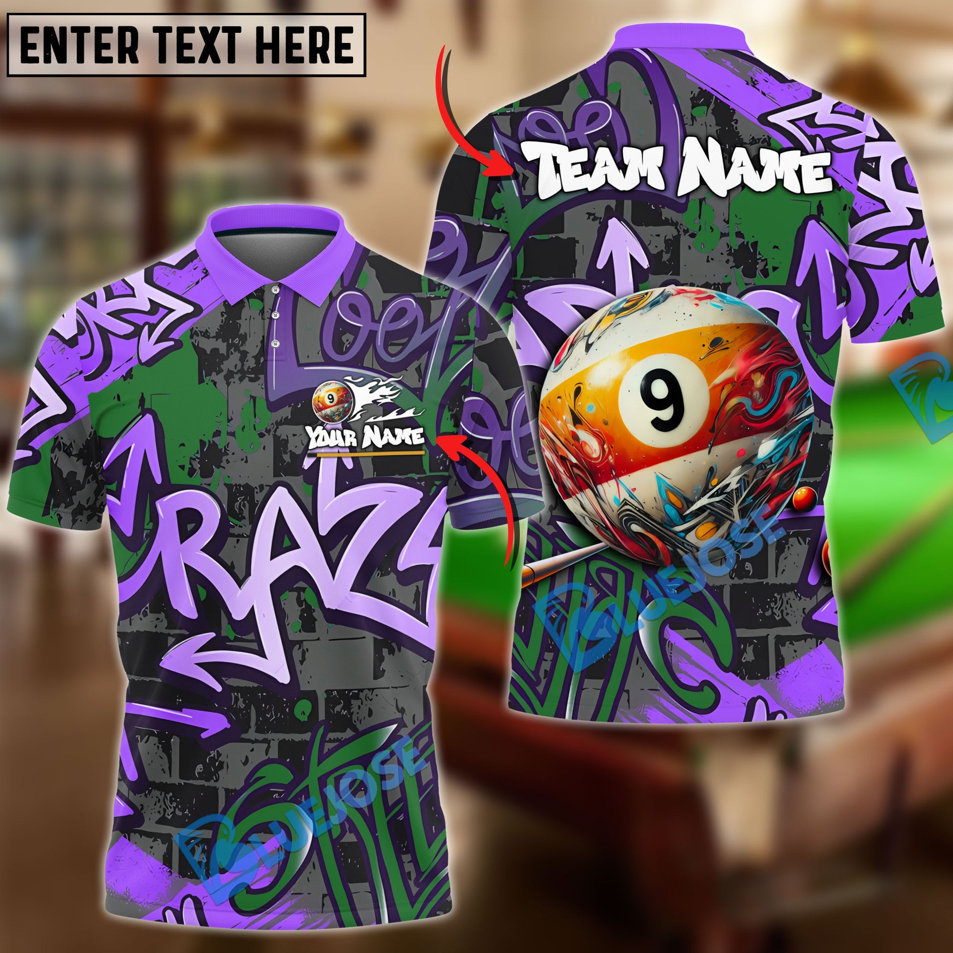 BlueJose Billiards Graffiti 9 Ball Personalized Shirt