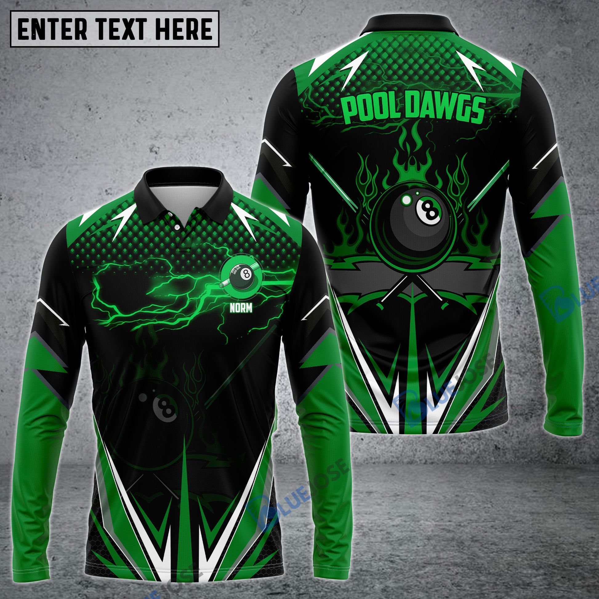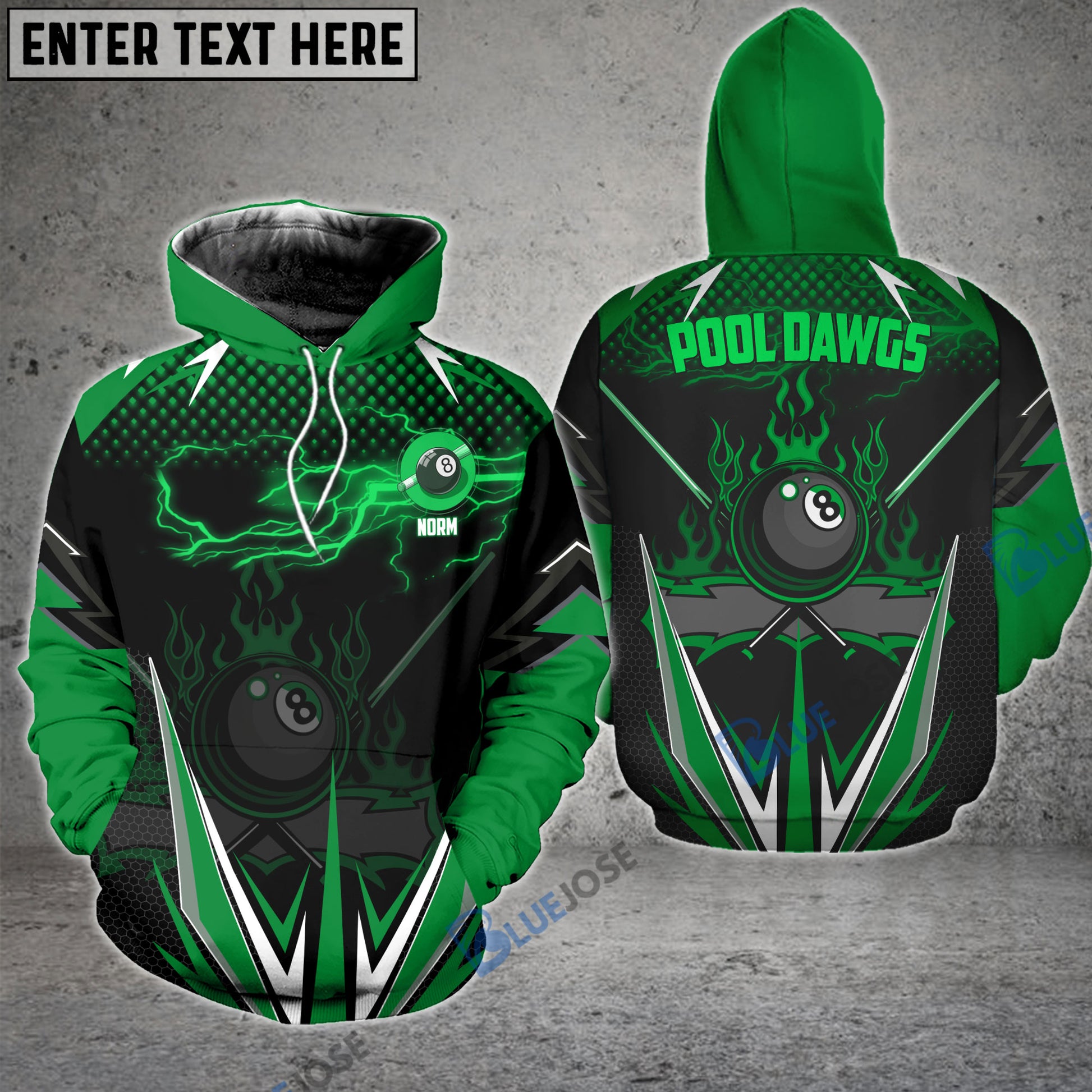 BlueJose Billiards Green Fire Personalized Name, Team Name Unisex Shirt
