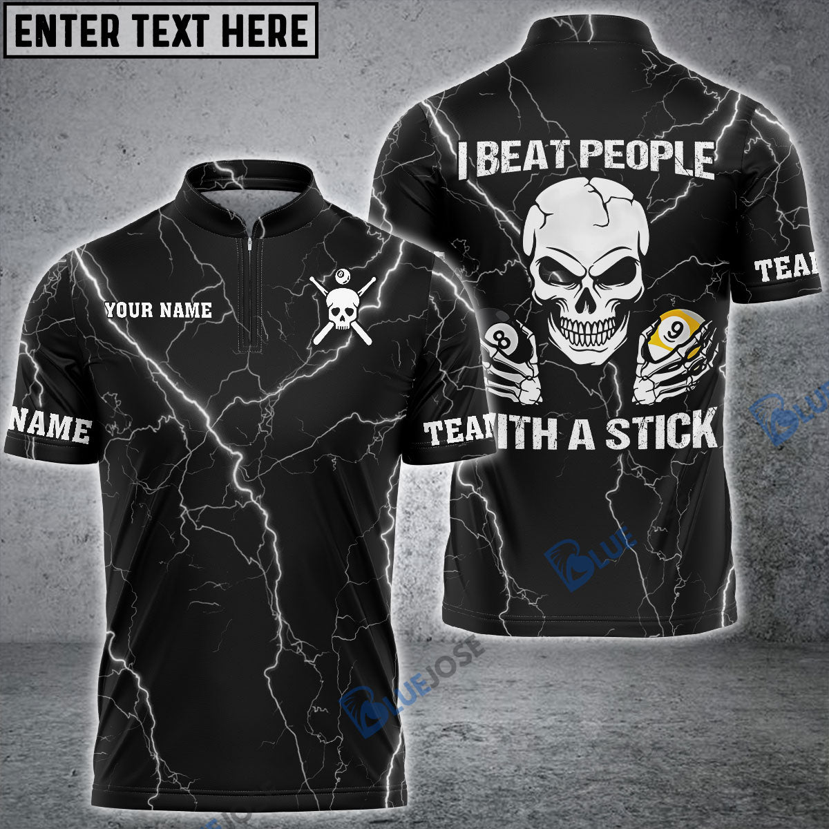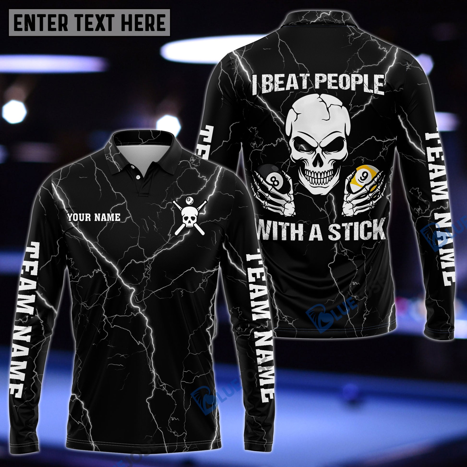 BlueJose Billiards I Beat People With A Stick Personalized Name, Team Name Unisex Shirt