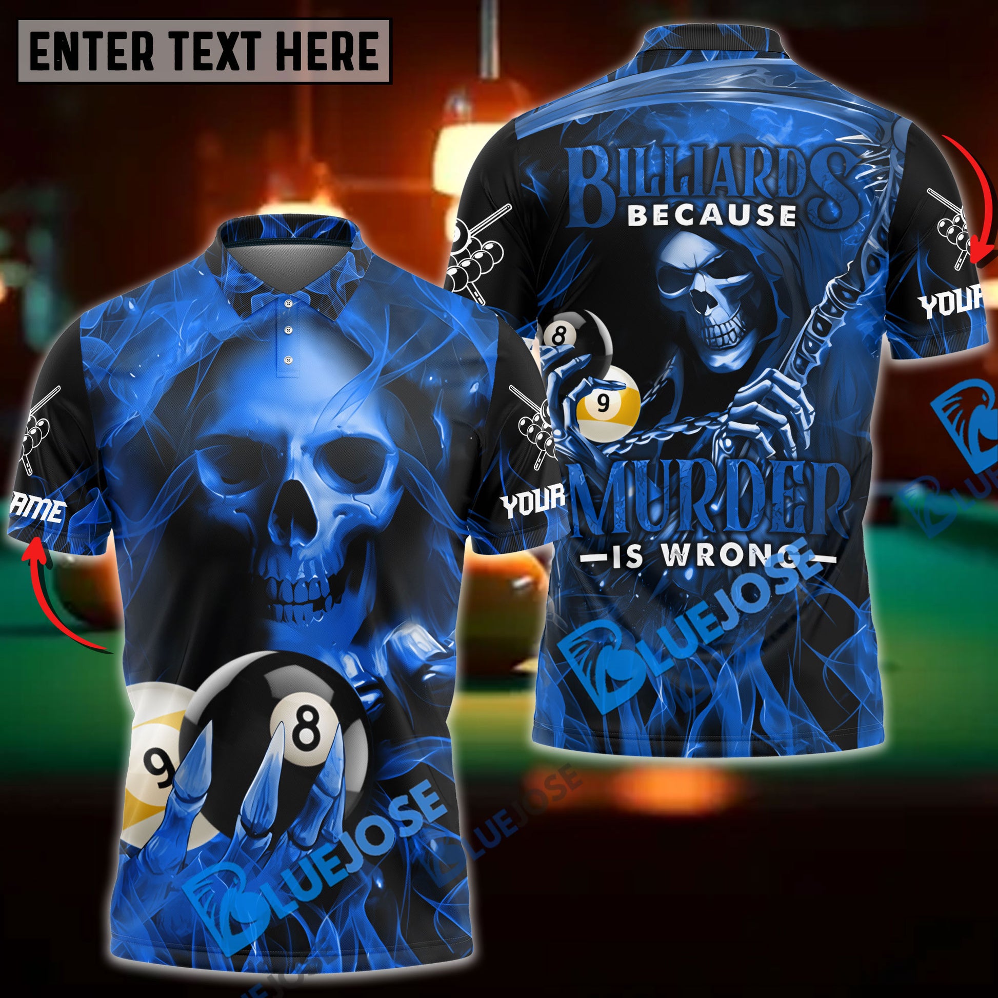 BlueJose Billiards Reaper Flame Personalized Name, Team Name Unisex Shirt ( 6 Colors )