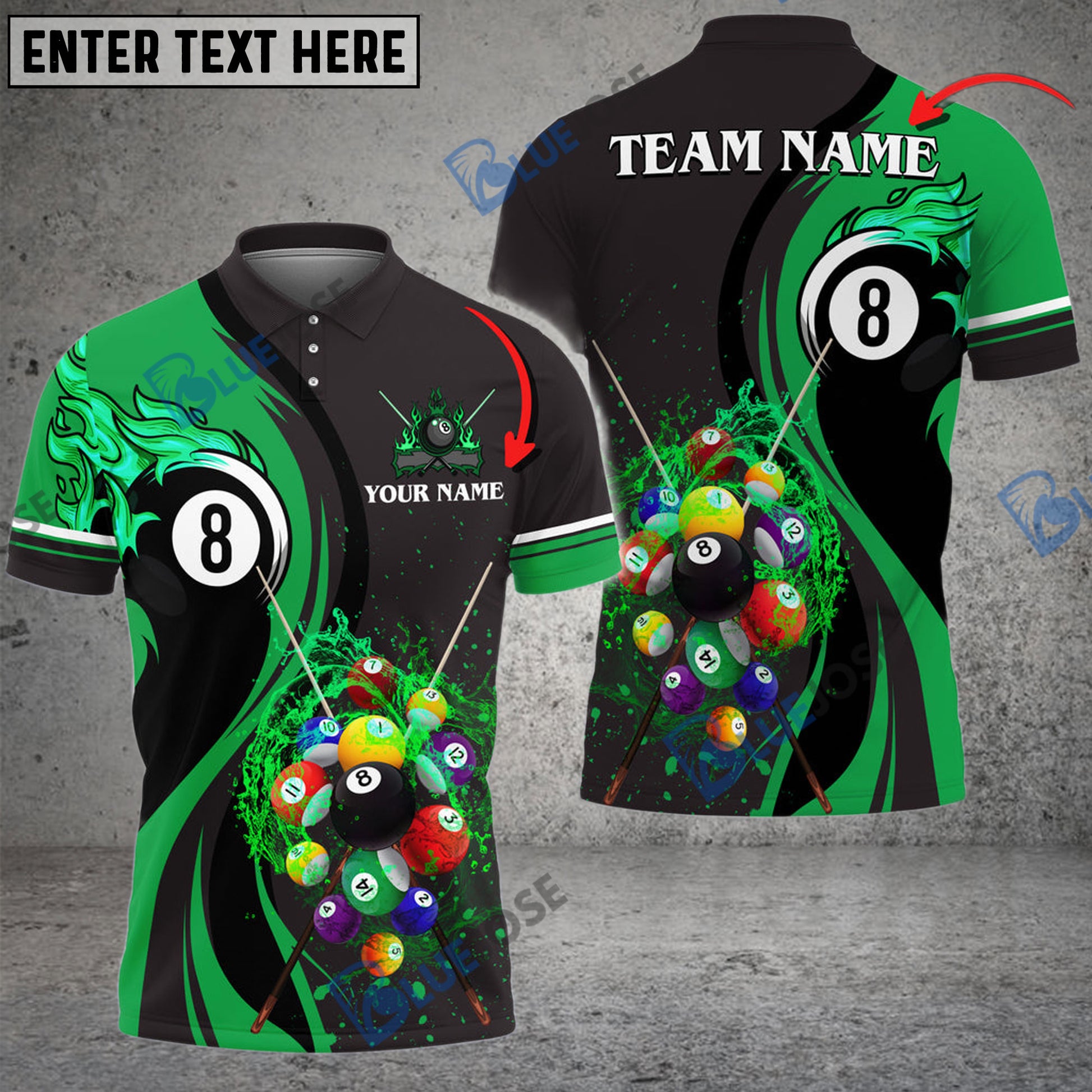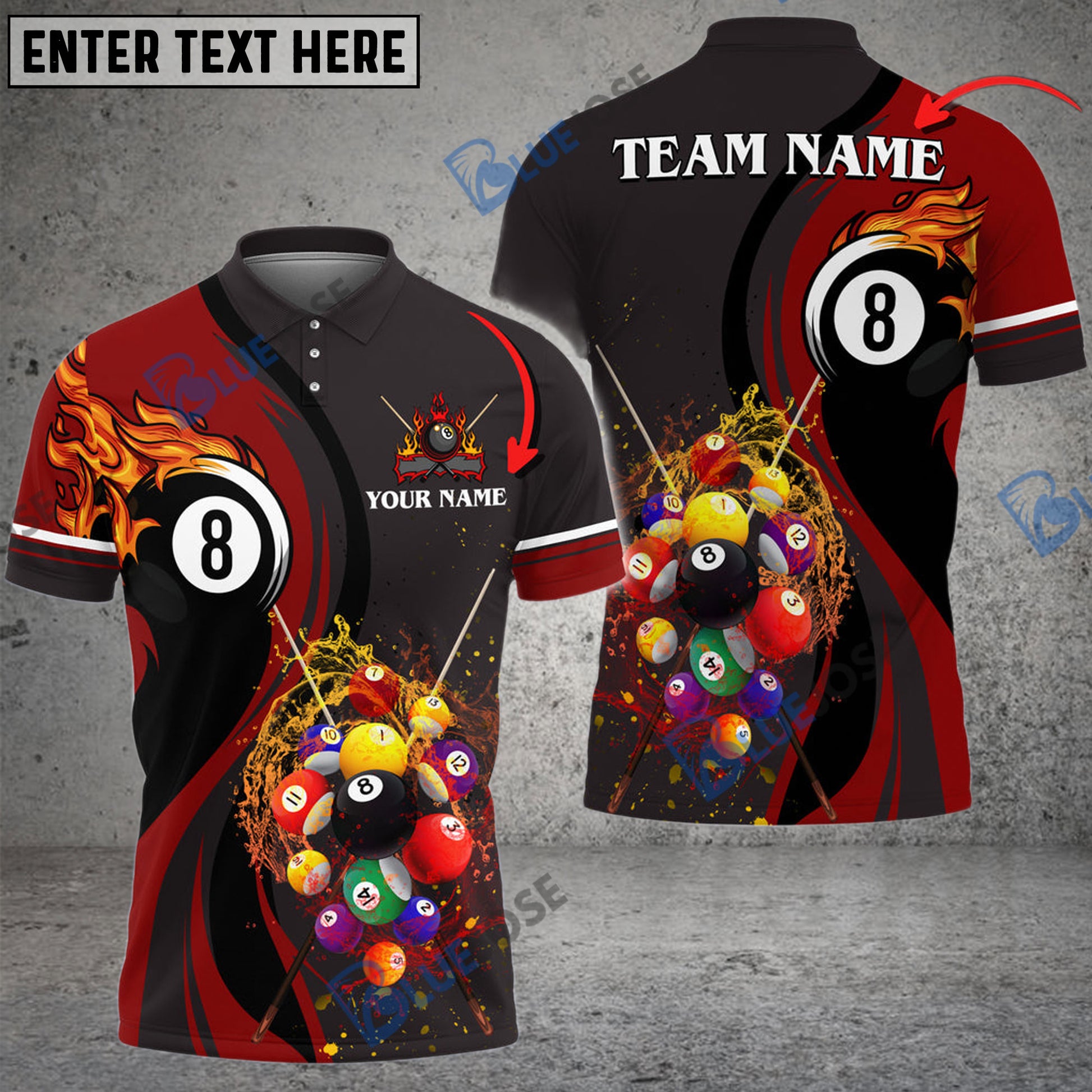 BlueJose BilliardsBall 8 Water Flow Personalized Name, Team Name Unisex Shirt ( 4 Colors )