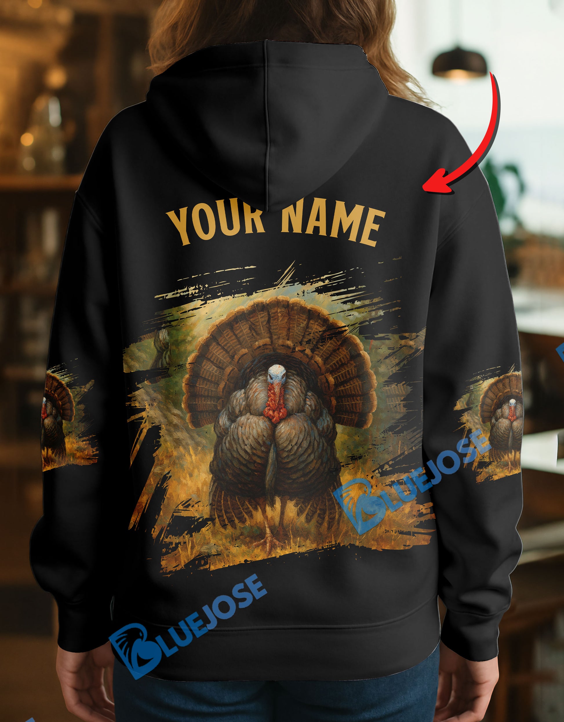 BlueJose Black Turkey Hunter Personalized Name Hoodie For Hunting Lover