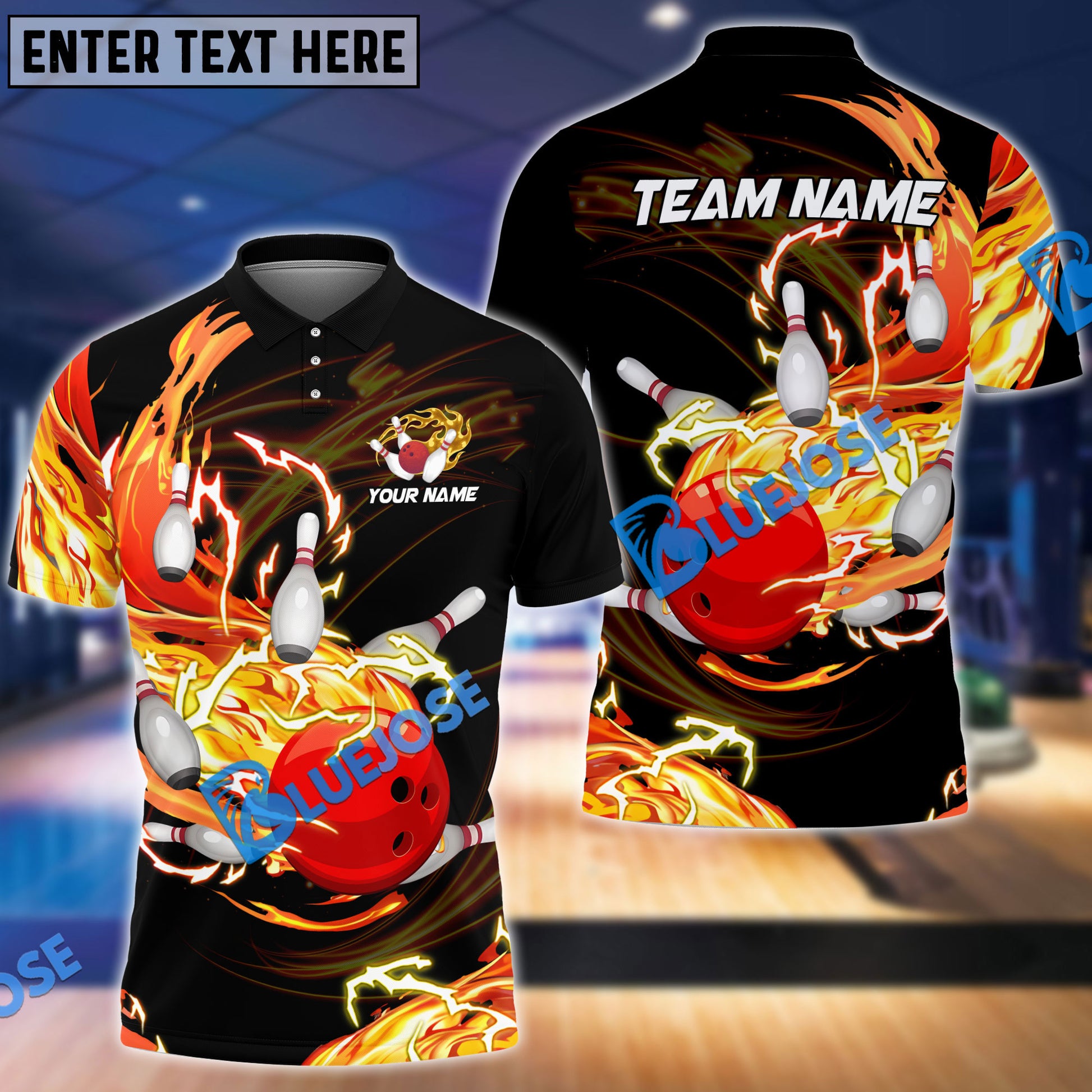 BlueJose Bowling And Pins Breath Of Thunder Flame Customized Name 3D Shirt (4 Colors)