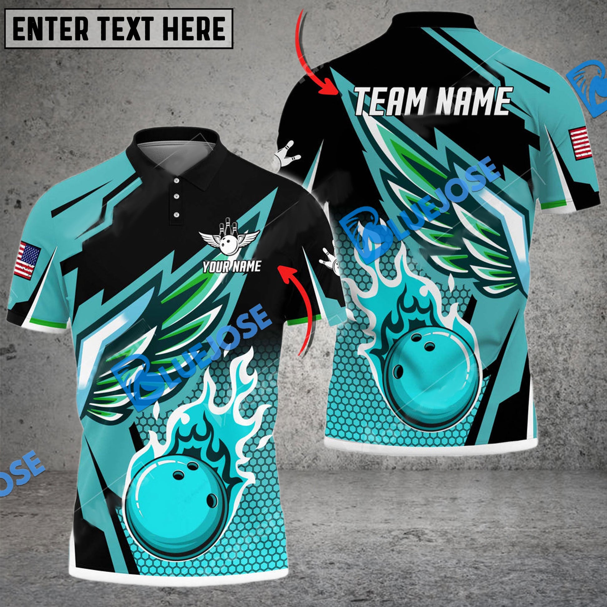 BlueJose Bowling And Pins Cool Wings Pattern Customized Name 3D Shirt (4 Colors)