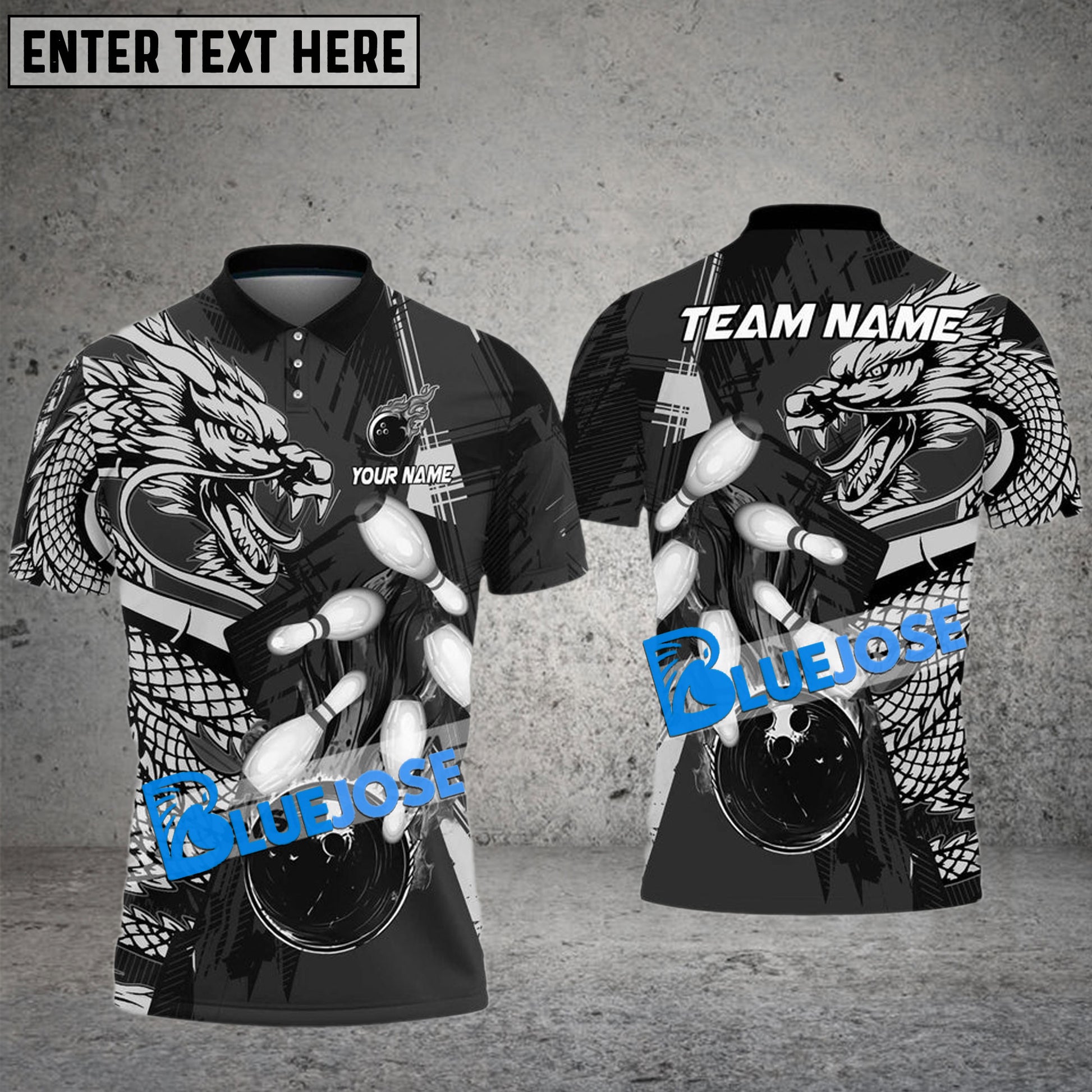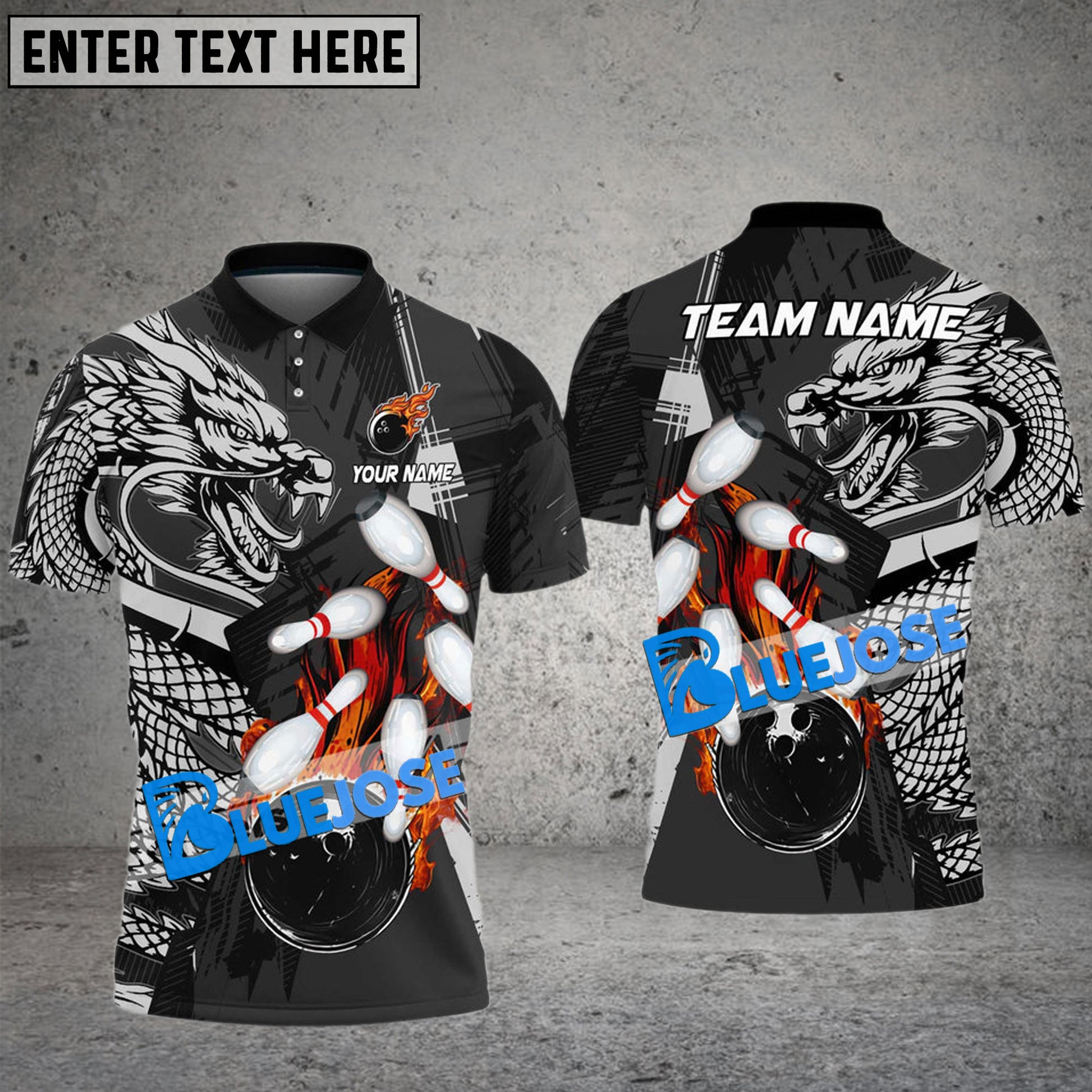 BlueJose Bowling And Pins Dragon Flame Fire Customized Name 3D Shirt (4 Colors)