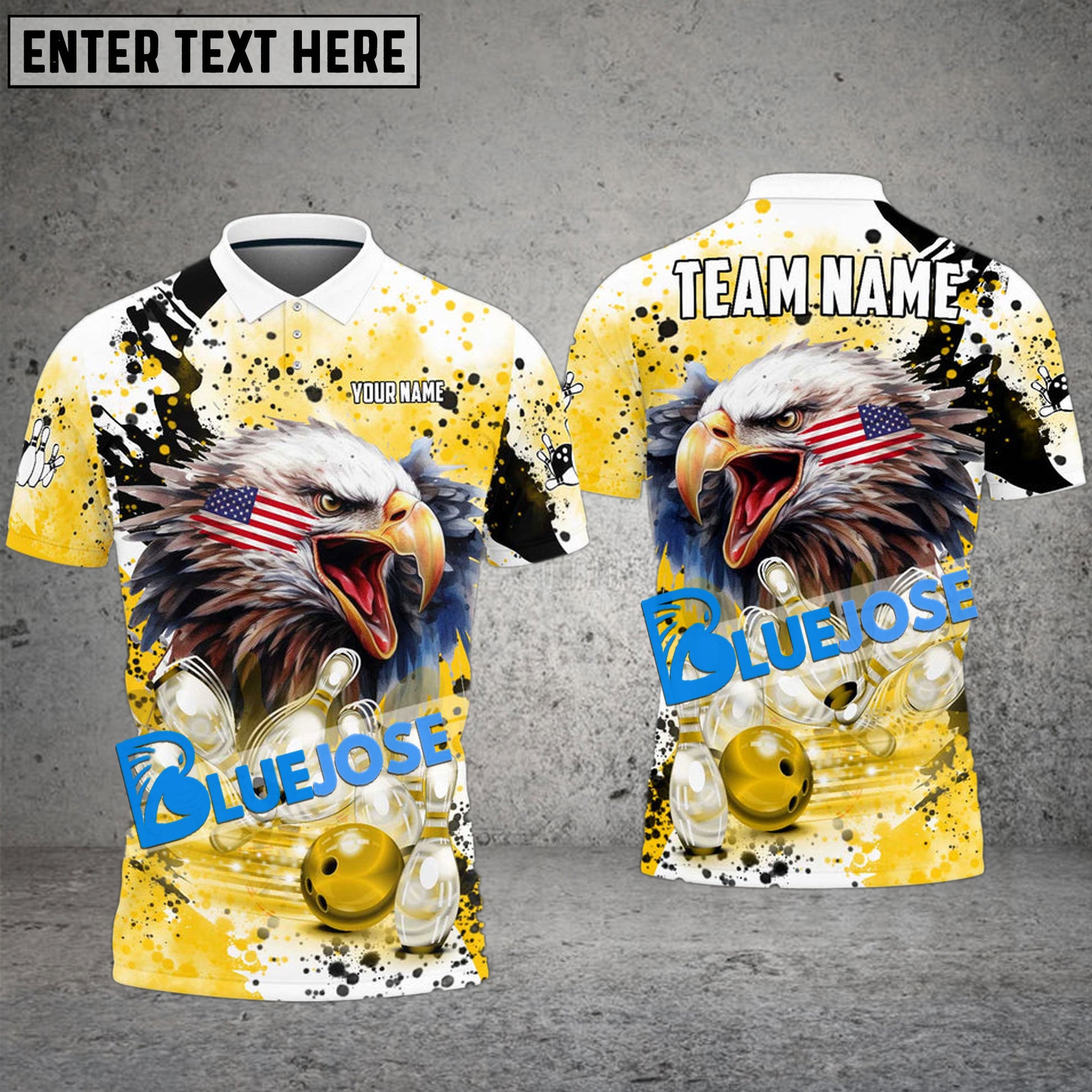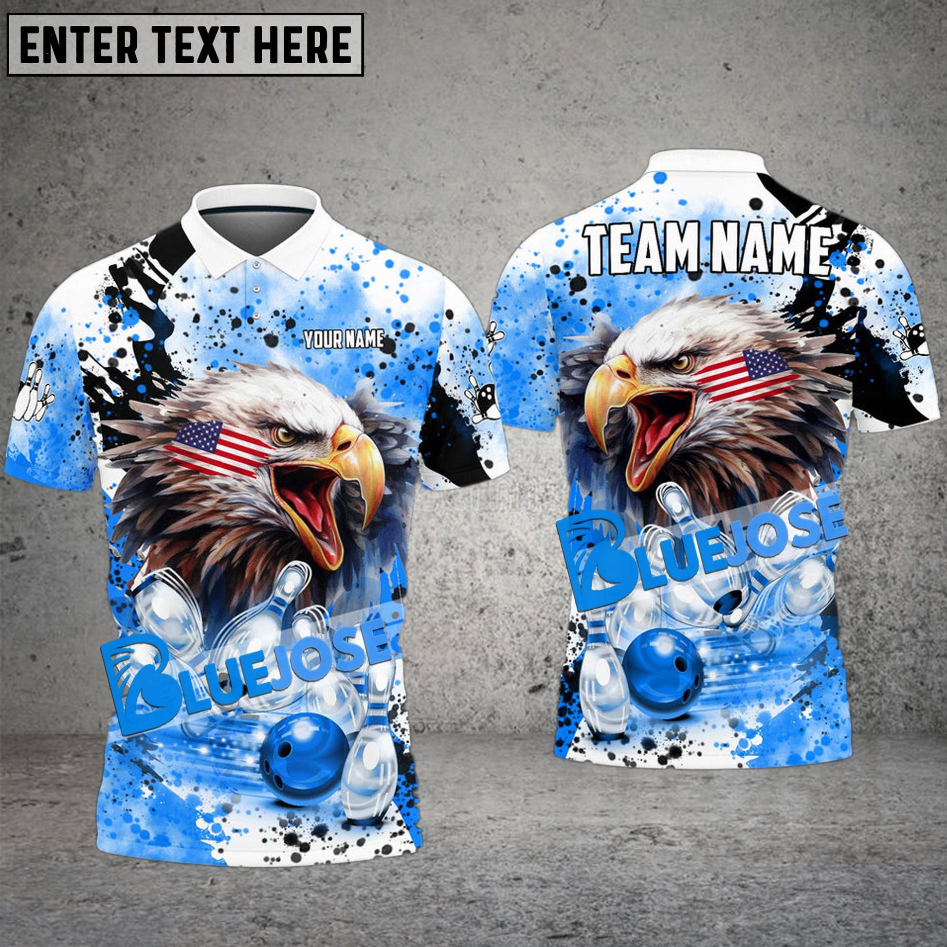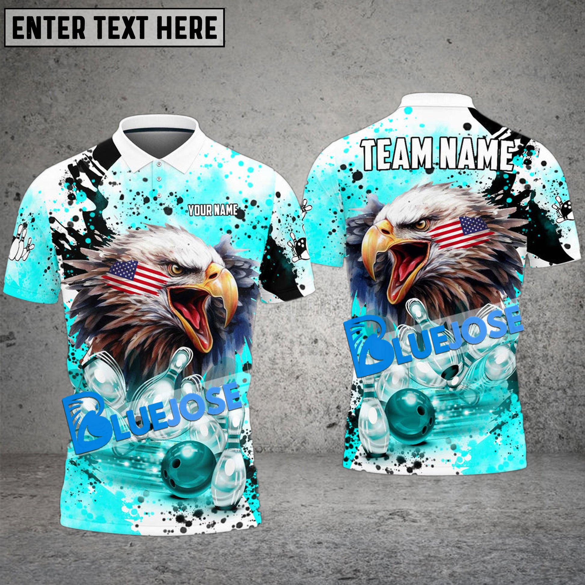 BlueJose Bowling And Pins Eagle American Flag Paint Pattern Customized Name 3D Shirt (4 Colors)