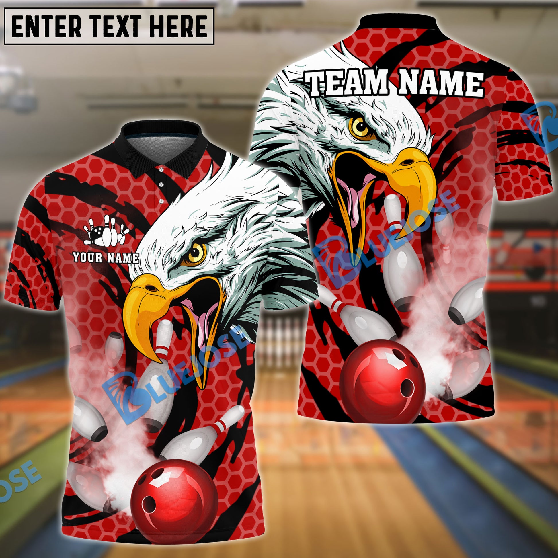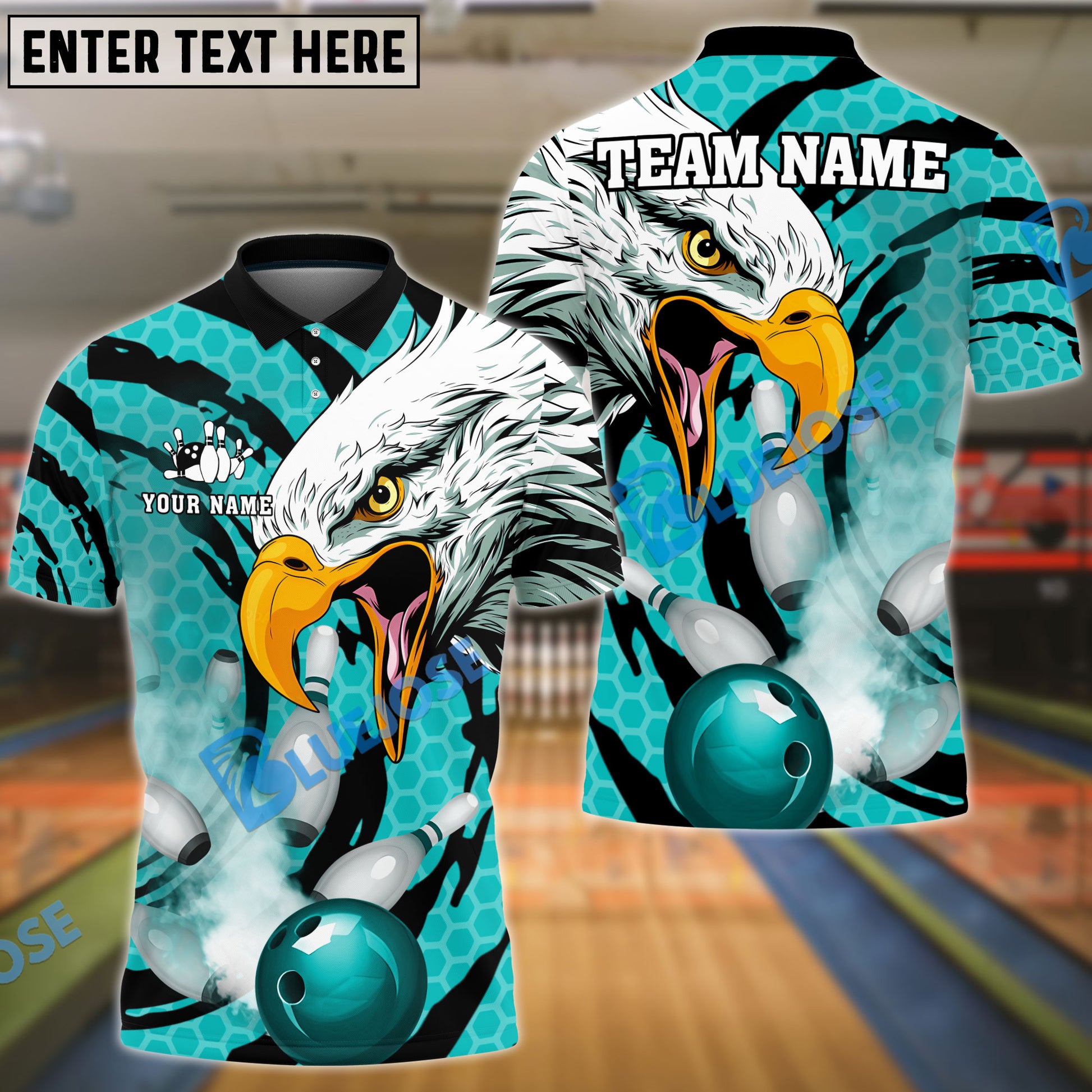 BlueJose Bowling And Pins Eagle Smoke Customized Name 3D Shirt (4 Colors)
