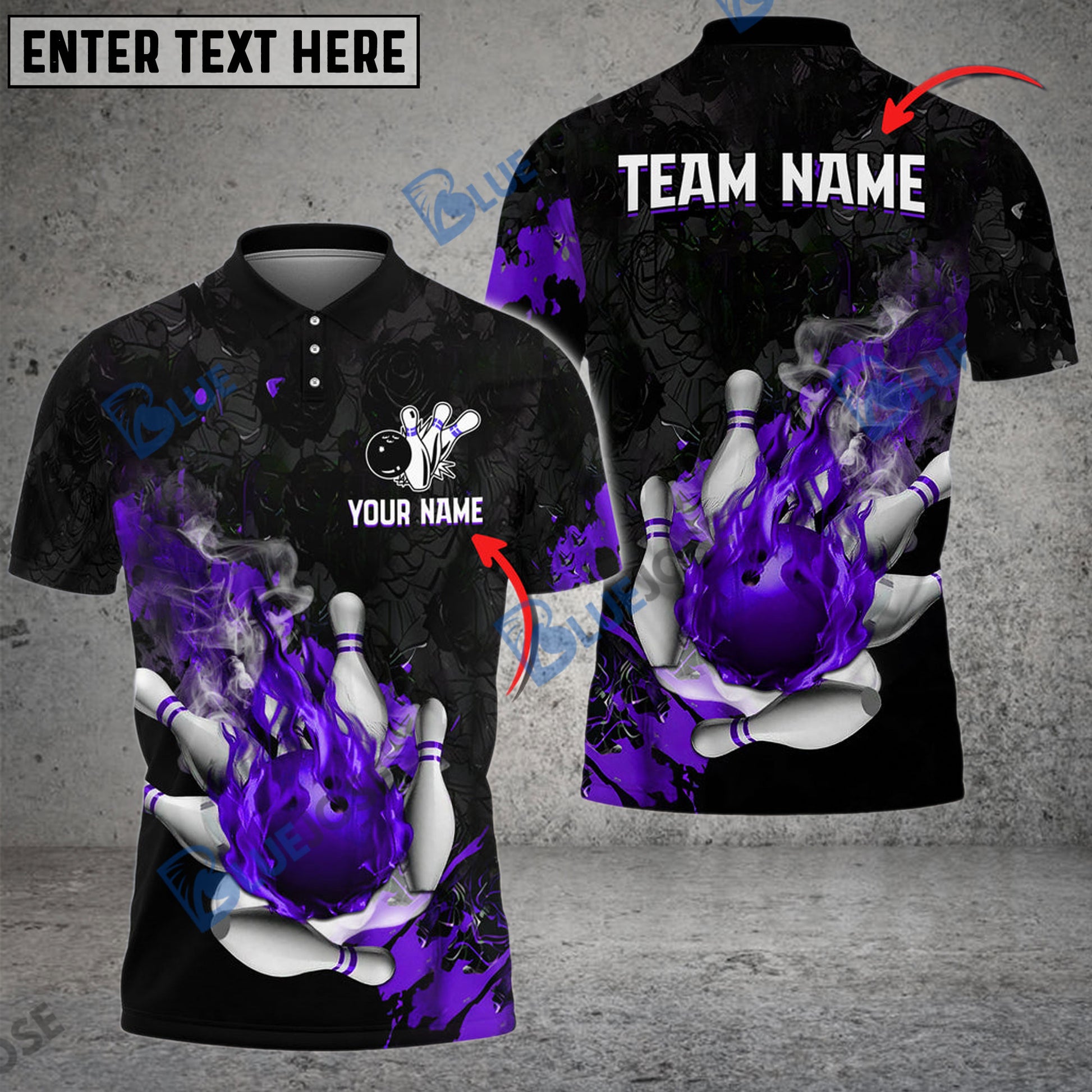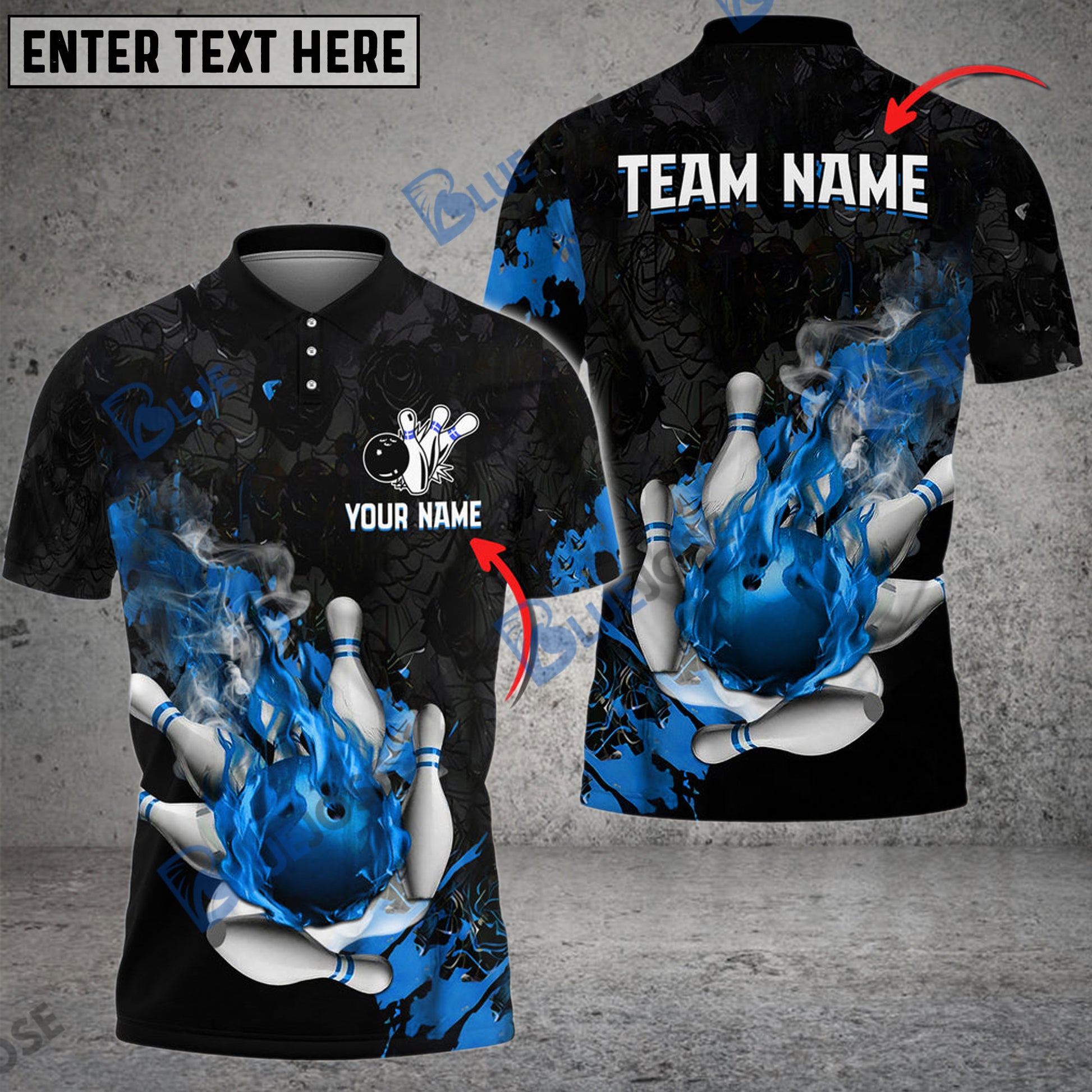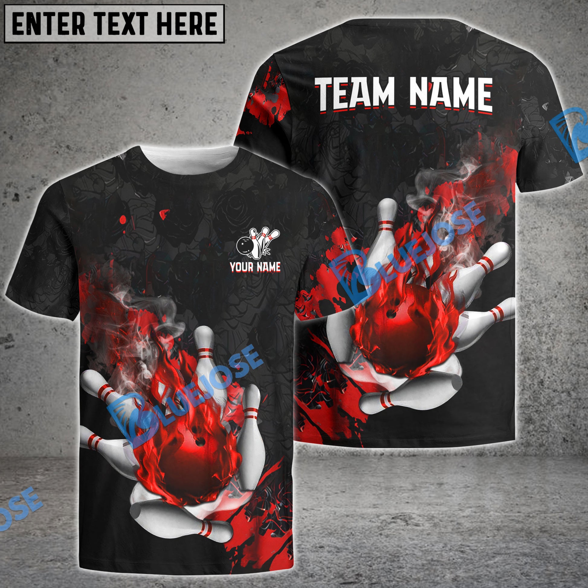 BlueJose Bowling And Pins Fire And Blood Customized Name 3D Shirt (4 Colors)