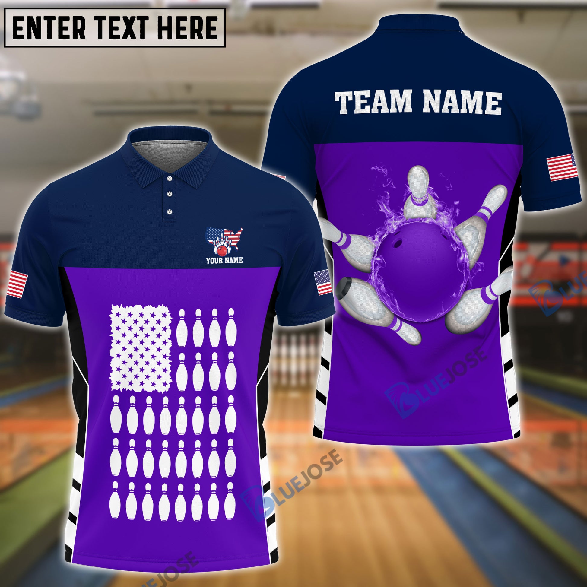 BlueJose Bowling And Pins Flag Pins Pattern Customized Name 3D Shirt (5 Colors)