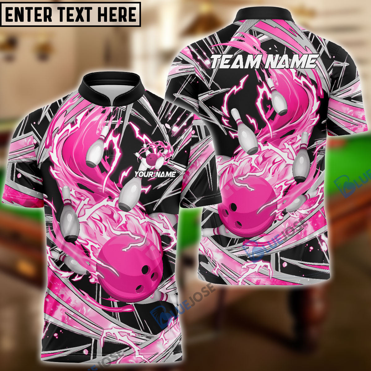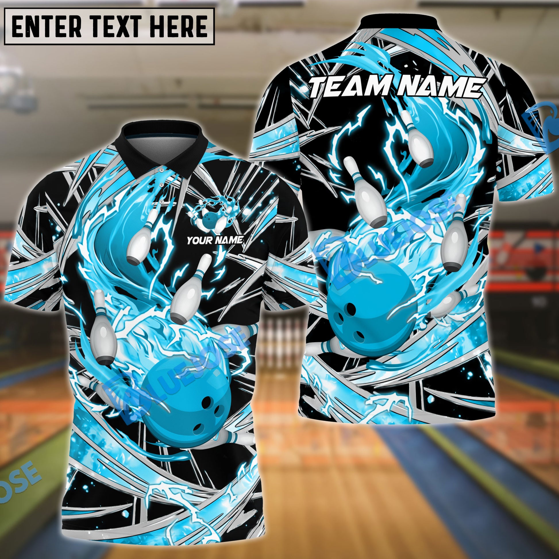 BlueJose Bowling And Pins Flame Thunder Wind AuraCustomized Name 3D Shirt (4 Colors)