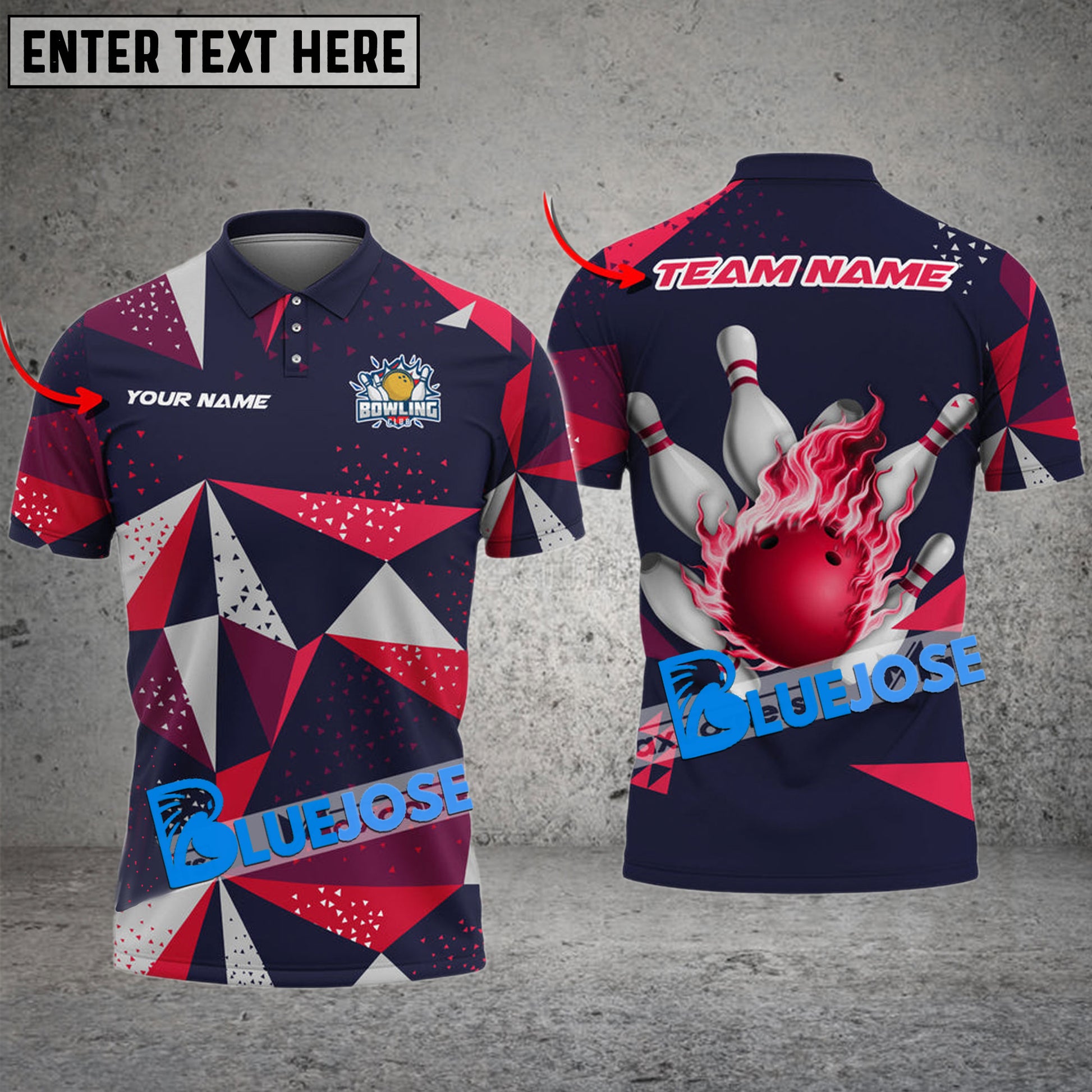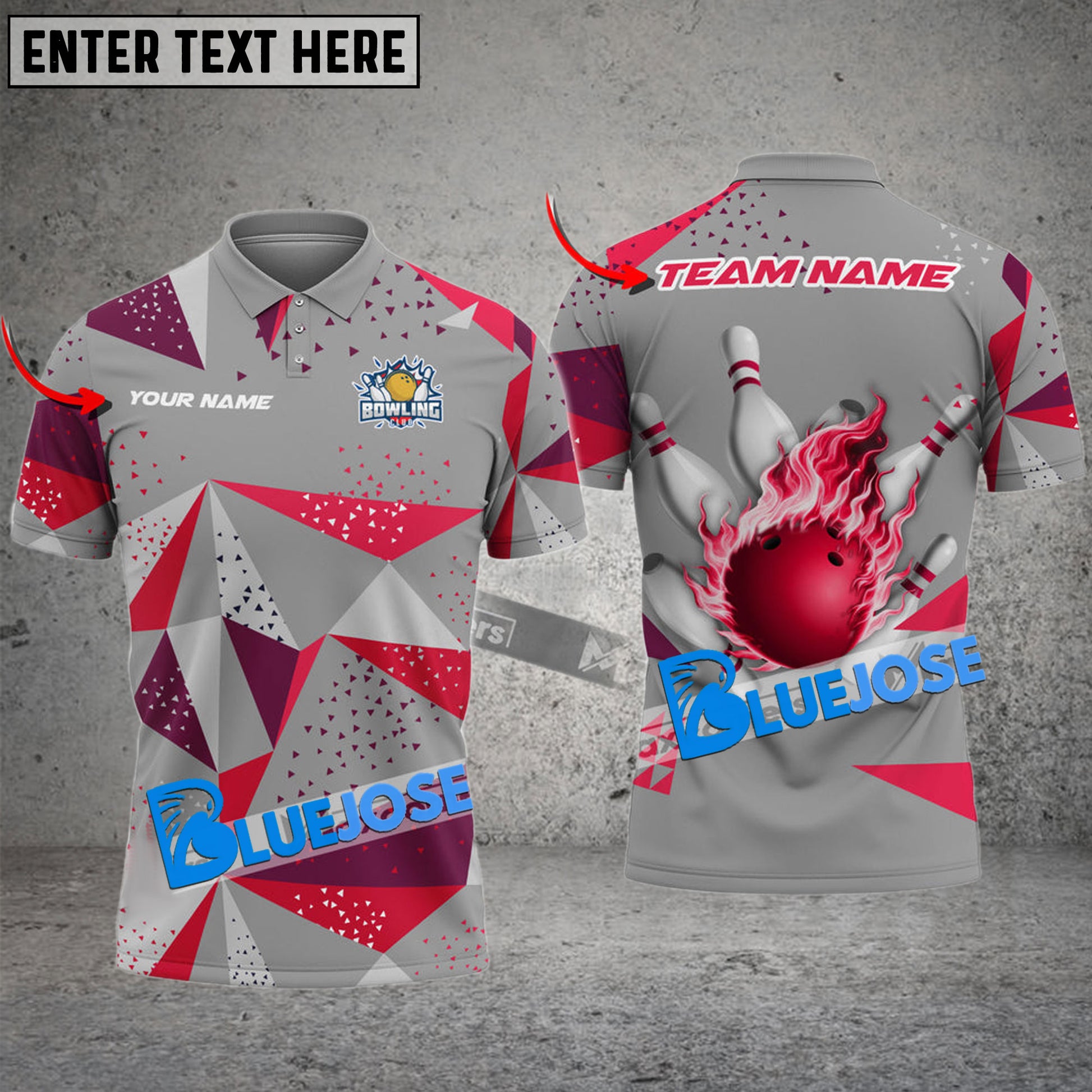 BlueJose Bowling And Pins Flame Tournament Customized Name 3D Shirt (4 Colors)