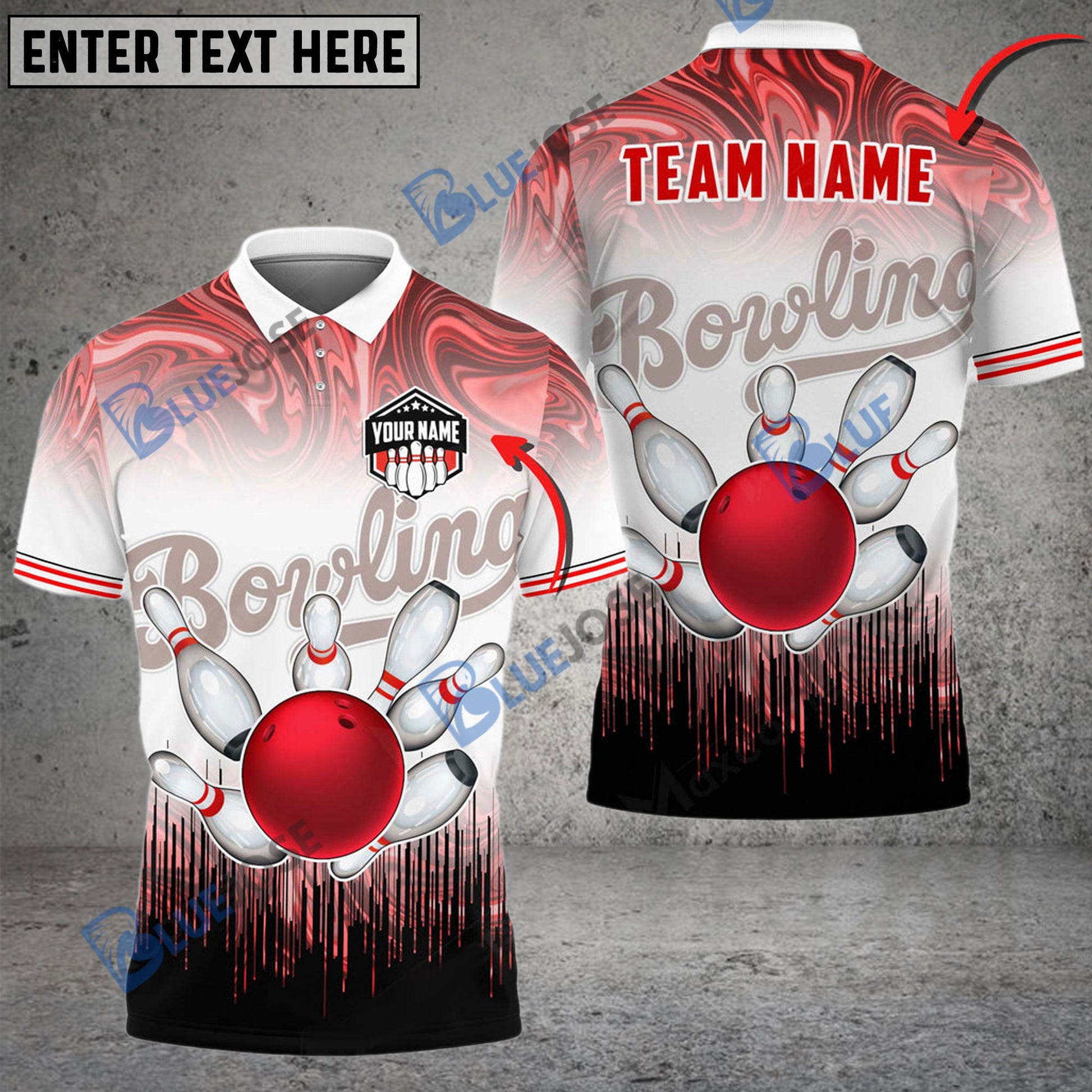 BlueJose Bowling And Pins Hologram Waves Customized Name 3D Shirt (4 Colors)