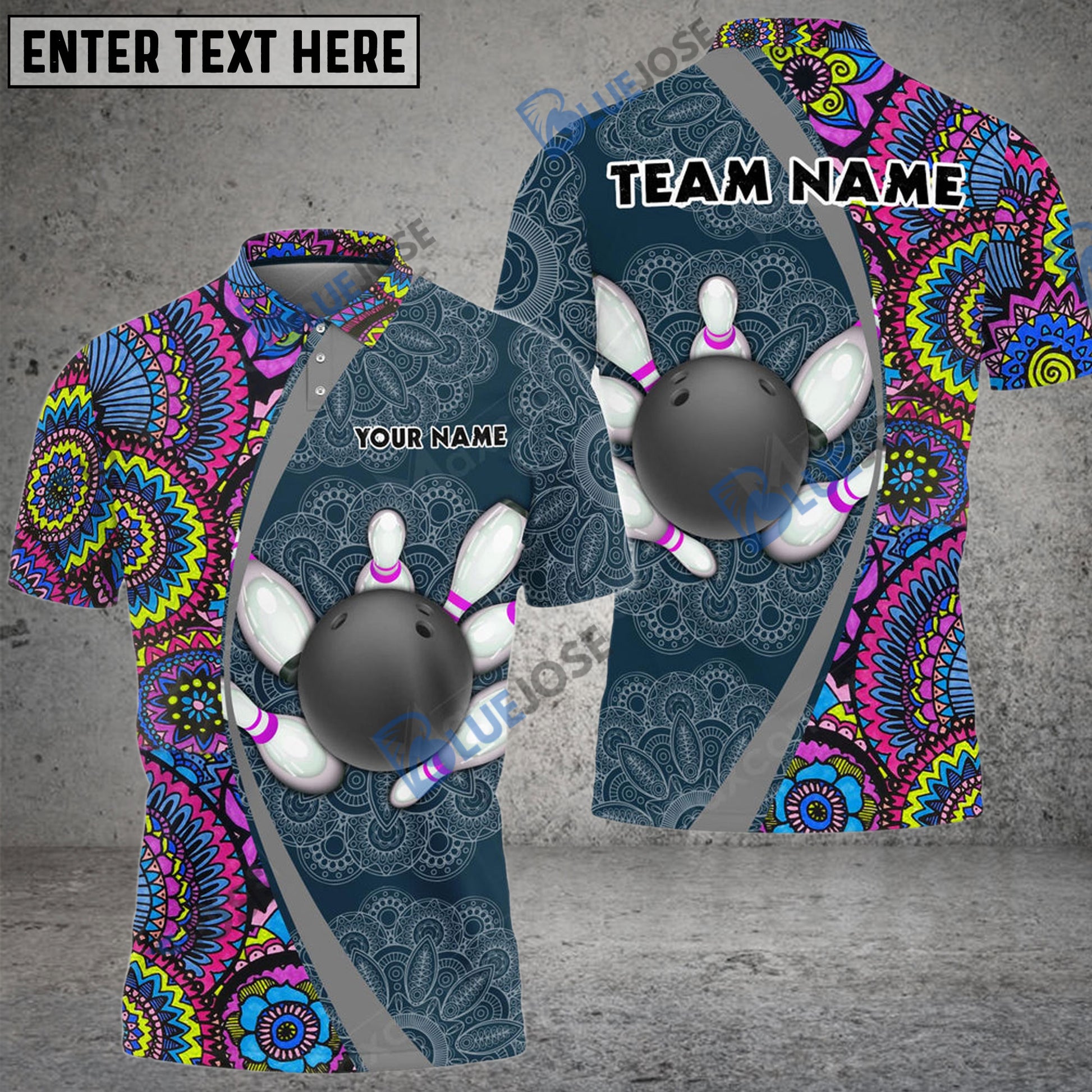 BlueJose Bowling And Pins Mandala Customized Name 3D Shirt (4 Colors)