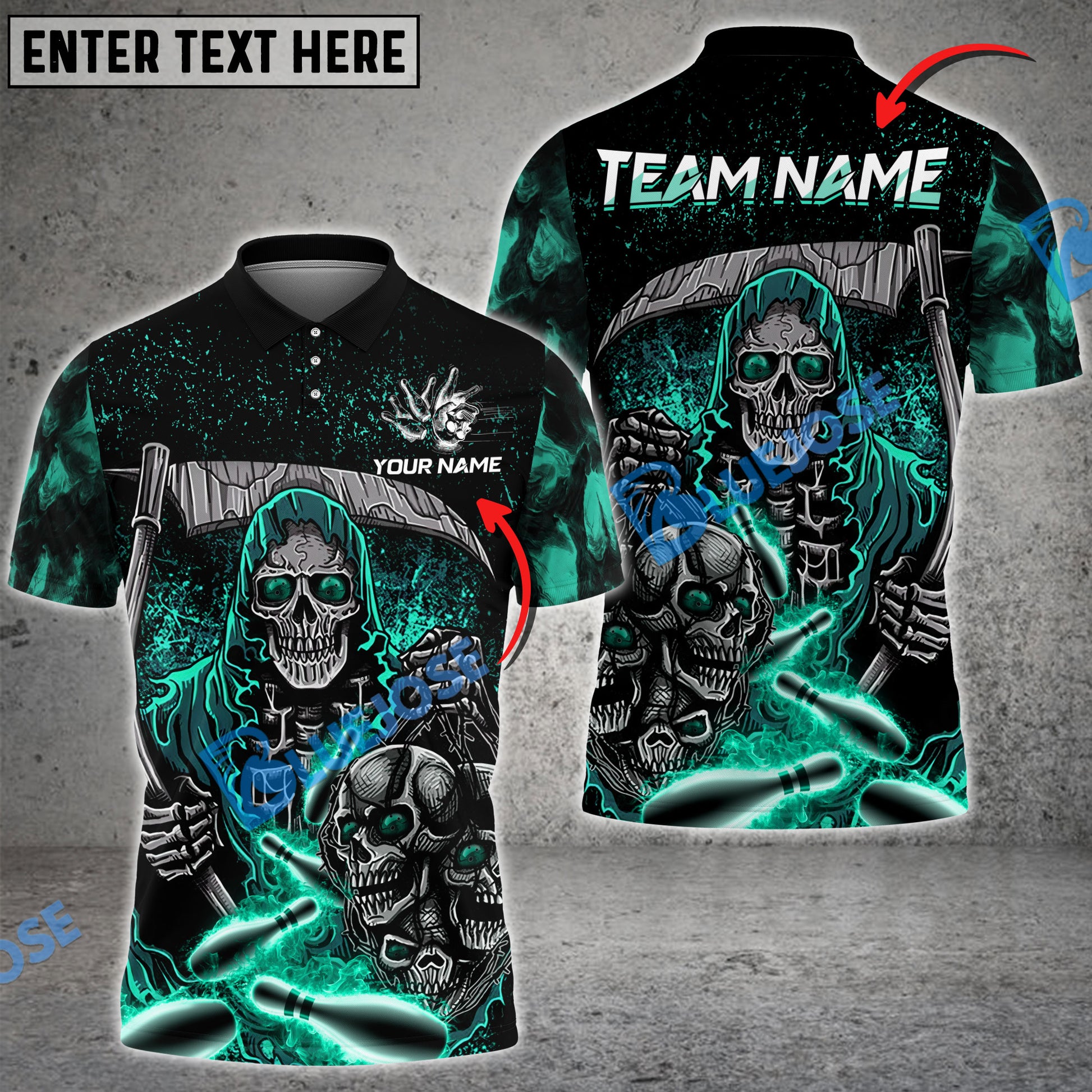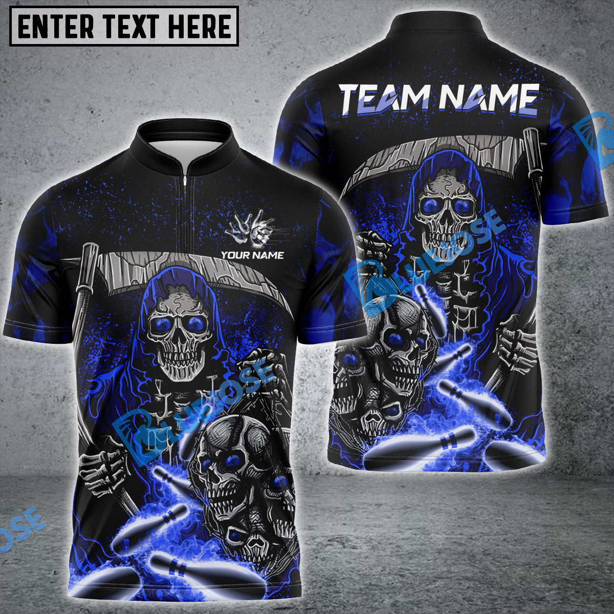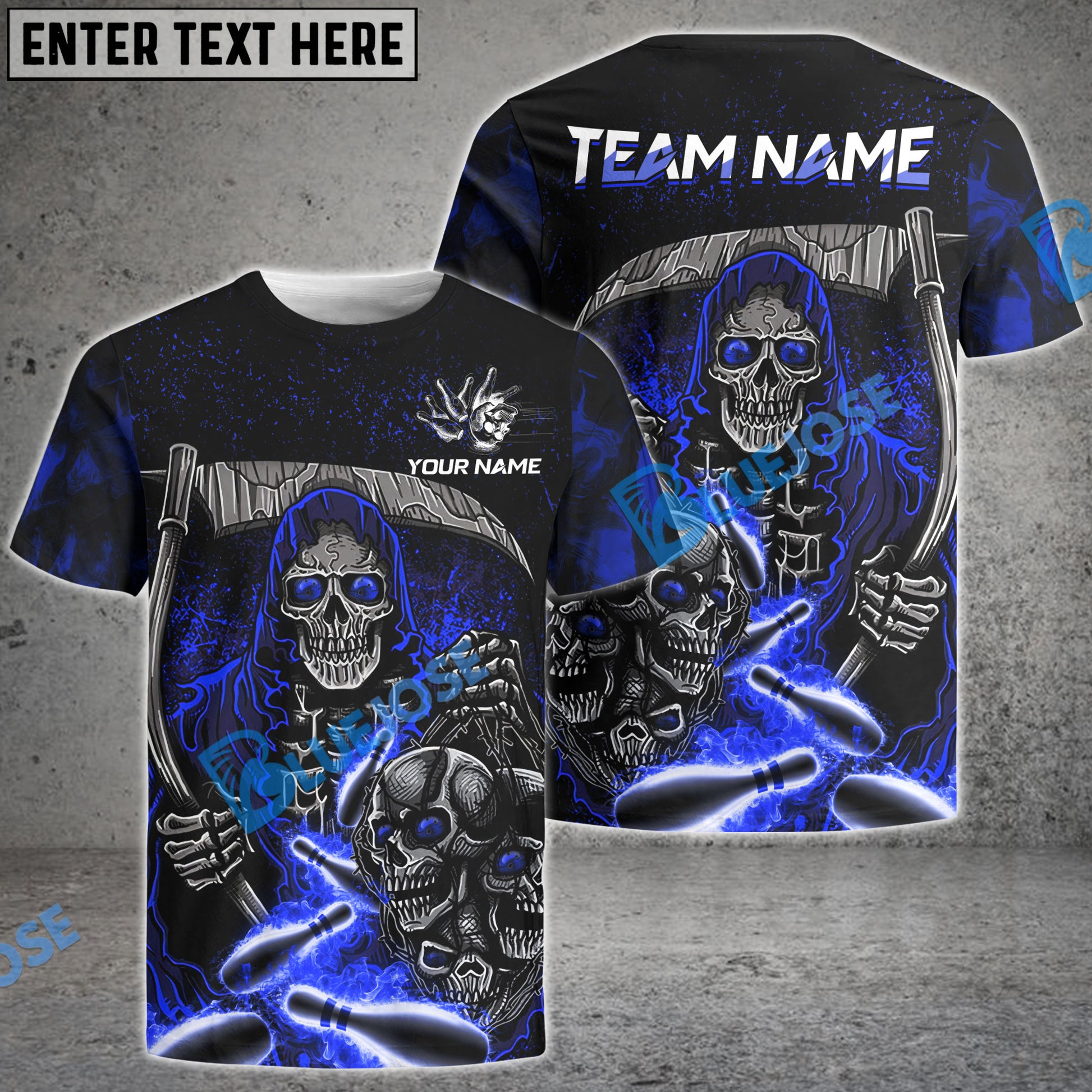 BlueJose Bowling And Pins Reaper Flame Customized Name 3D Shirt (4 Colors)