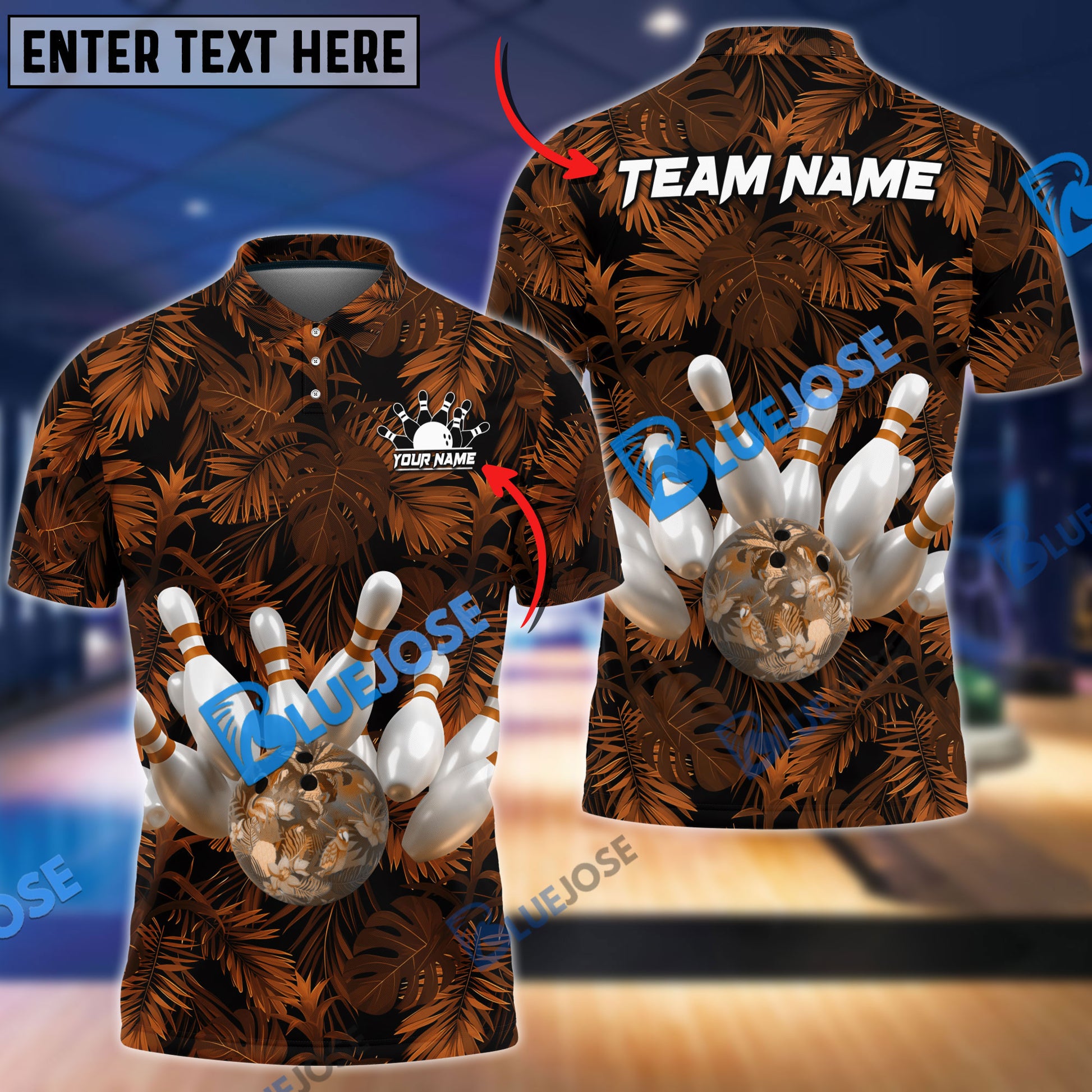 BlueJose Bowling And Pins Tropical Pattern Customized Name 3D Shirt (4 Colors)
