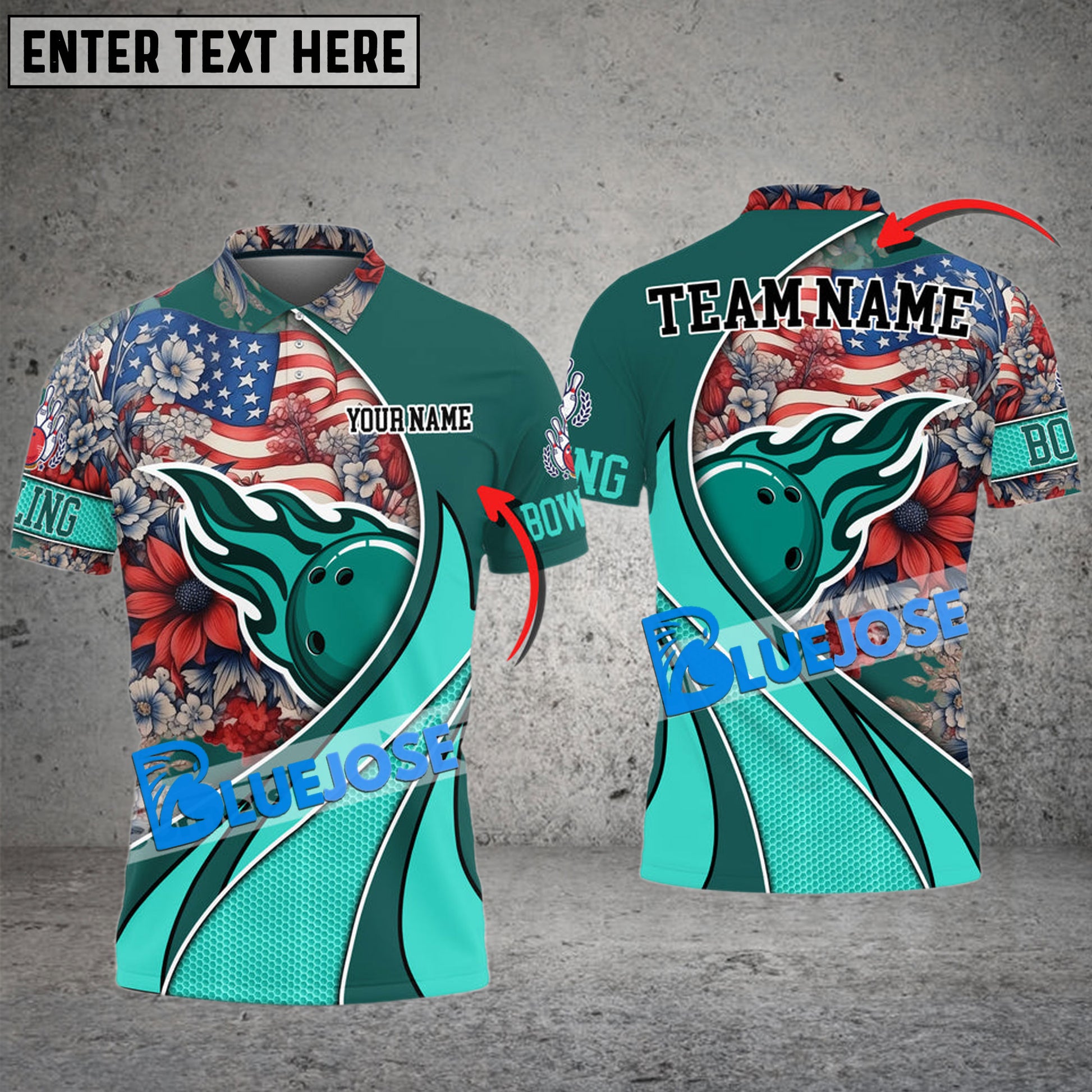 BlueJose Bowling And Pins US Flag And Flowers Customized Name 3D Shirt (4 Colors)