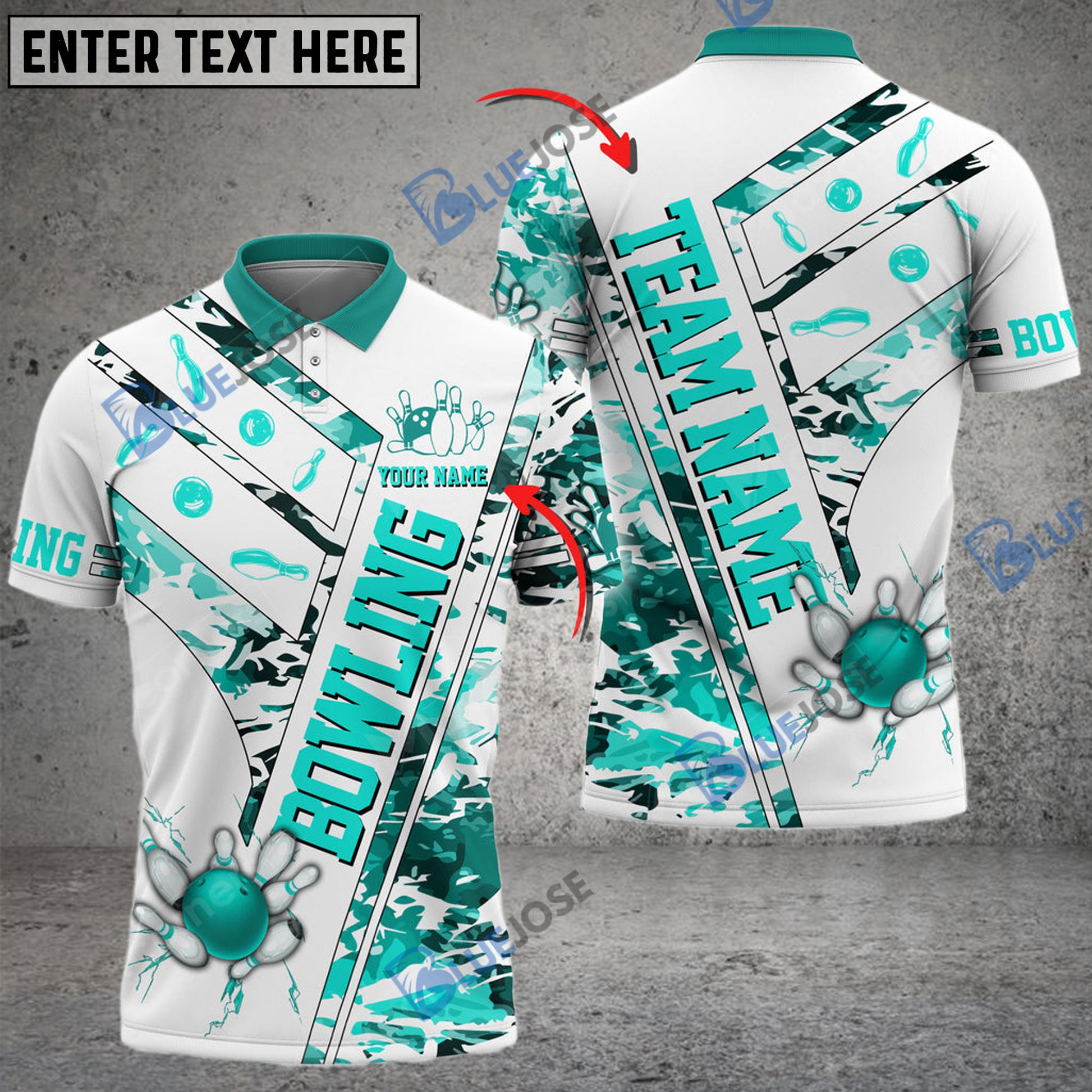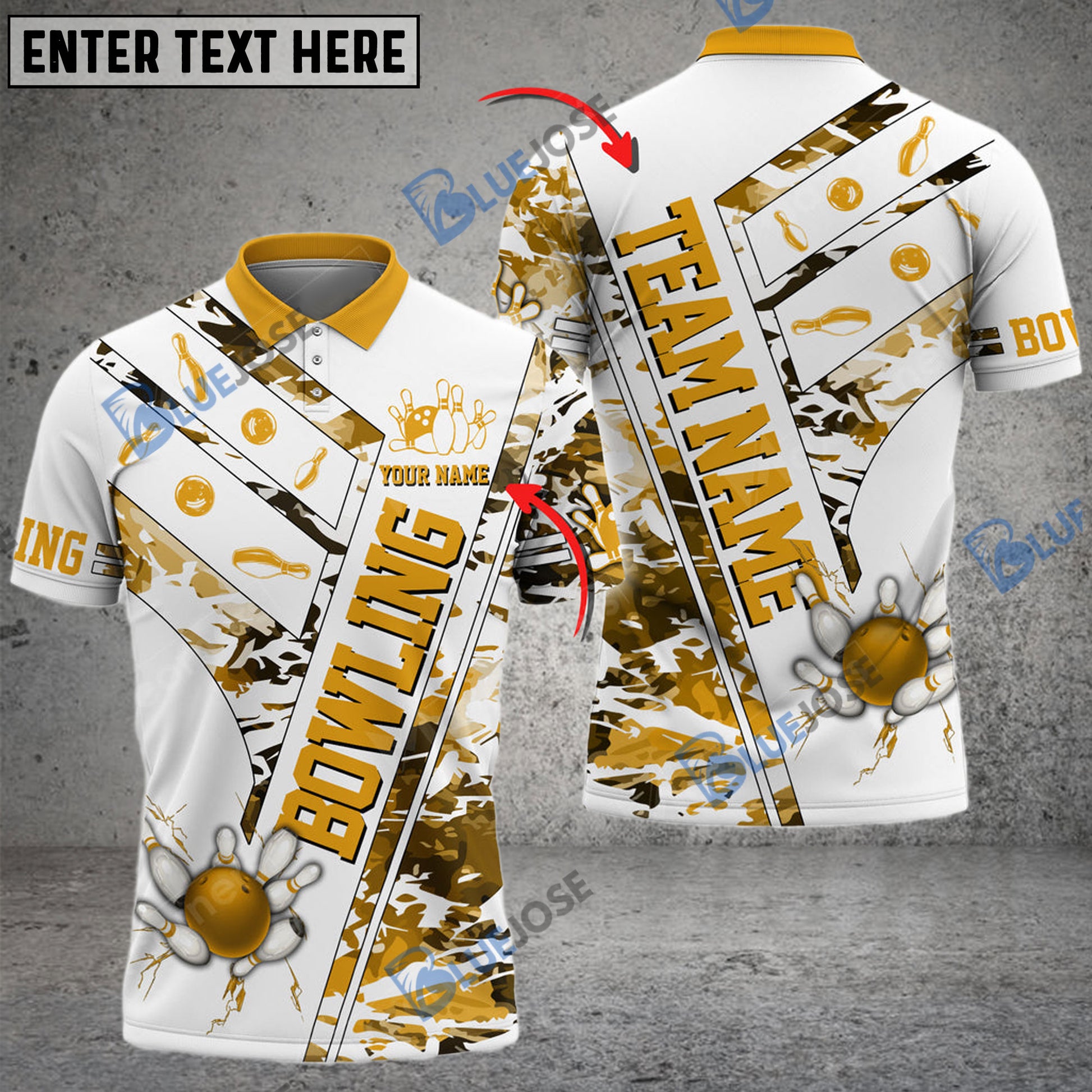 BlueJose Bowling And Pins White Grunge Customized Name 3D Shirt (4 Colors)
