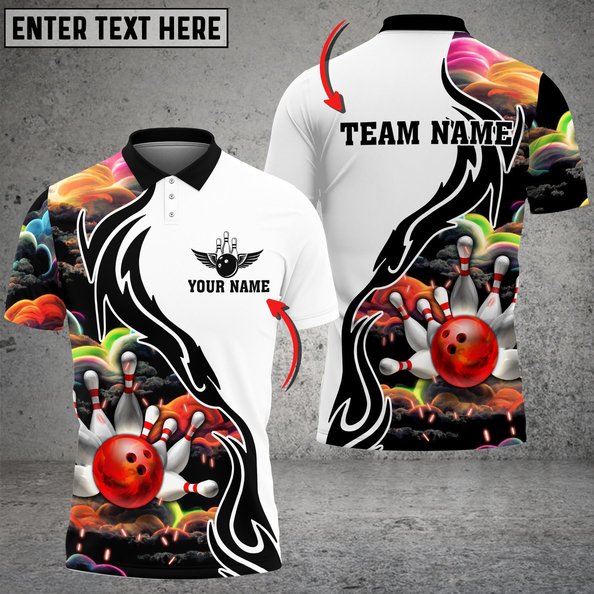BlueJose Bowling Multicolor Clound Pattern Premium Customized Name 3D Shirt